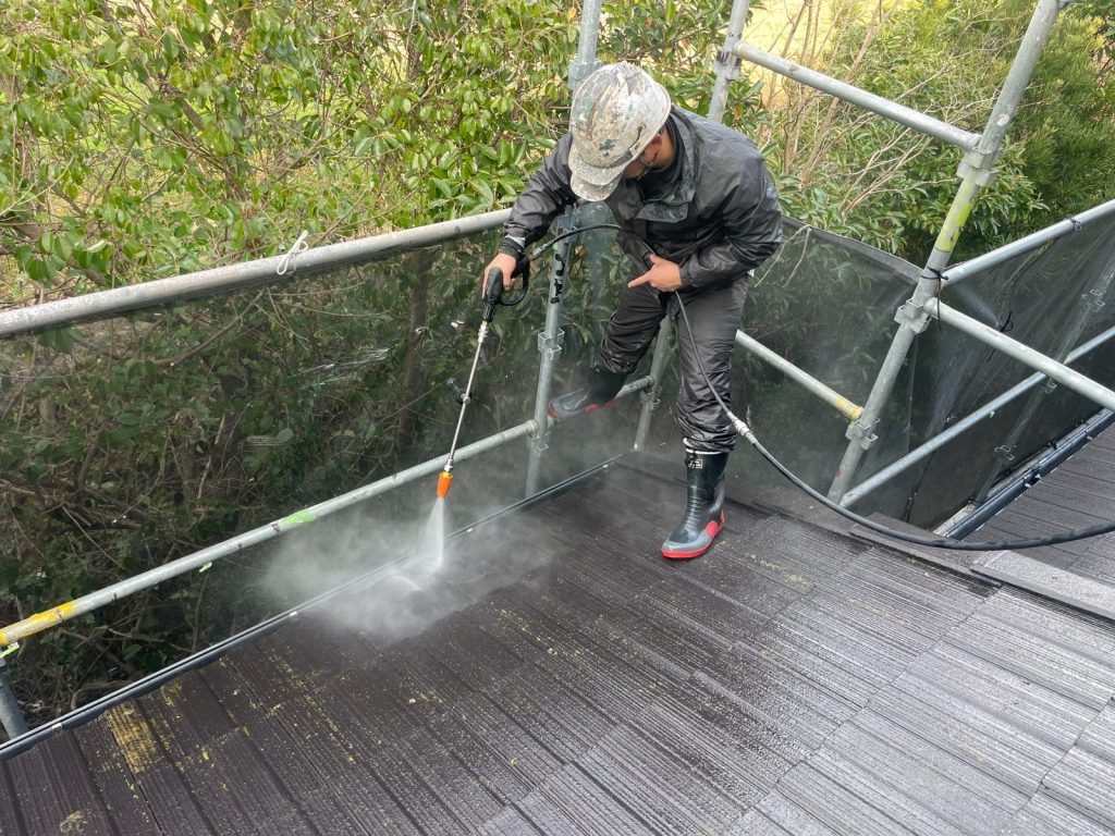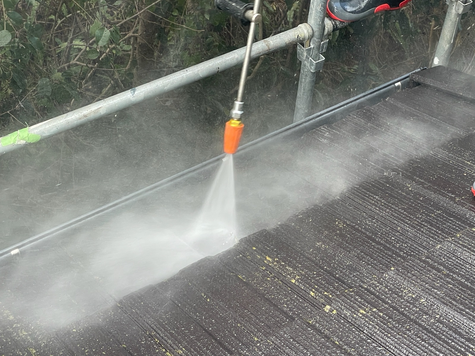 高圧洗浄でしっかりと旧塗膜や汚れを落としております!