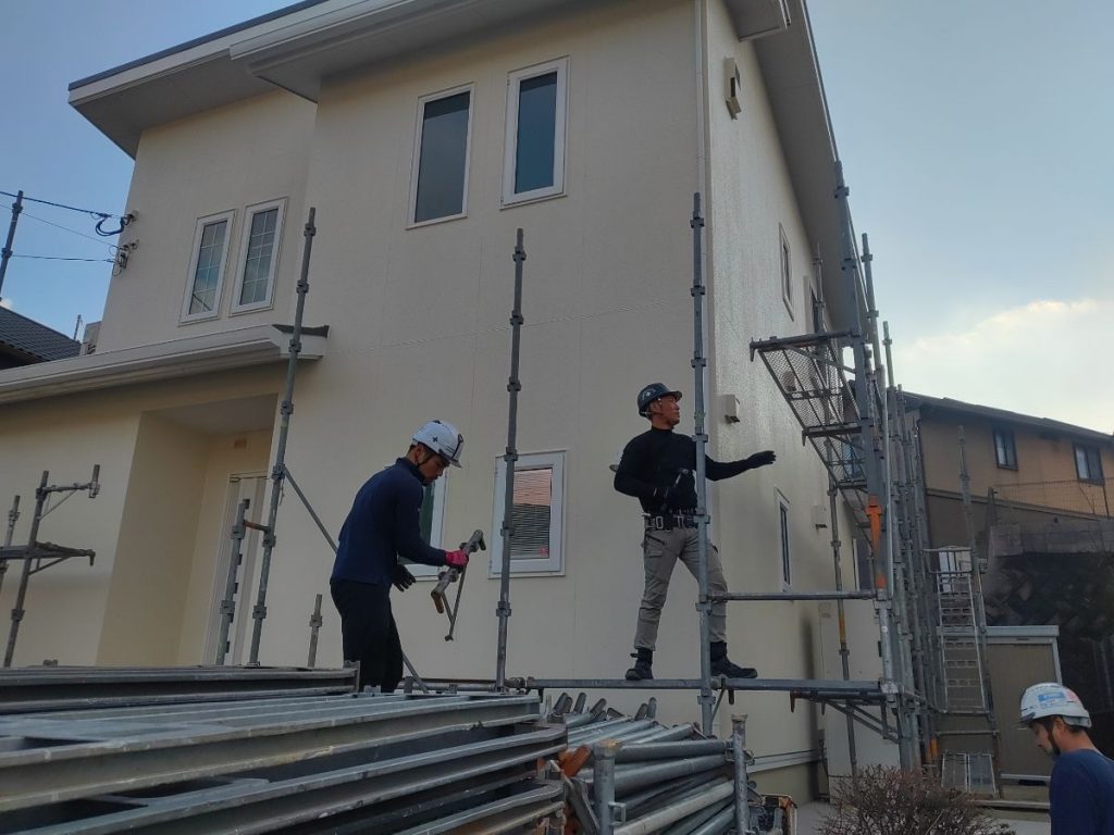 足場解体の際は、塗装完了後のお住まいを傷つけぬよう
