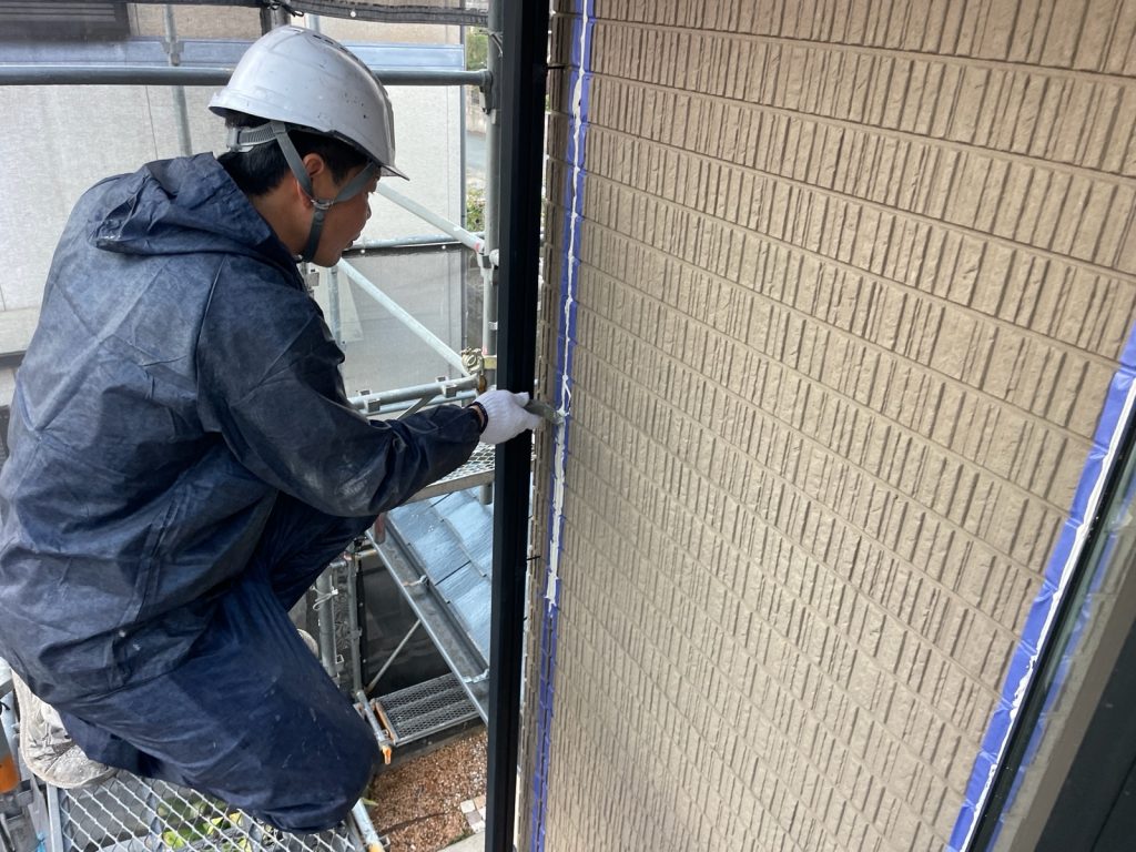 シーリングを撤去して出来た溝に、新しくシーリング充填し、