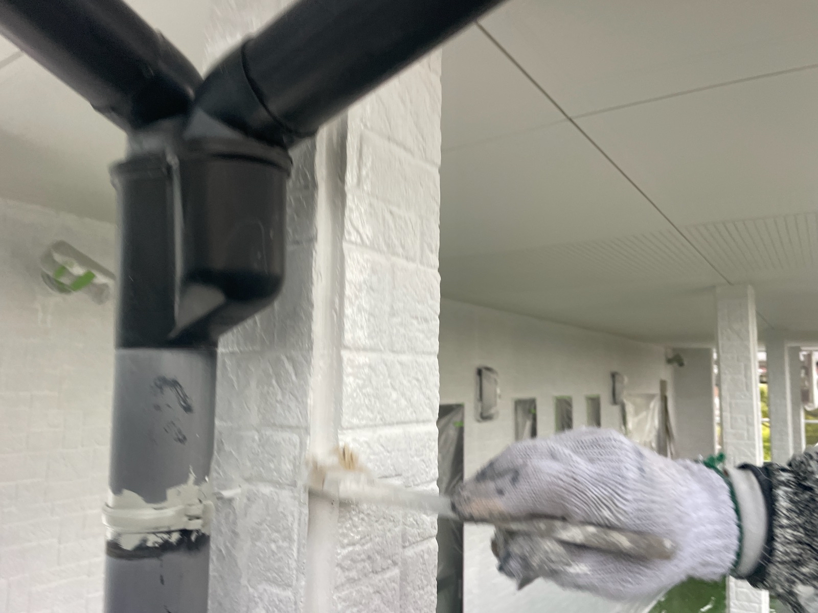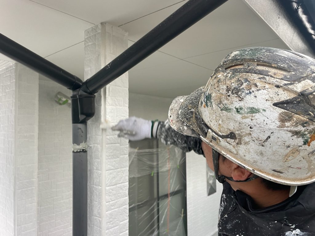 本日は、付帯部塗装、外壁下塗り2回目、下屋根の下塗り2回目、中間検査をさせて頂いております。