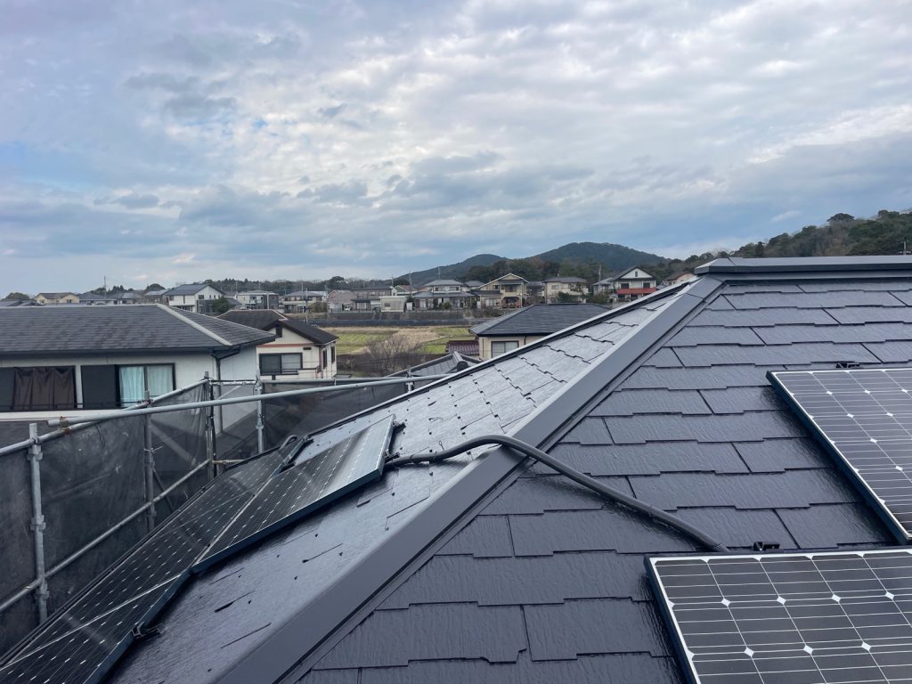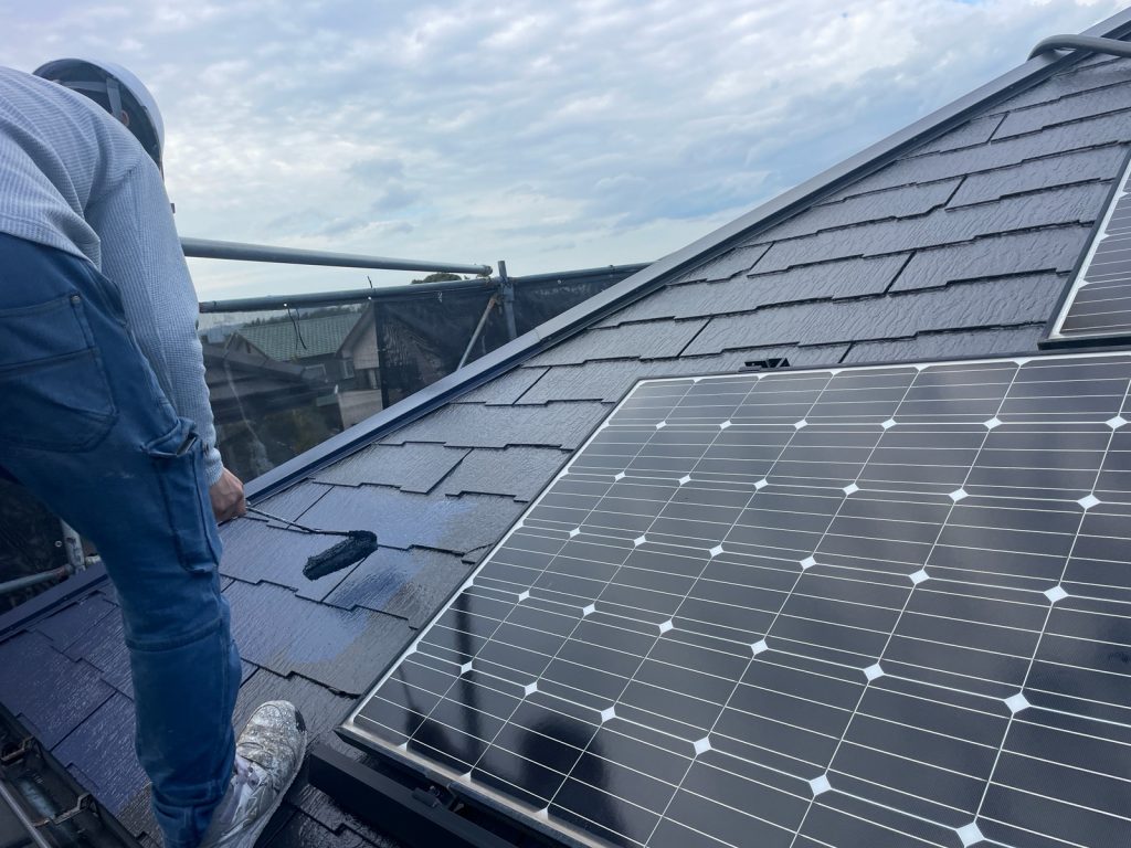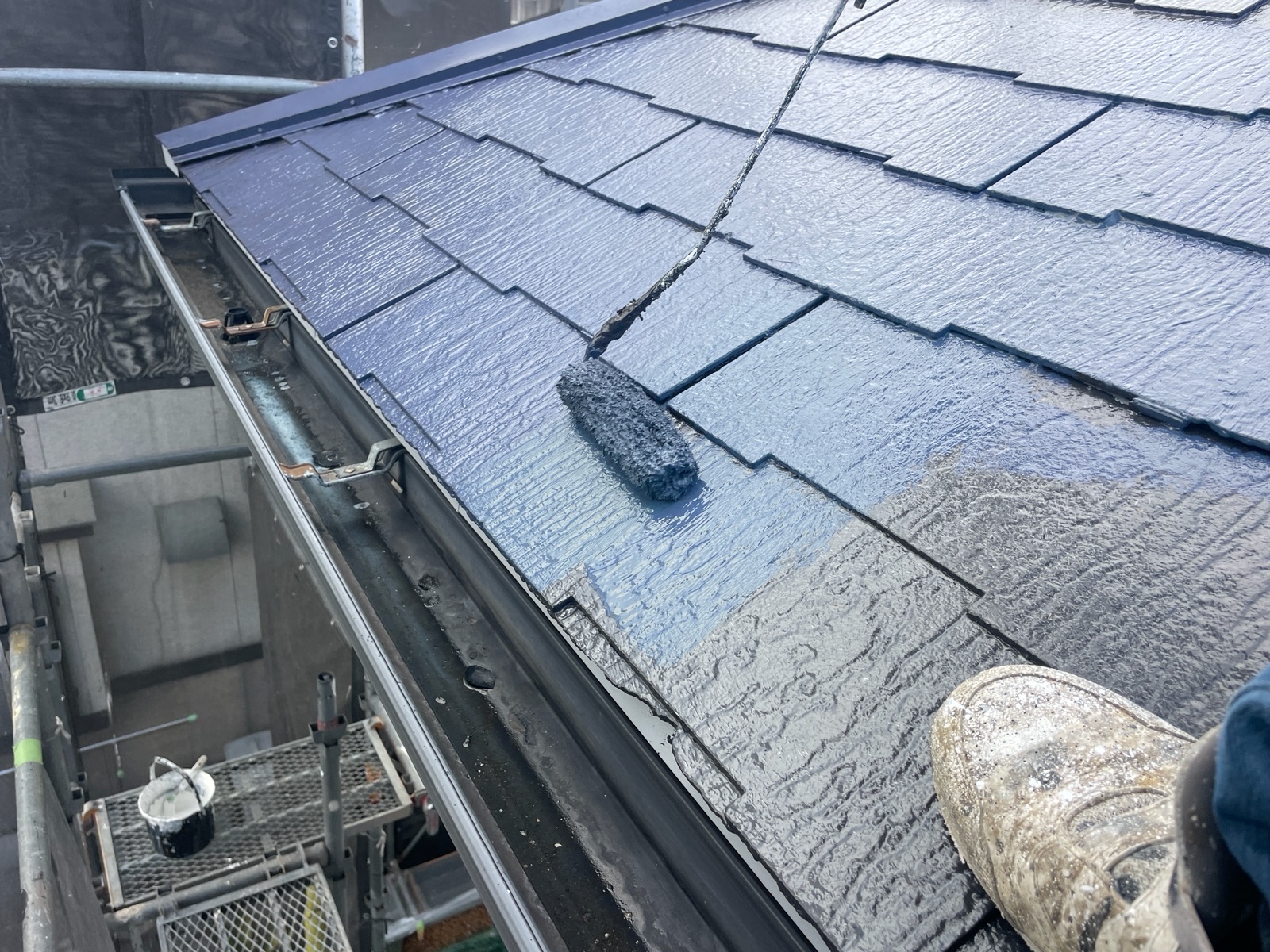 屋根には昨日から上塗りを行っております!