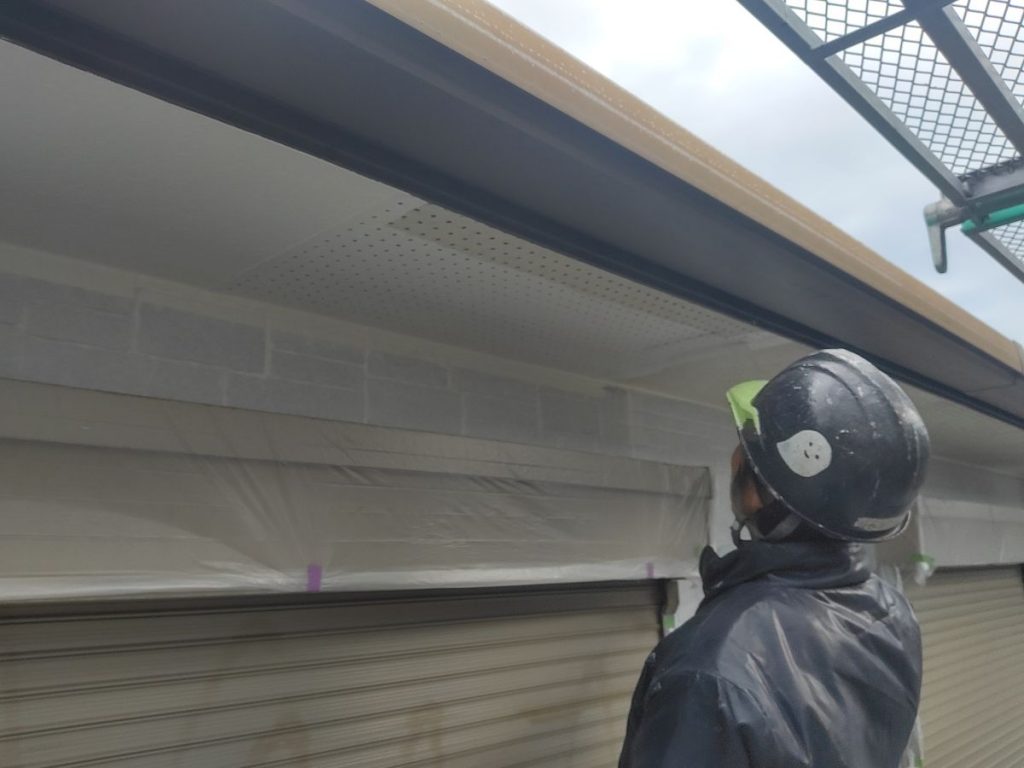 本日は、軒天塗装、中間検査をさせて頂いております。