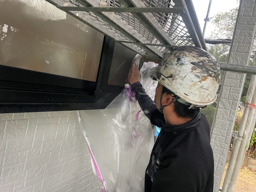 本日は、窓枠等の養生バラシをさせて頂いております。