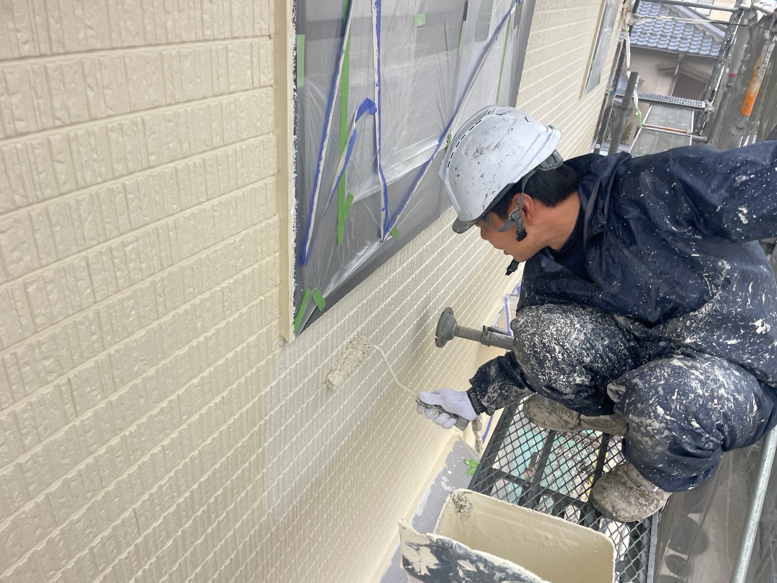 次回施工・・・外壁上塗り2回目、養生バラシ、付帯部塗装