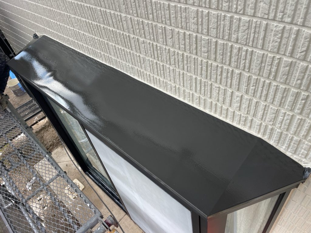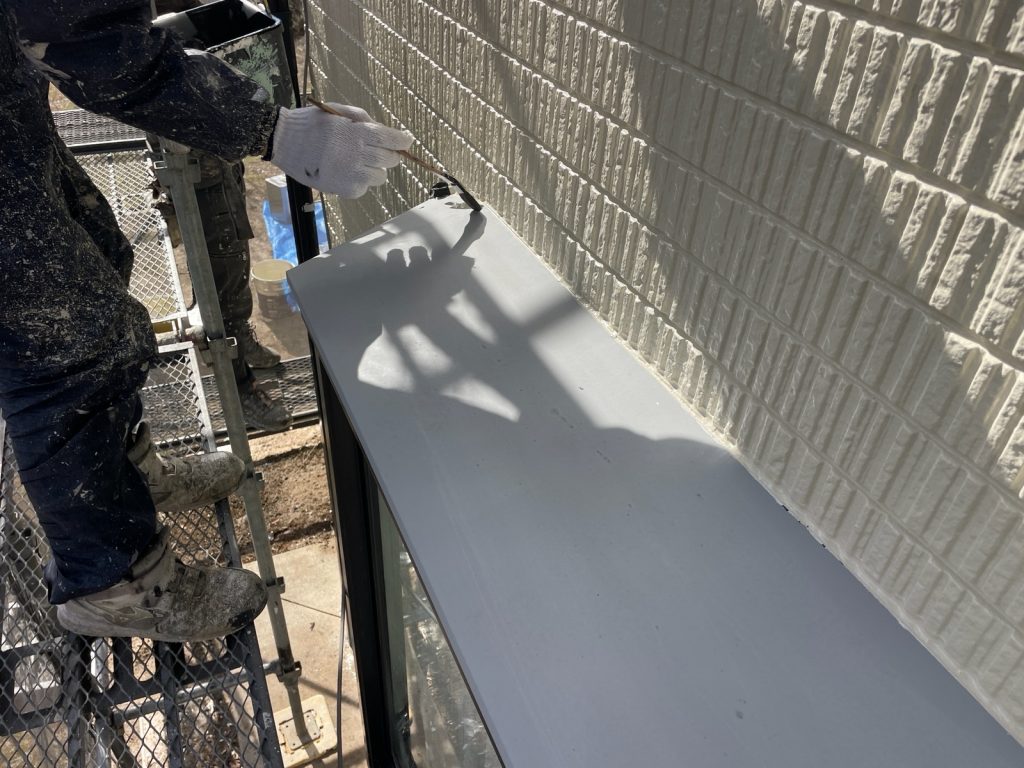 本日は、外壁上塗り2回目と付帯部の塗装をさせて頂いております。