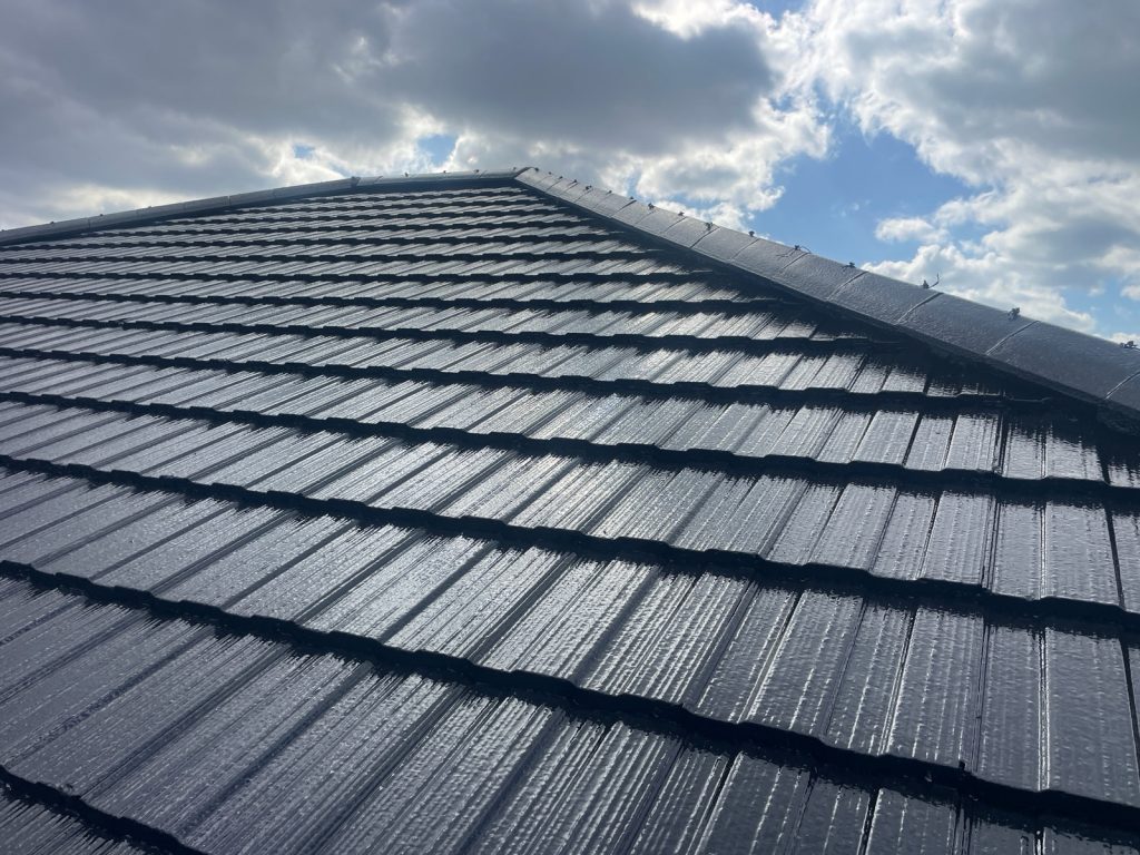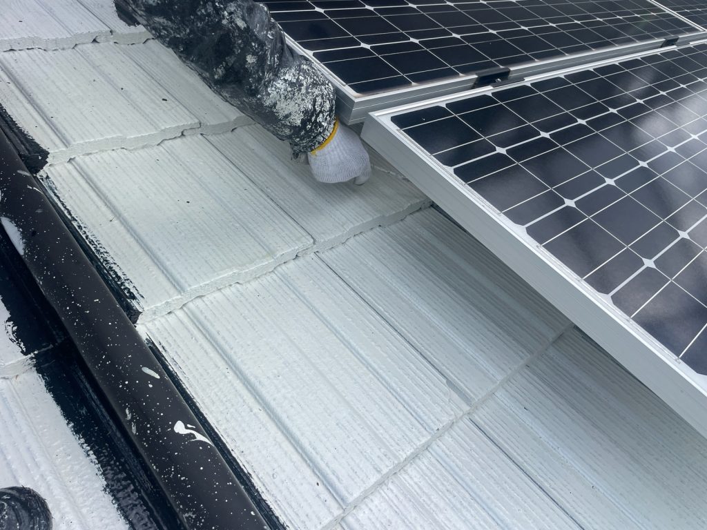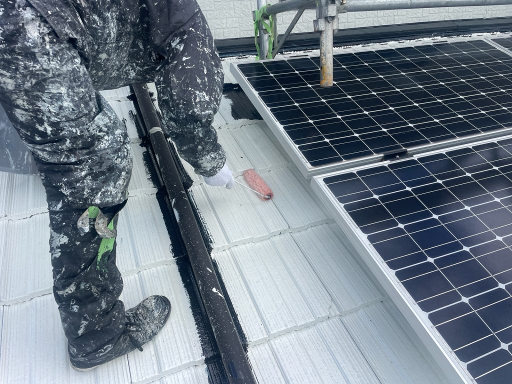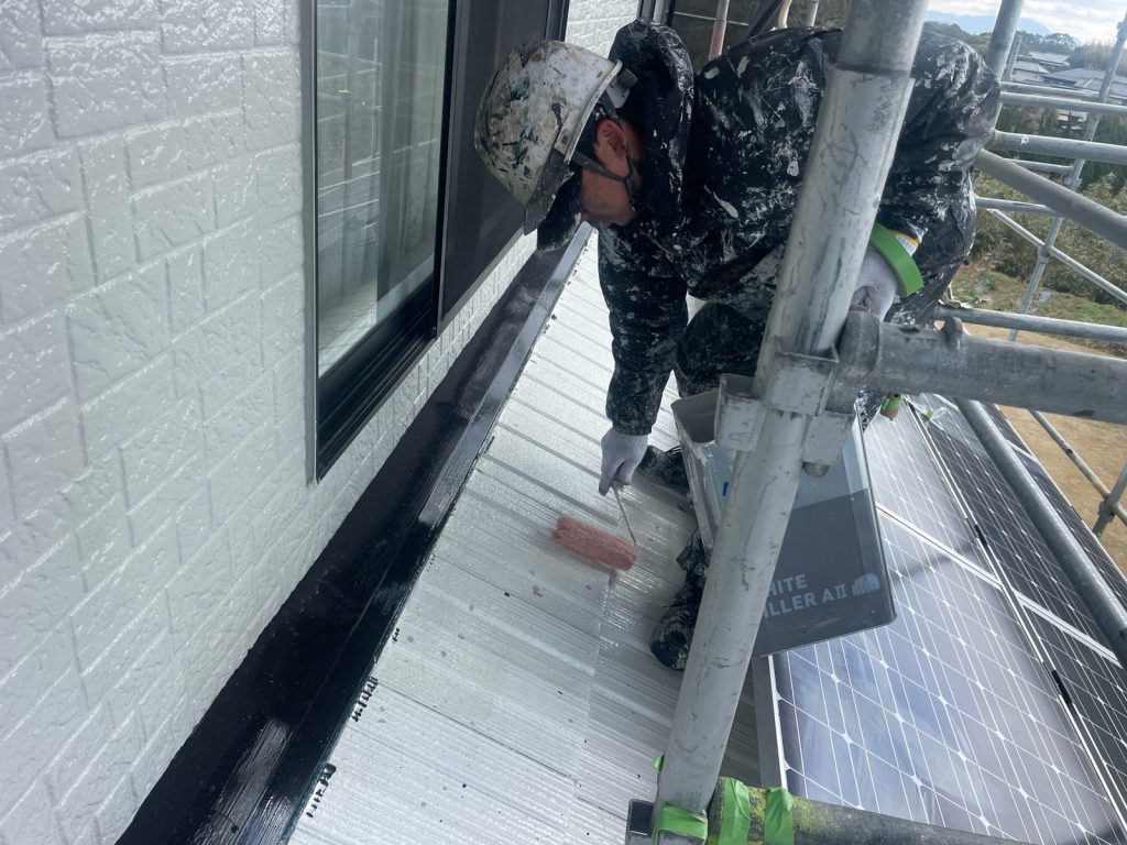 次回施工・・・下屋根上塗り1回目、付帯部塗装