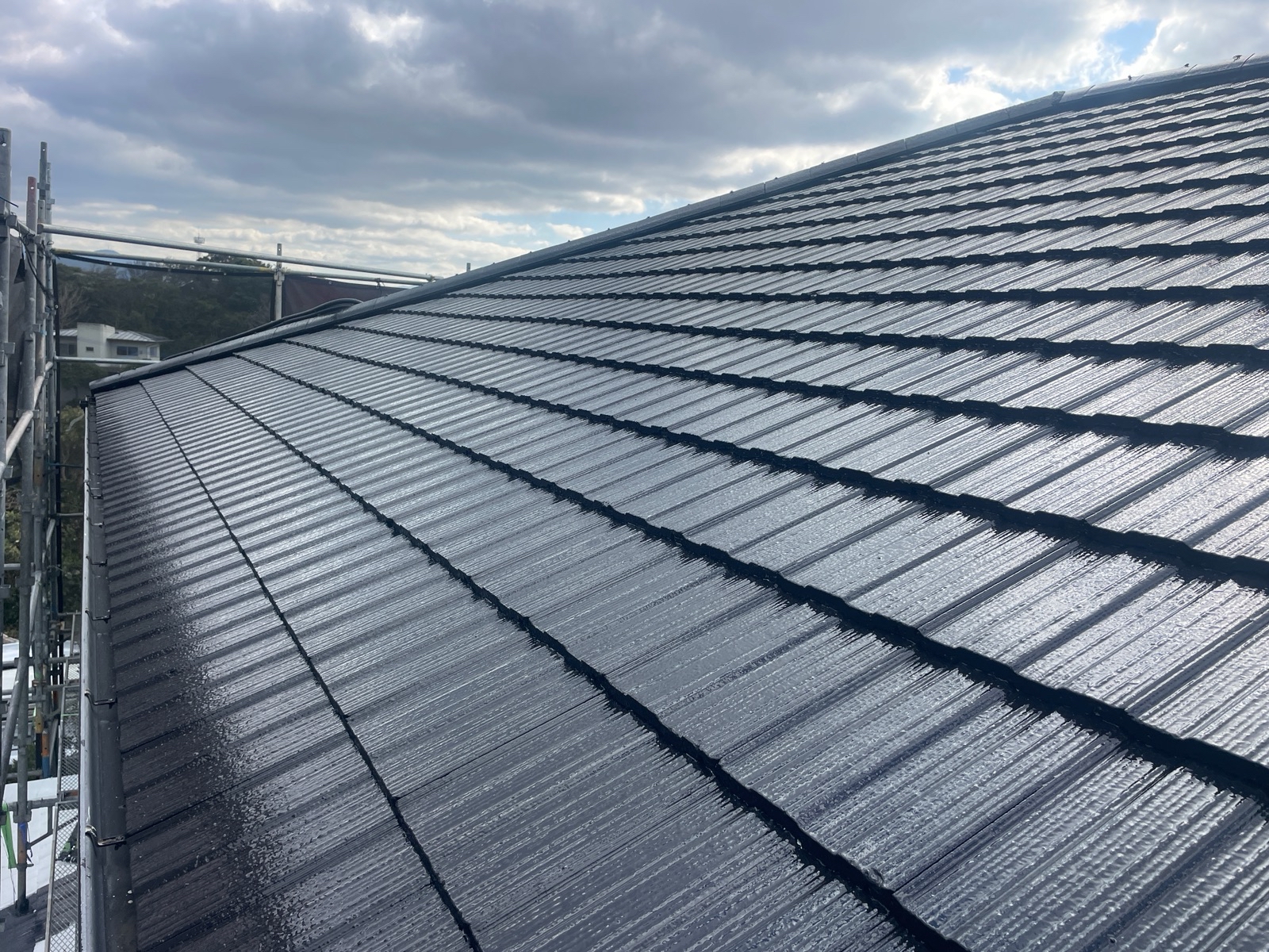 ●●屋根塗装 大屋根上塗り2回目・下屋根下塗り3回目