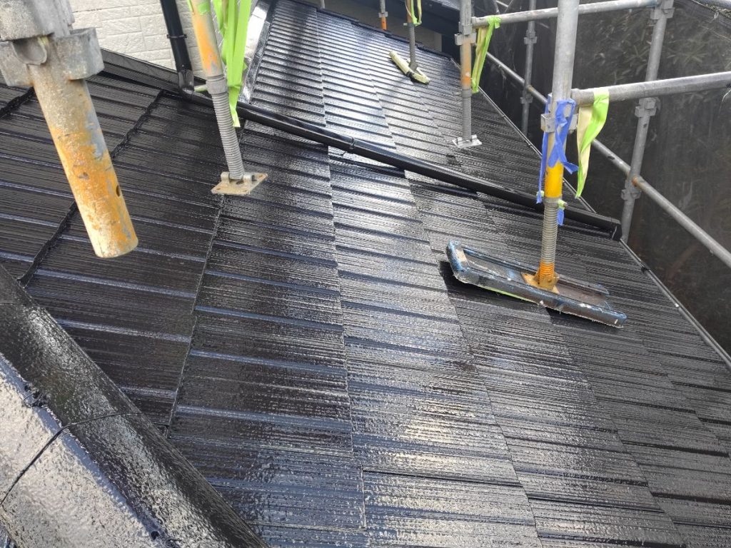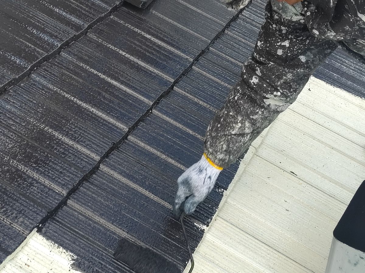 次回施工・・・下屋根上塗り2回目、付帯部塗装
