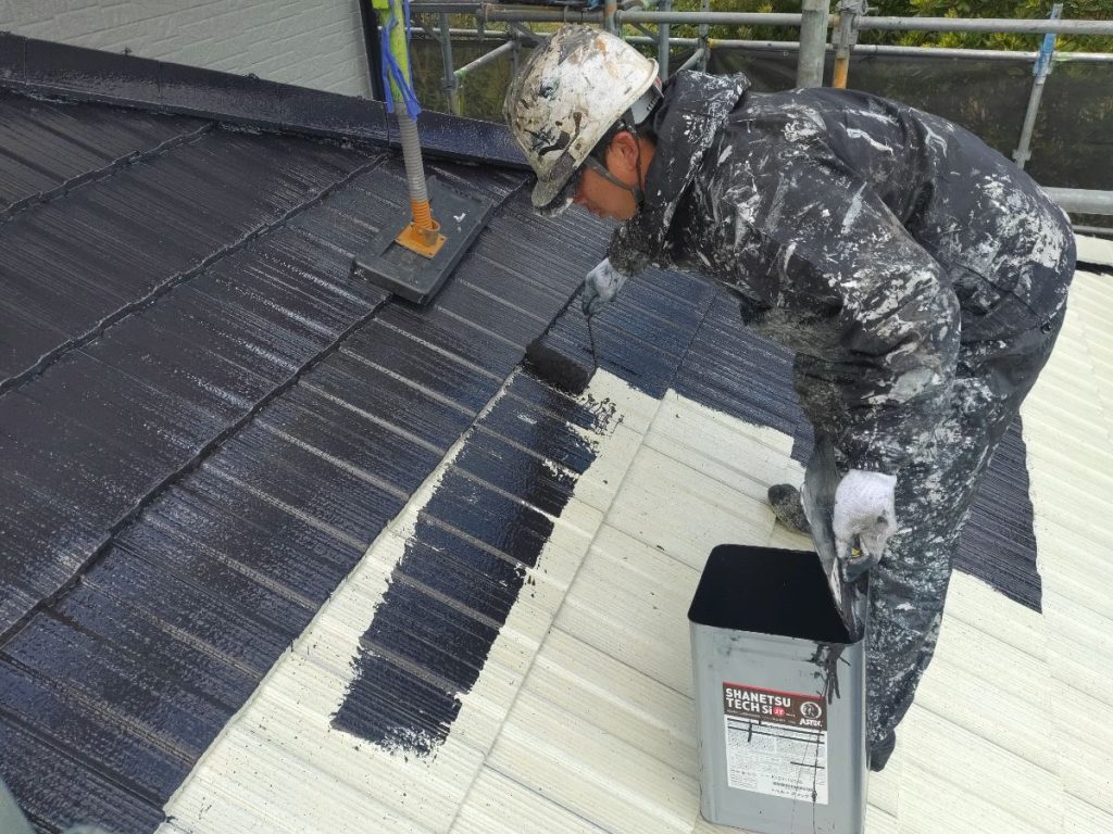 本日は、下屋根上塗り1回目、付帯部塗装をさせて頂いております。