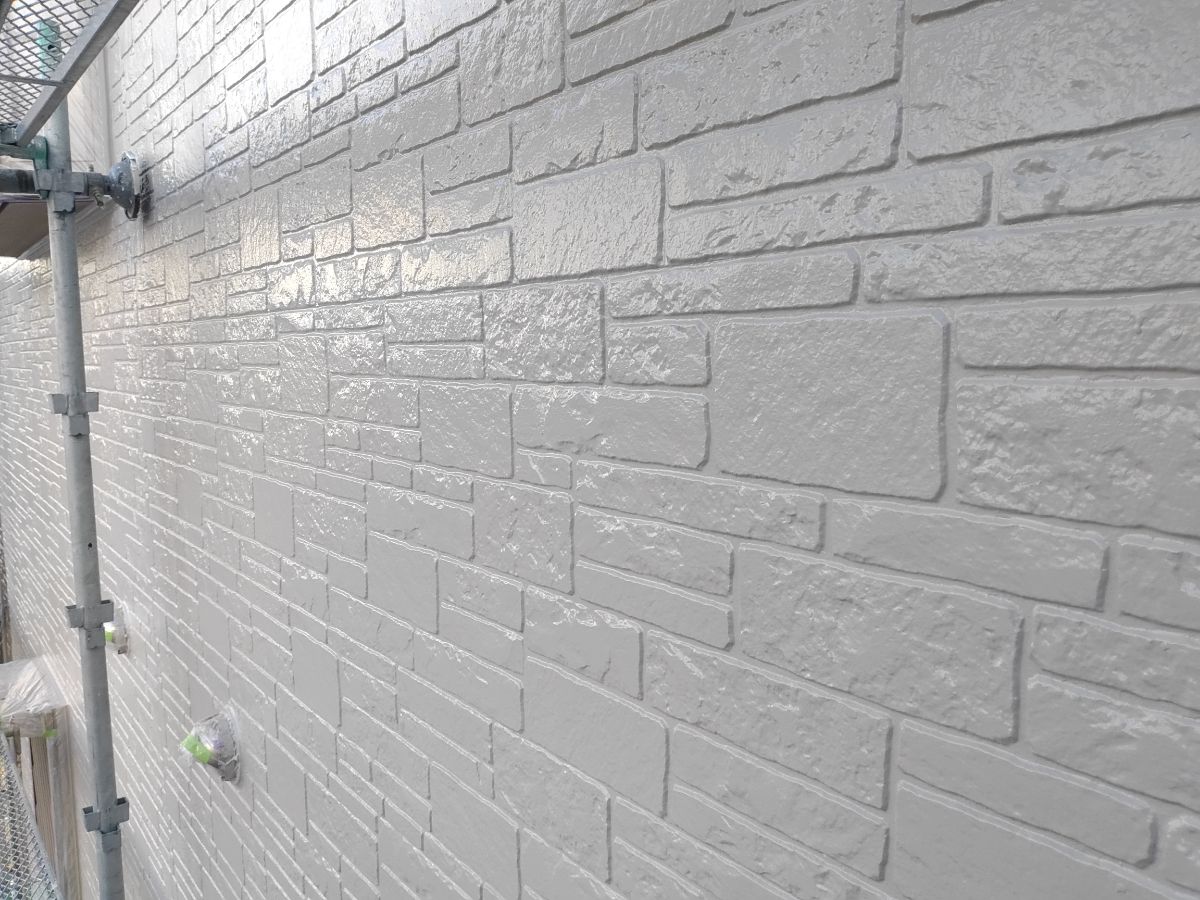 外壁の上塗り2回目(アクセント部以外)を行いました!