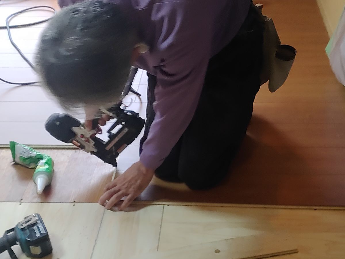 本日は廊下のフローリング張り、框取付けなどを行っております!