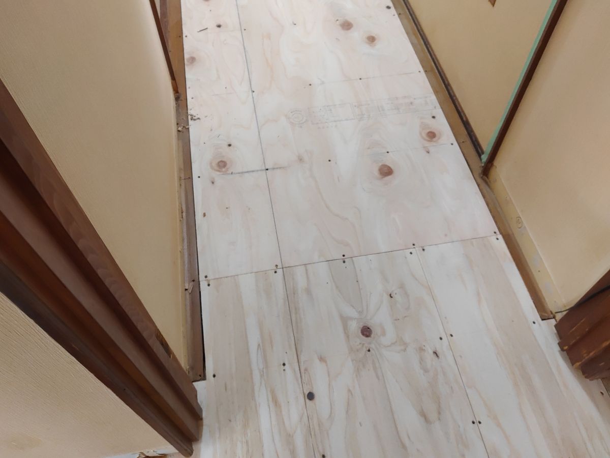 廊下は下地がかなり傷んでおりましたので全面下地補強を行っております。