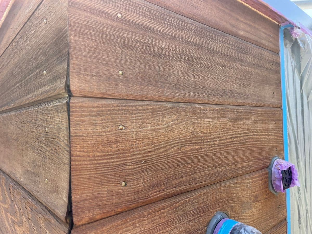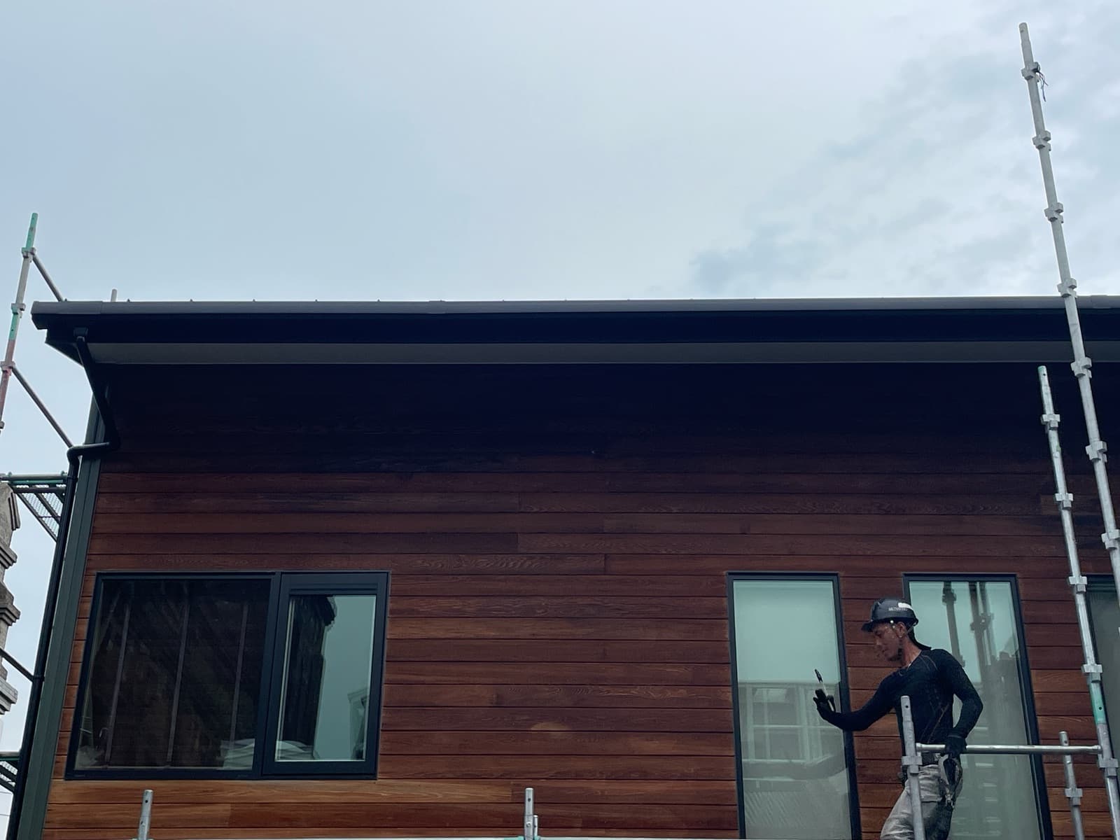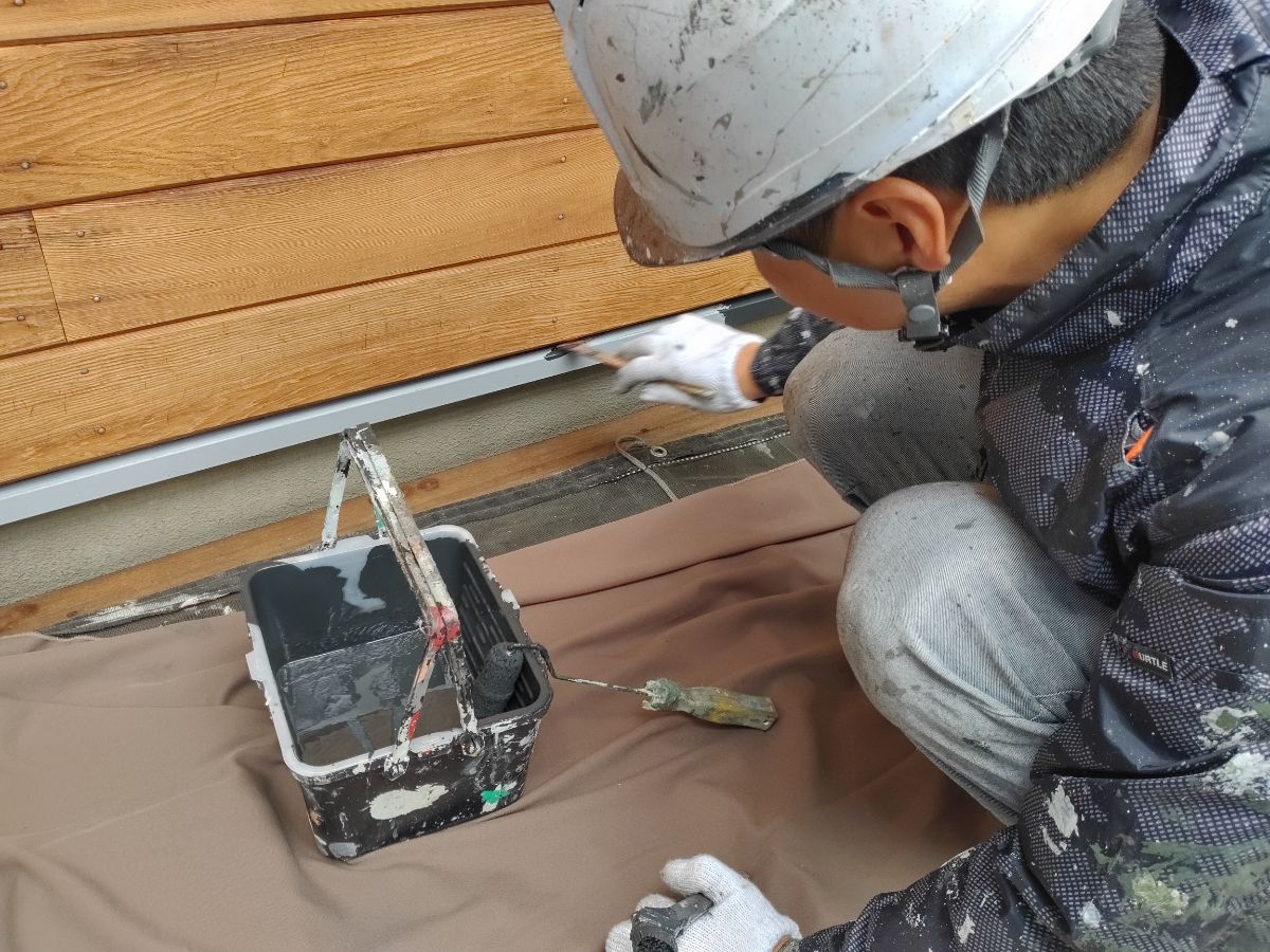 木部には施主様がご用意してくださった、木部の塗料をつかってしっかりと施工を行っております!