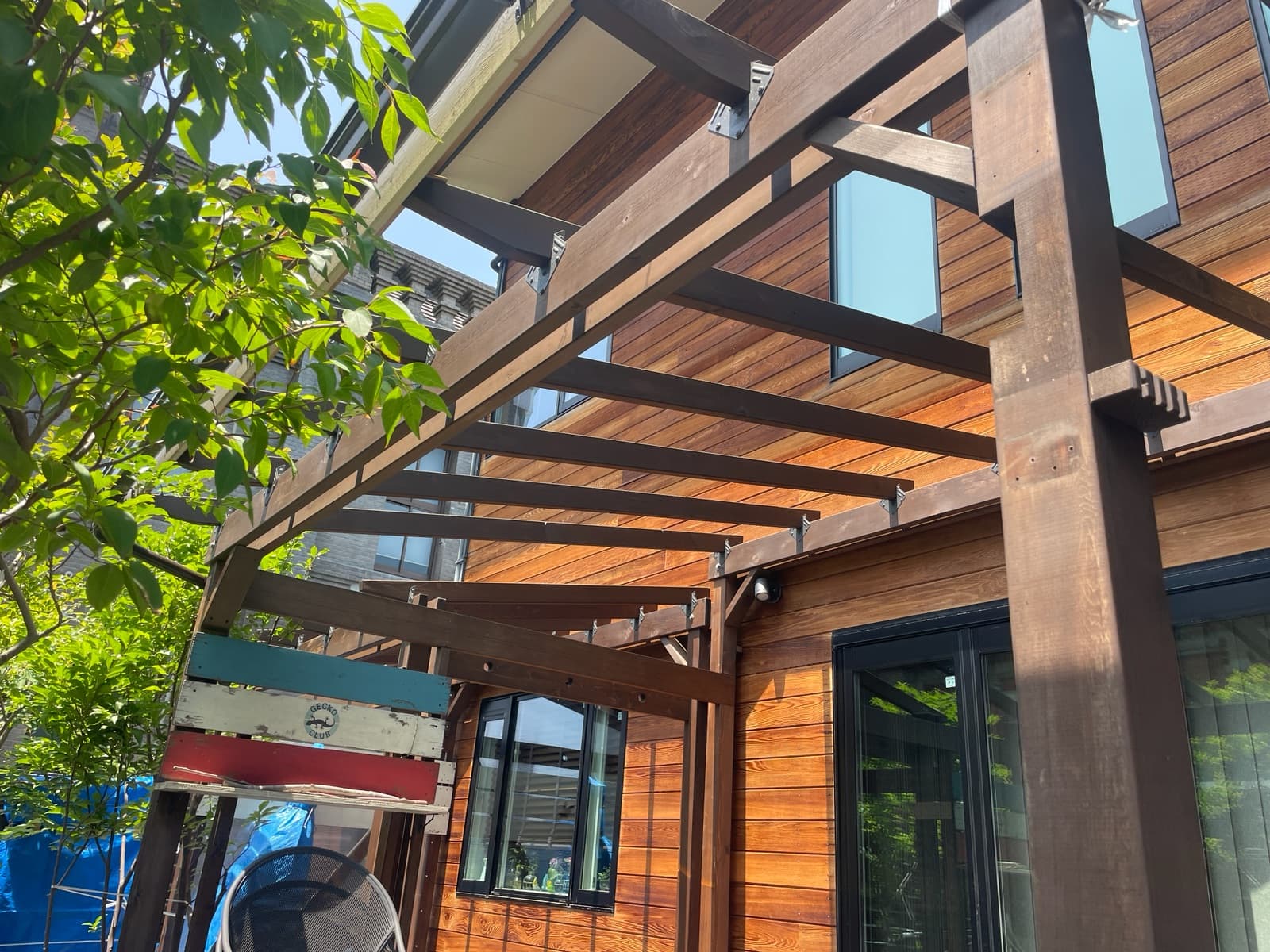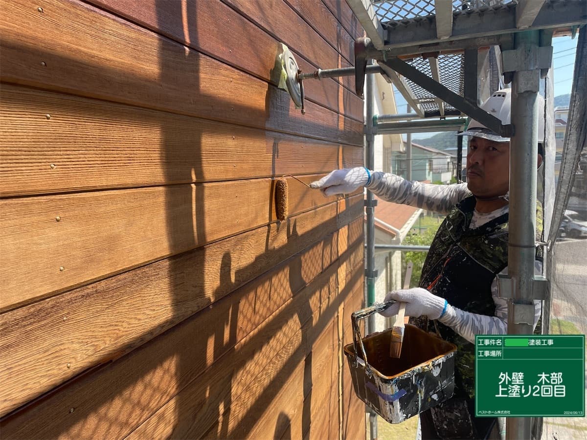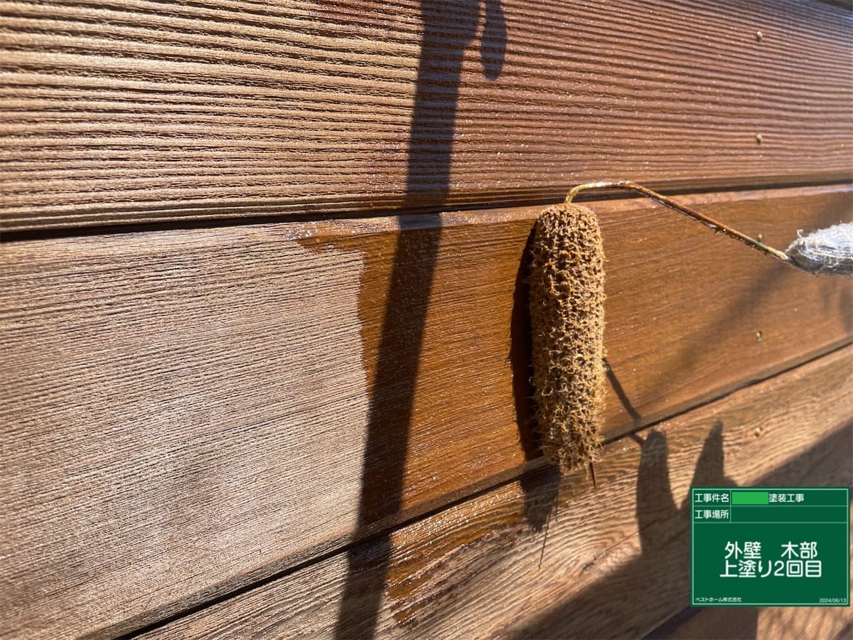 木部には施主様がご用意してくださった、木部の塗料をつかってしっかりと施工を行っております!