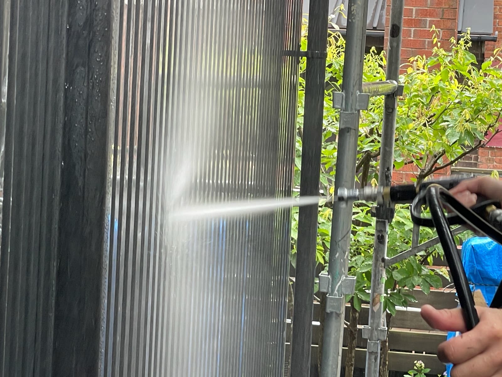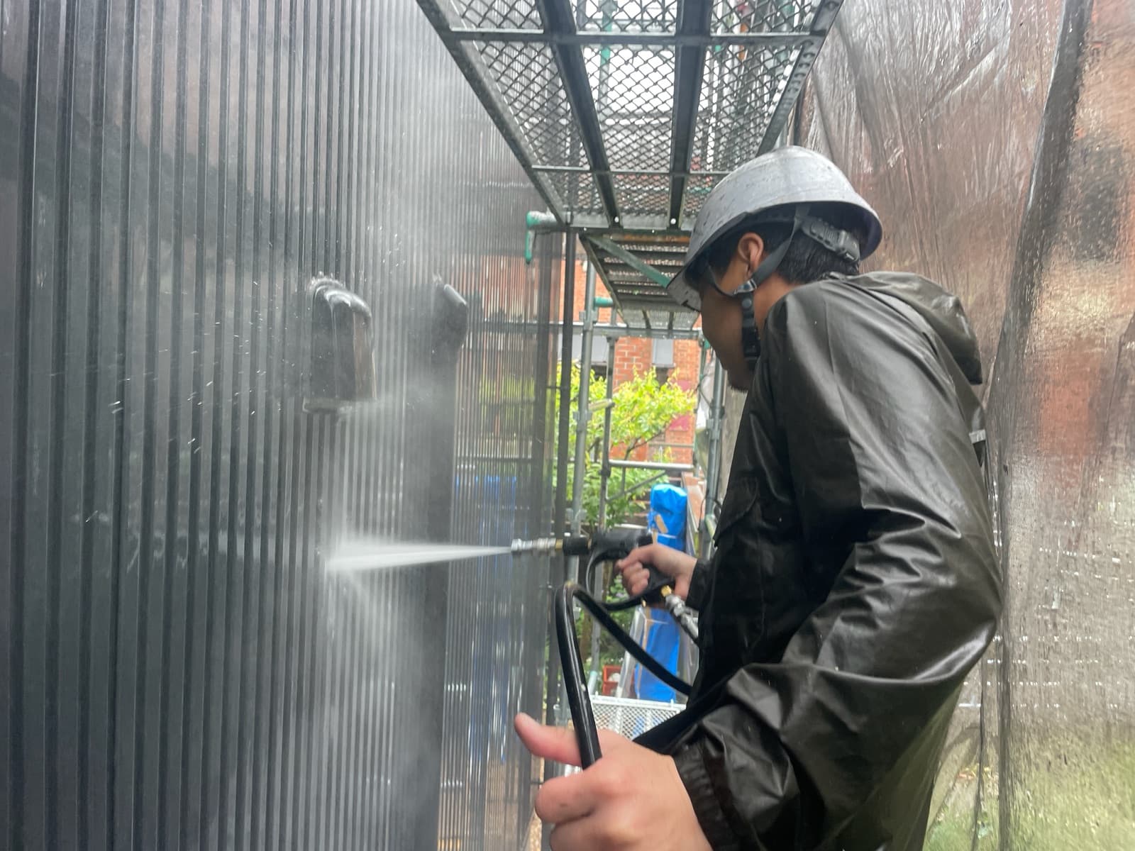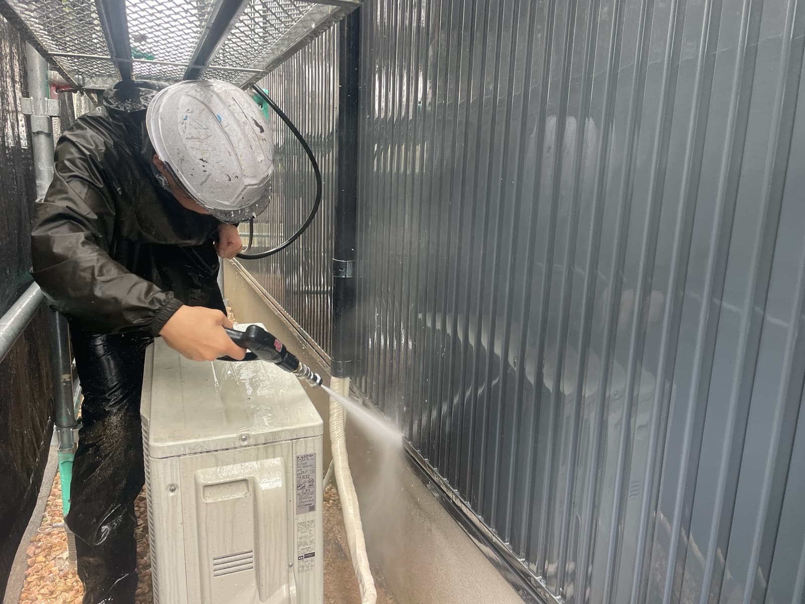 高圧洗浄でしっかりと旧塗膜や汚れを落としております!