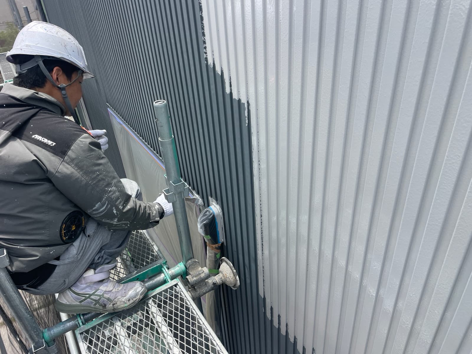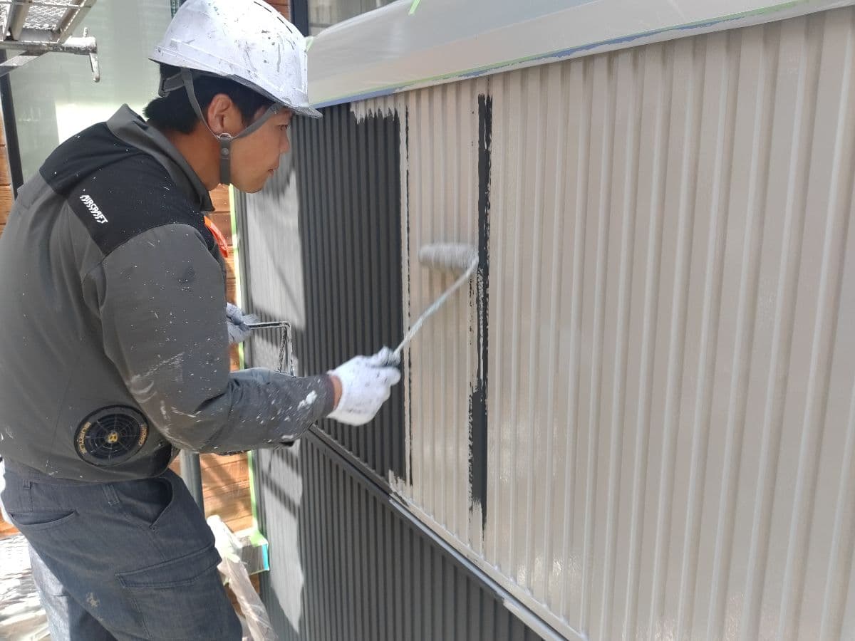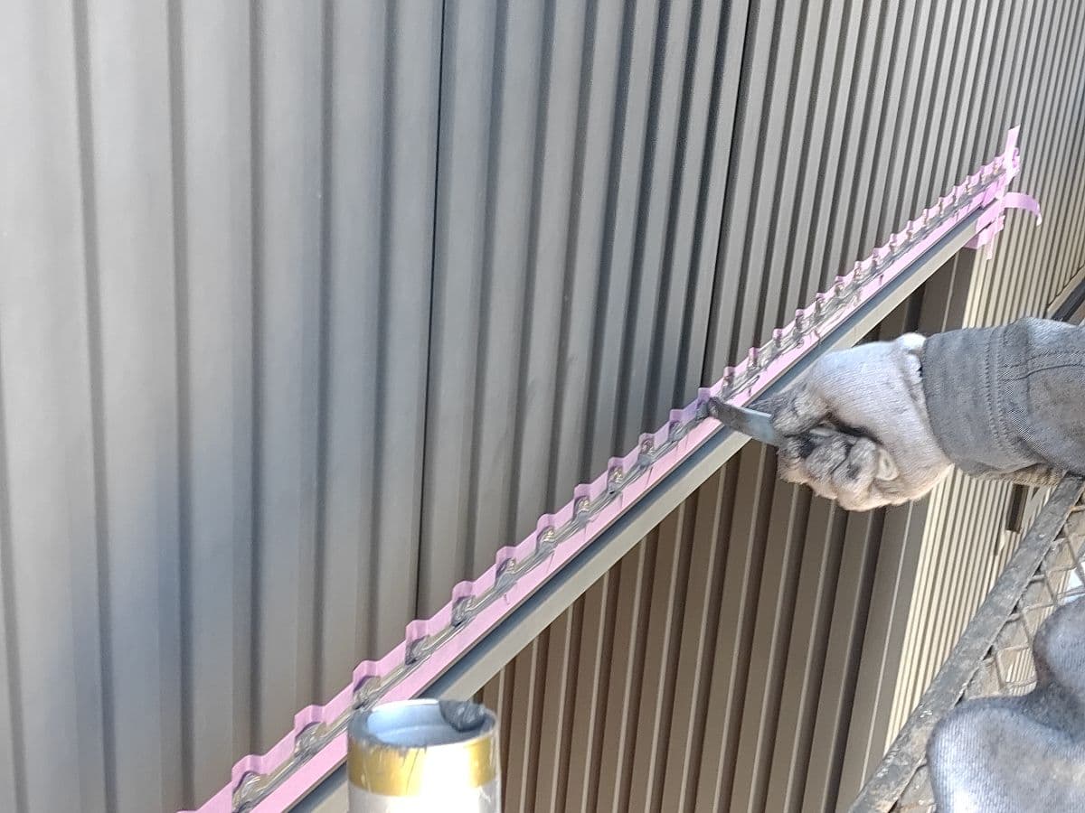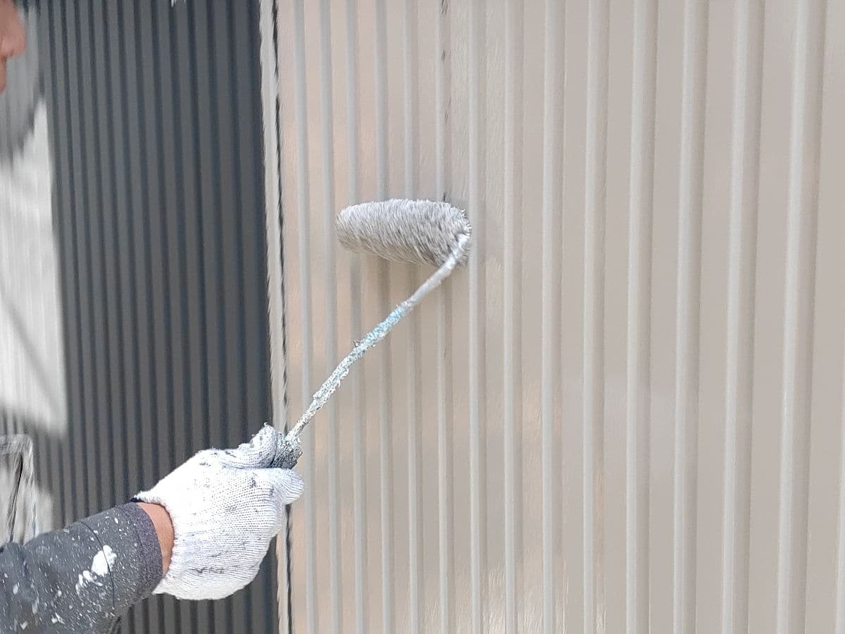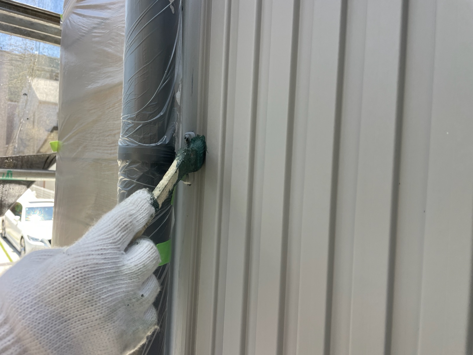 今回の外壁は金属ですので、下塗り材は錆止めを使用しております!