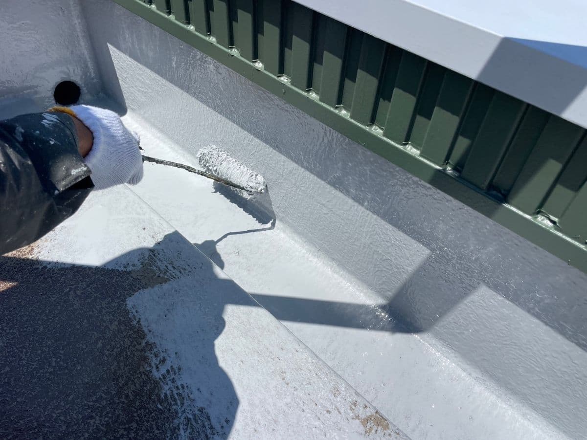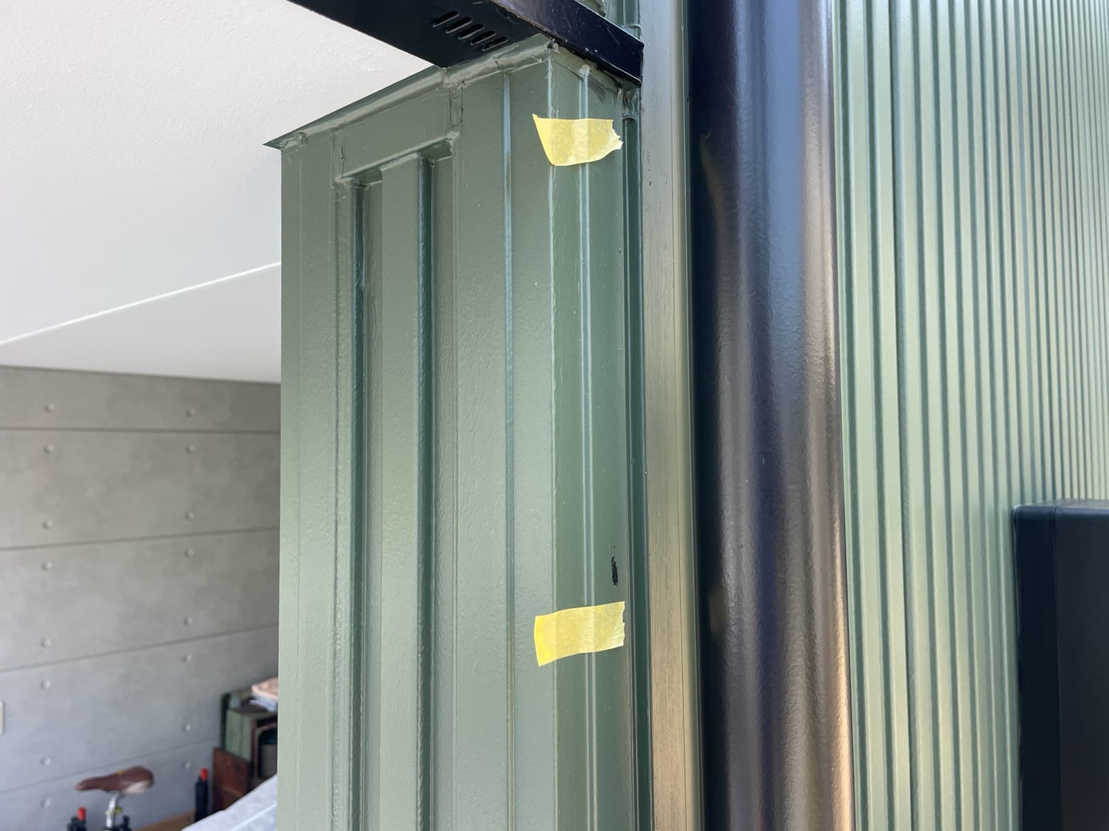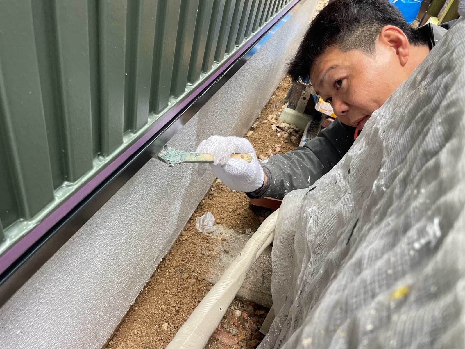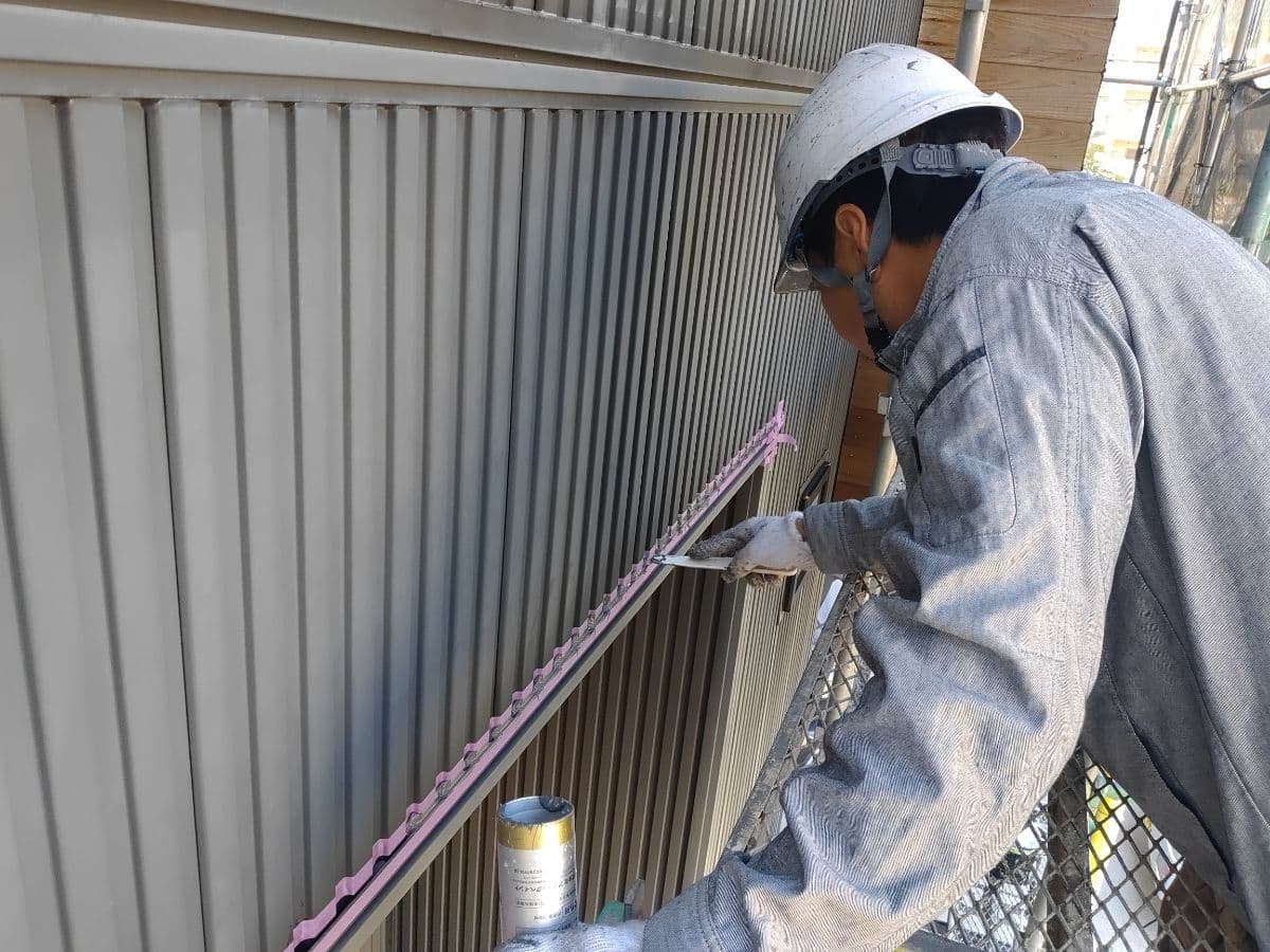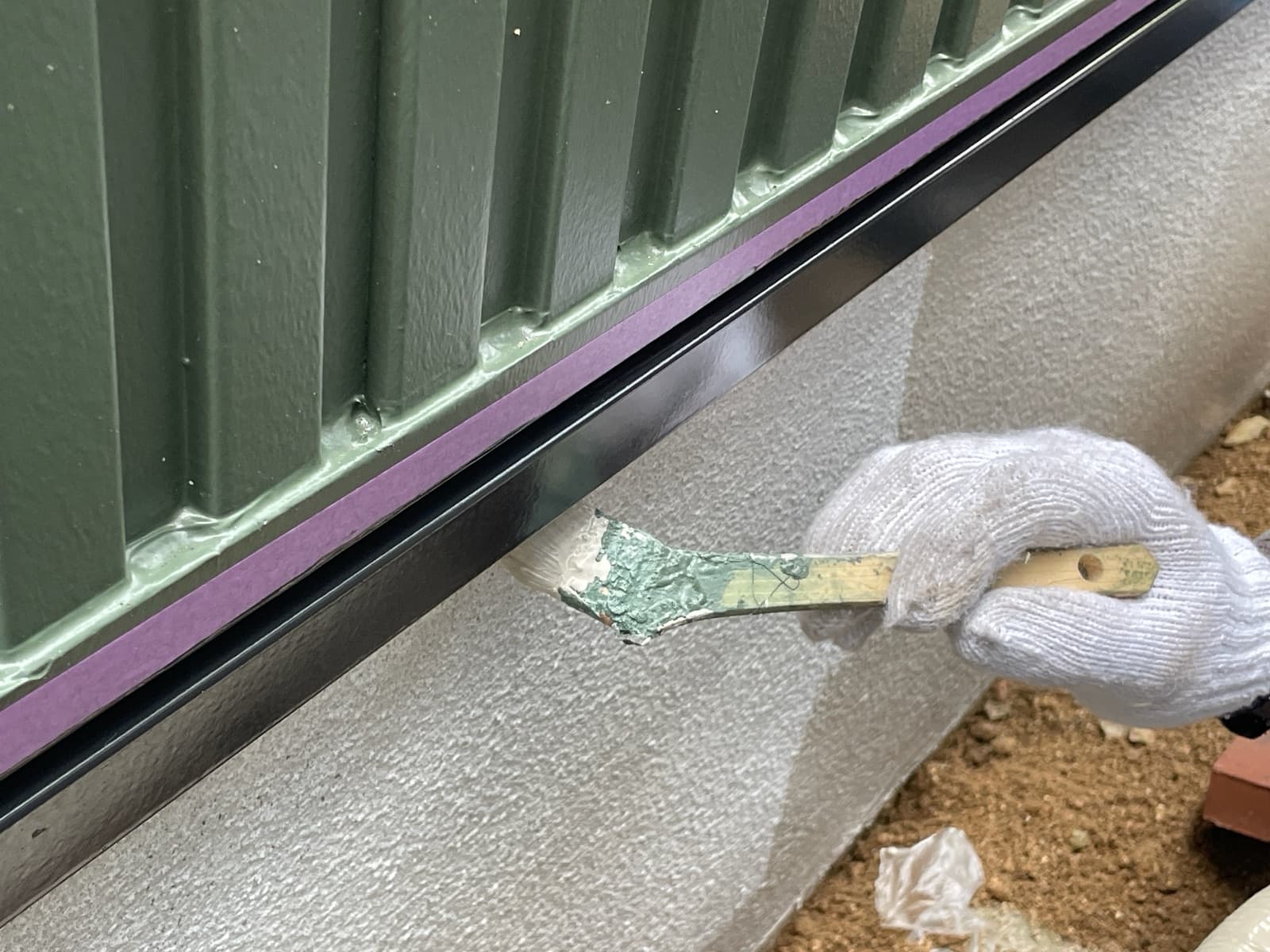 今回の外壁は金属ですので、下塗り材は錆止めを使用しております!