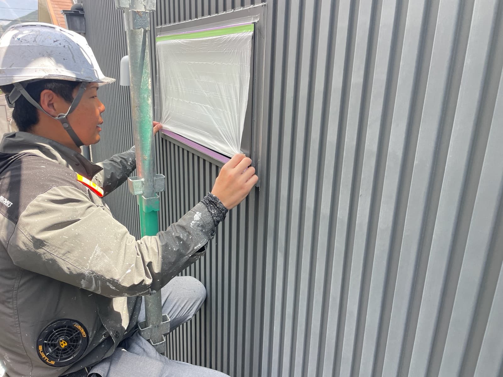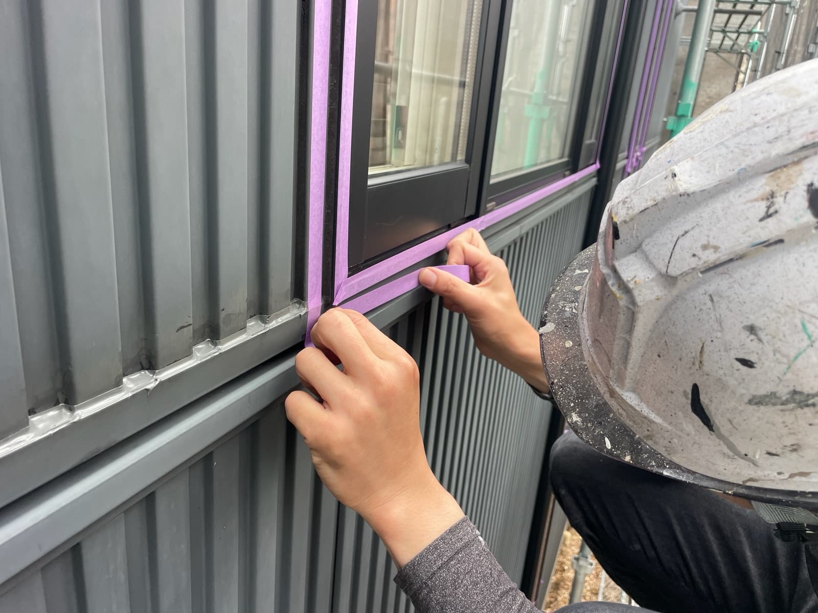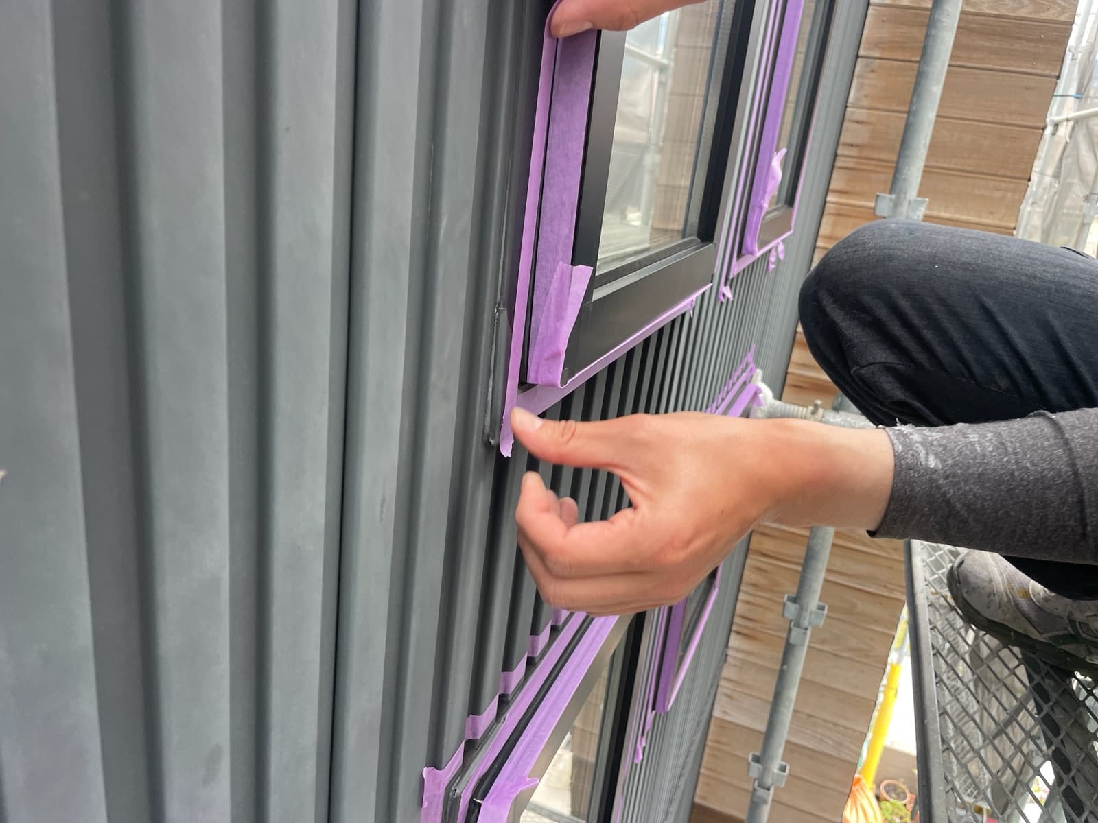 ラインを綺麗に出すために、丁寧に真っすぐ養生しております!