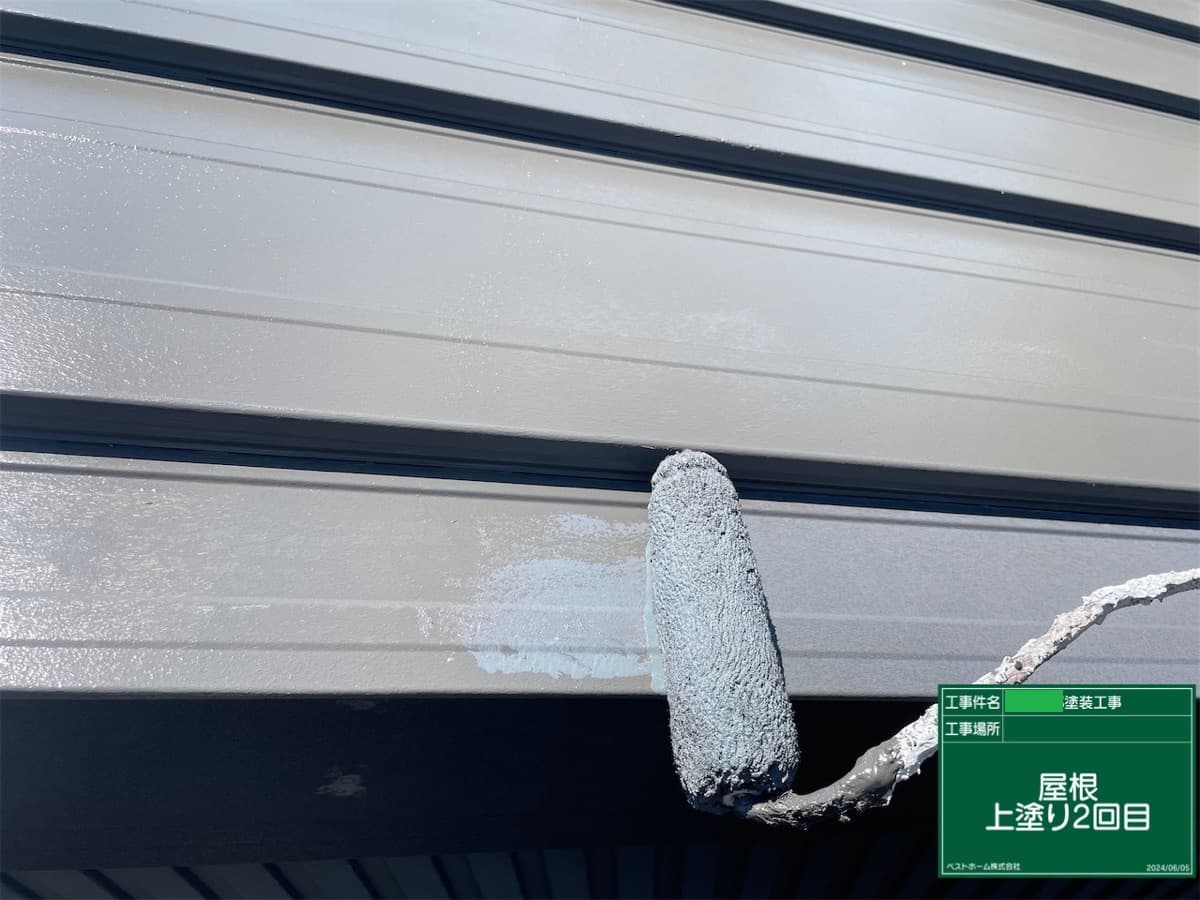 次回施工・・・屋根上塗り2回目、養生、軒天塗装