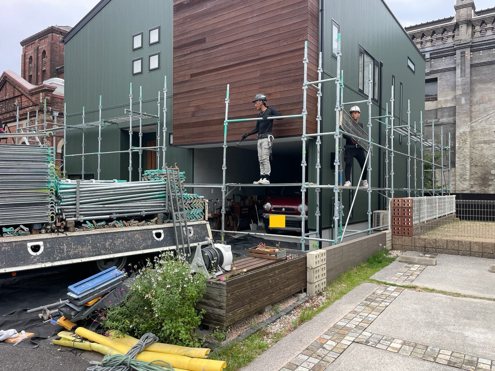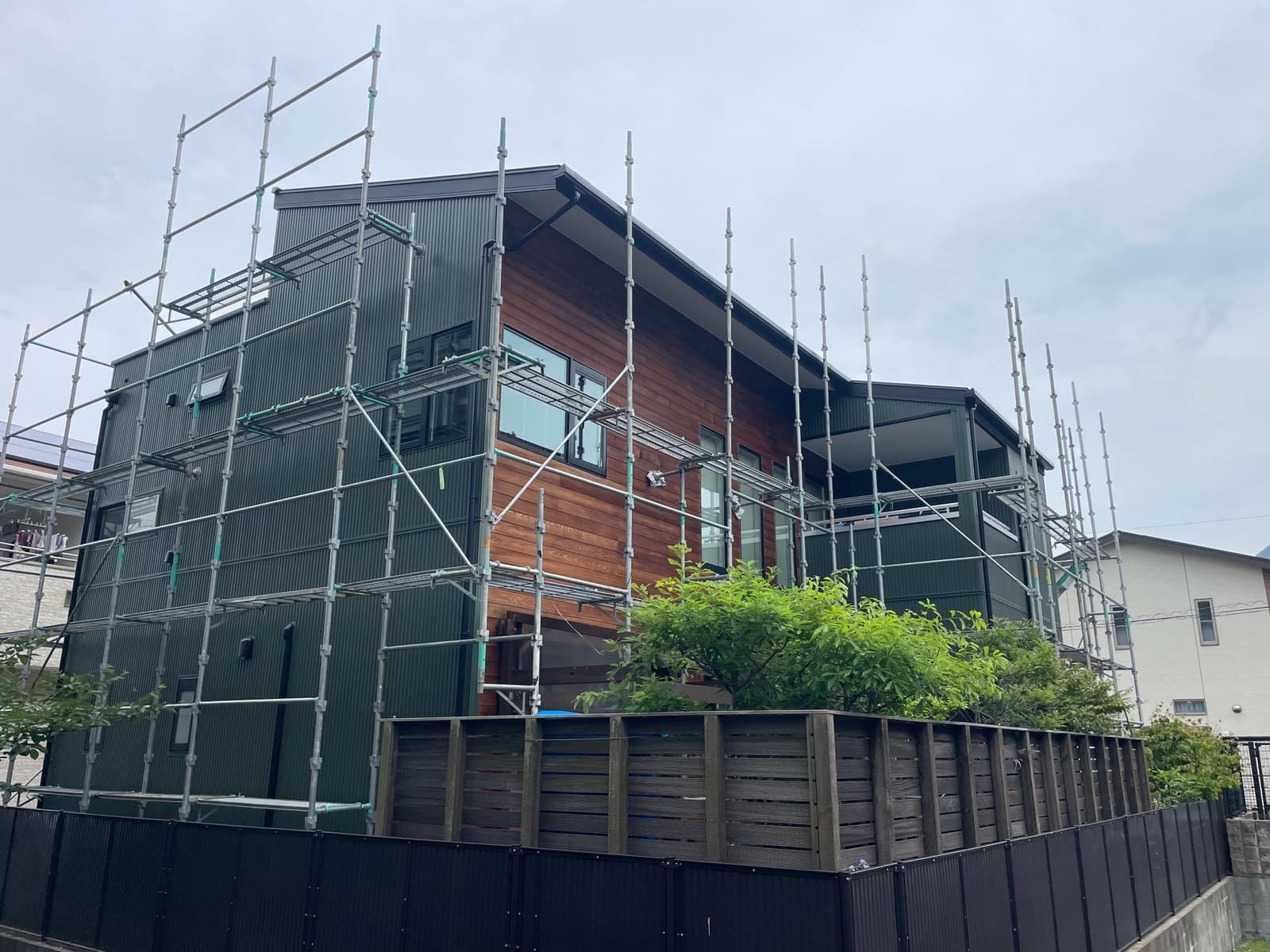 本日は木壁上塗り3回目、付帯塗装、足場解体前検査をさせて頂いております。