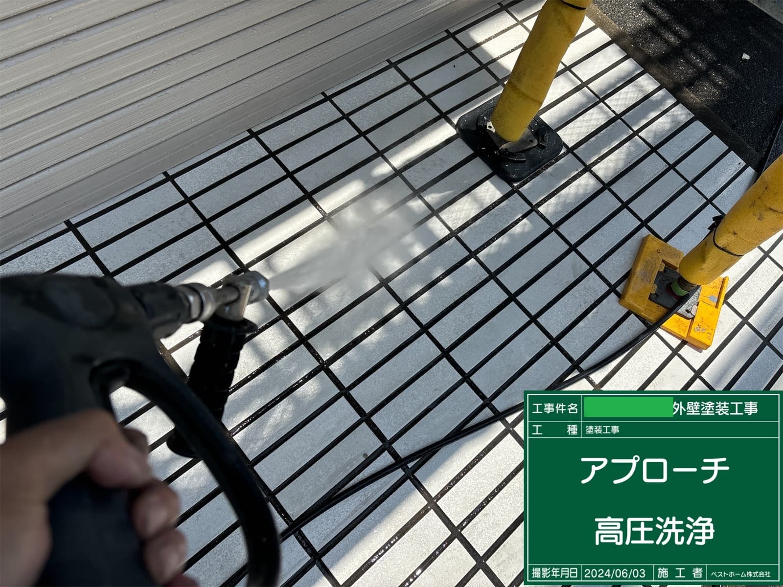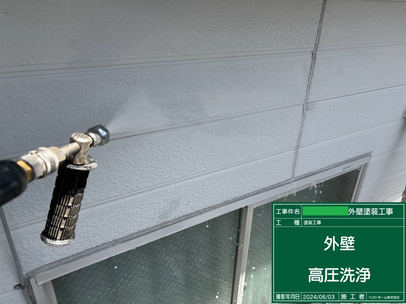 高圧洗浄では、旧塗膜や汚れなどをしっかりと洗浄していきます!