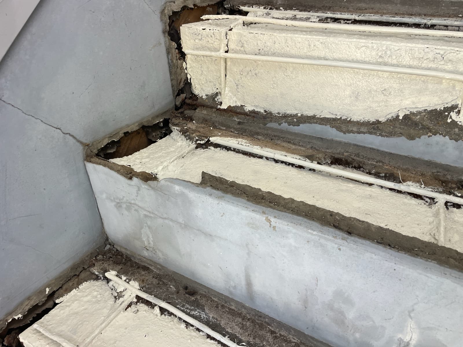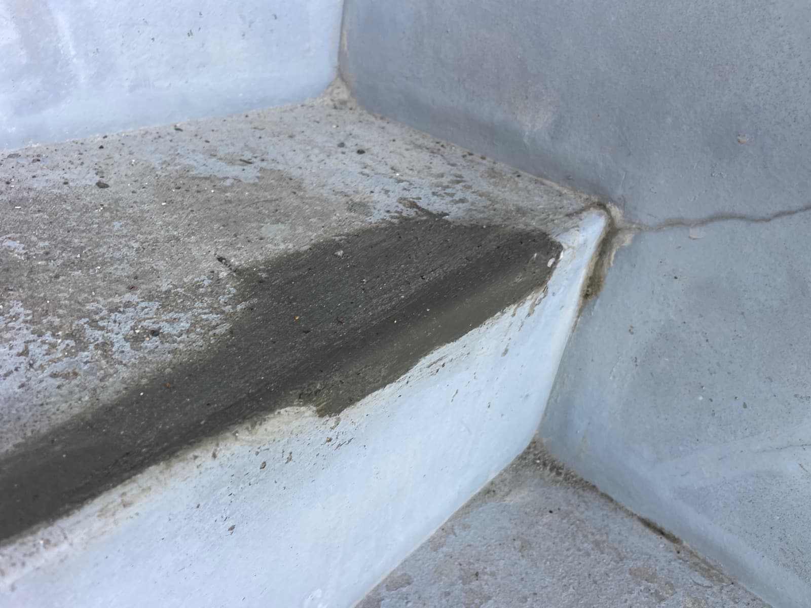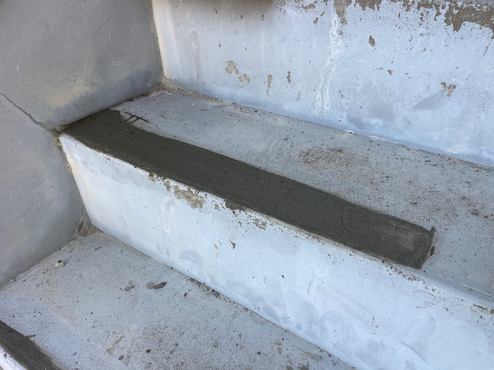 本日は階段劣化部の補修、シーリングの施工をさせて頂いております。