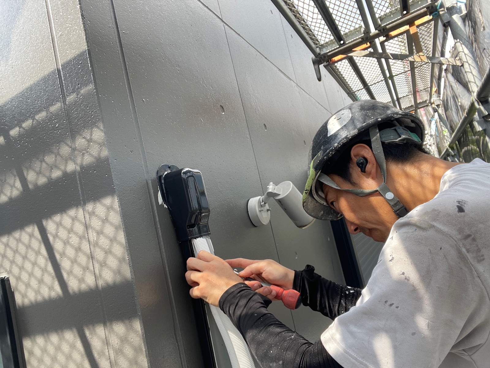 弊社では、外せるダクトカバー外して外壁を塗装致します!