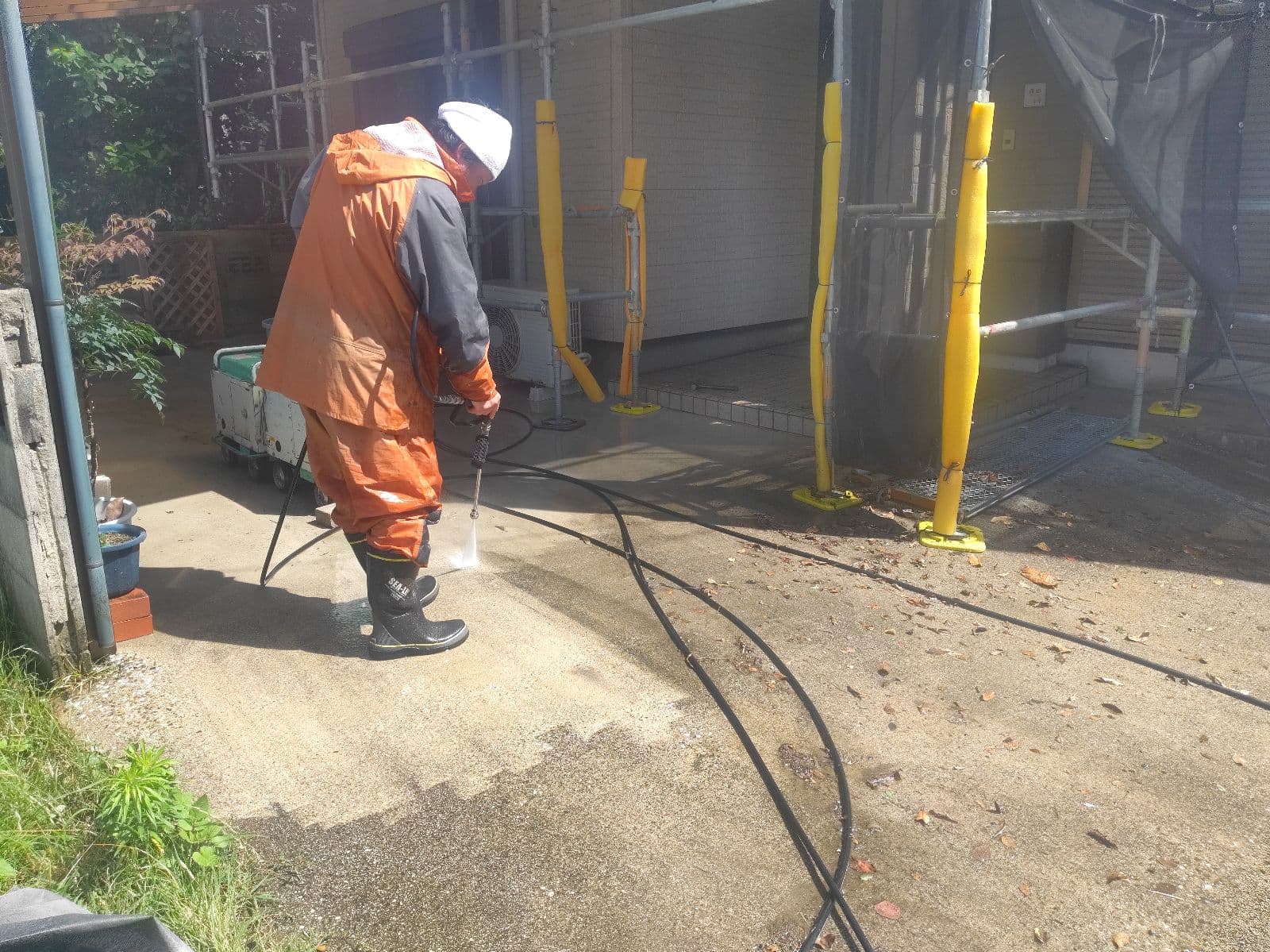 本日は高圧洗浄を行っております!