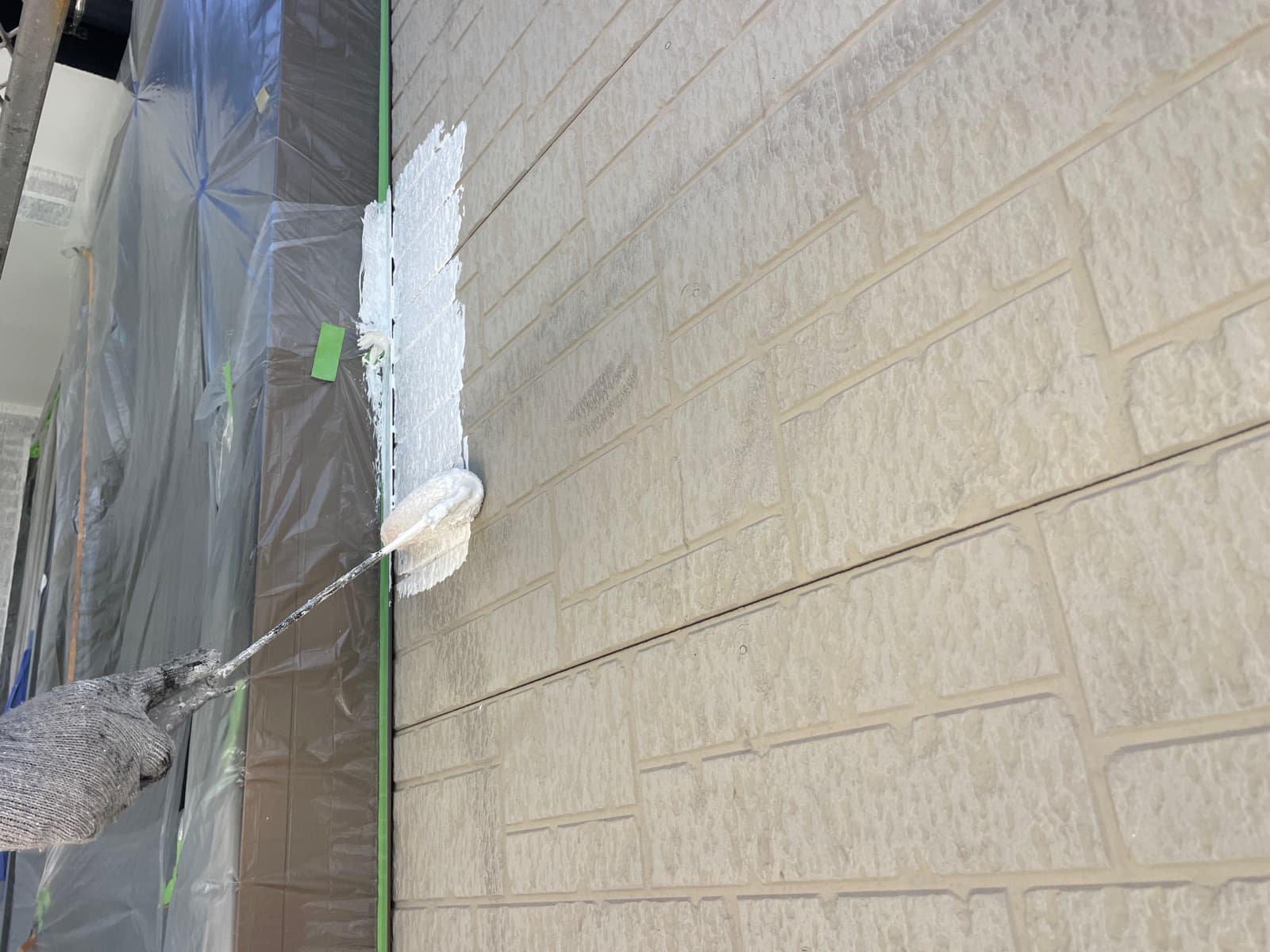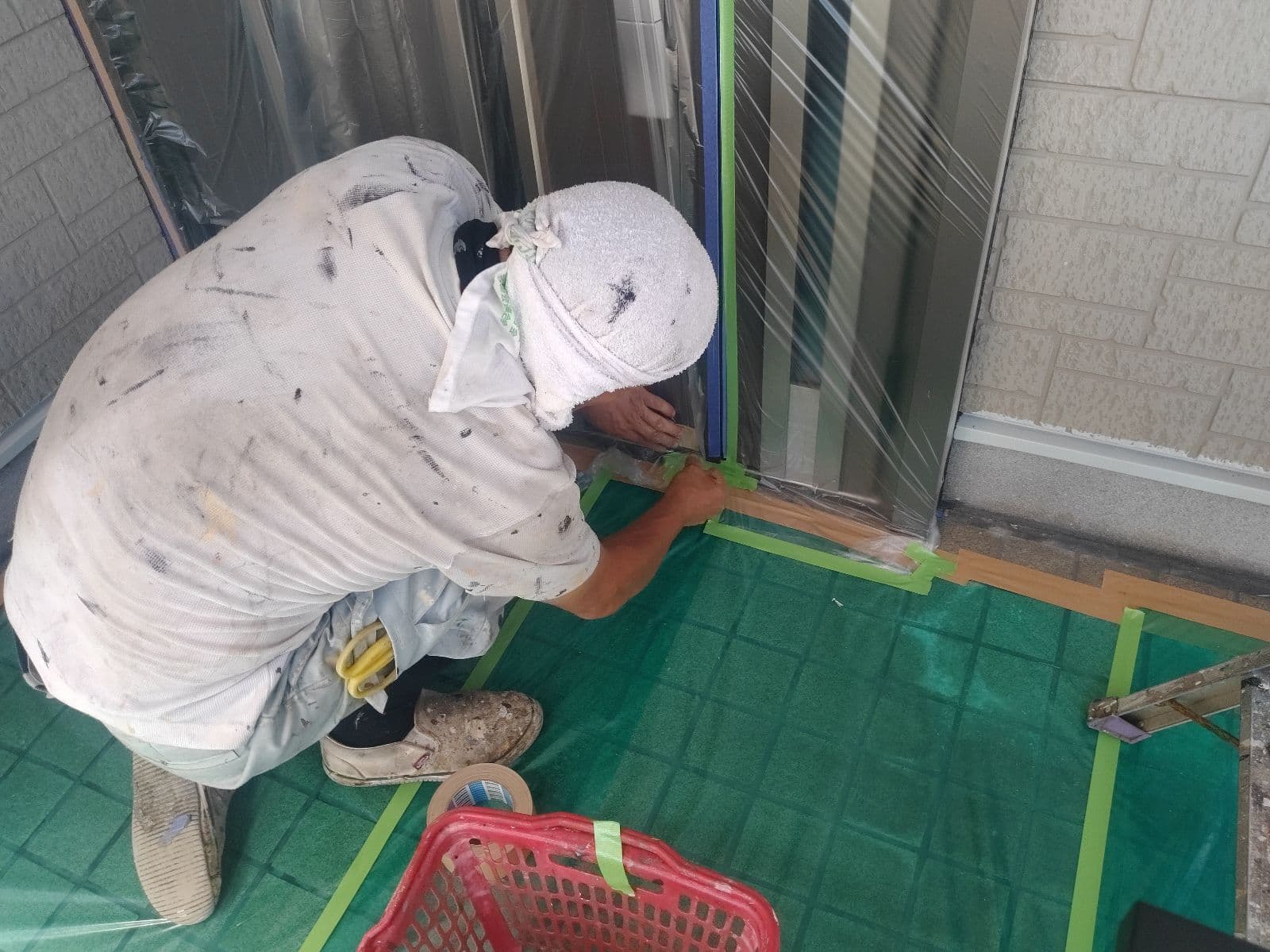 塗装の後半で施工する部位をビニールなどで覆う作業です!