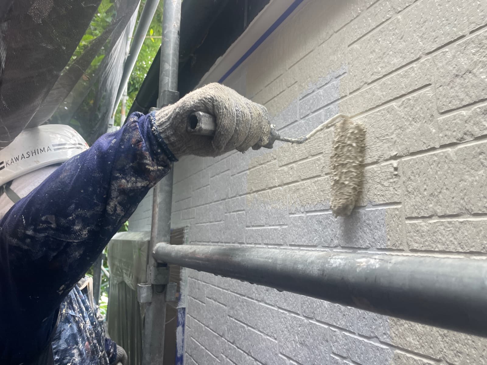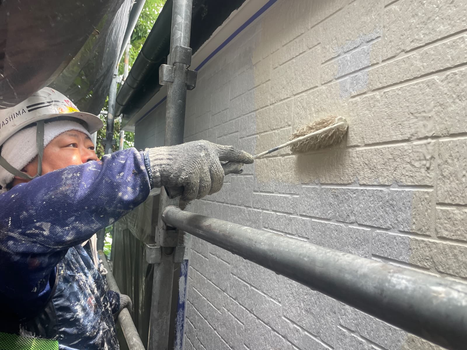 本日は外壁上塗り1回目を行っております!