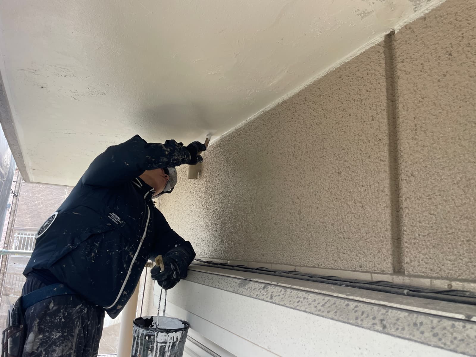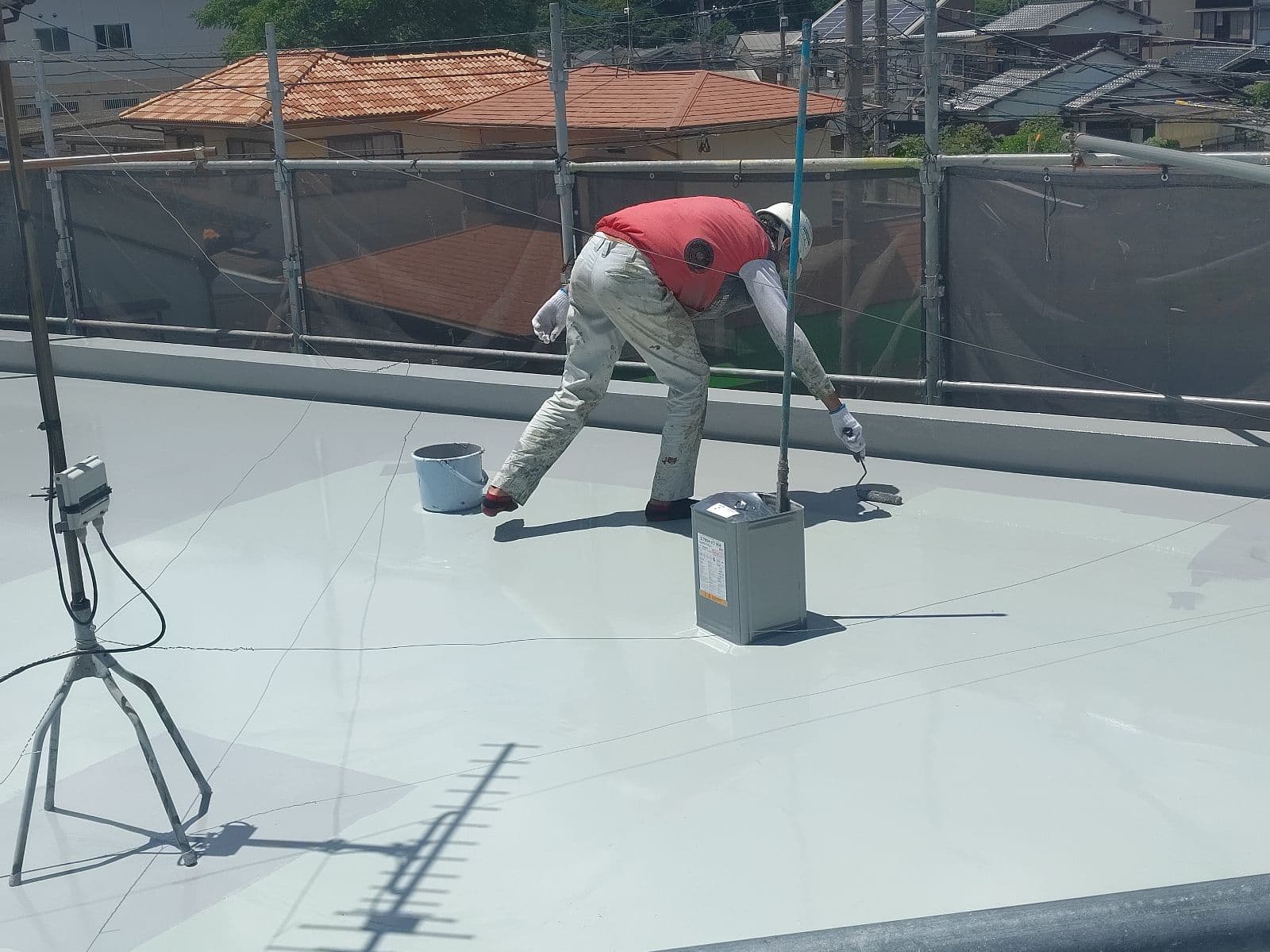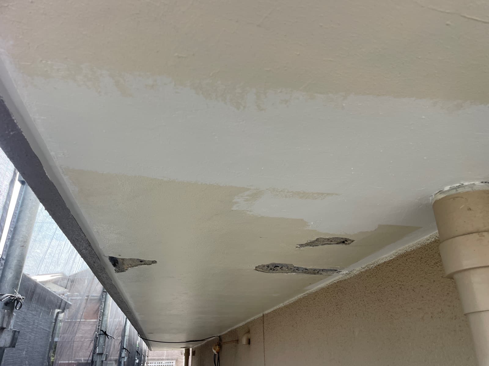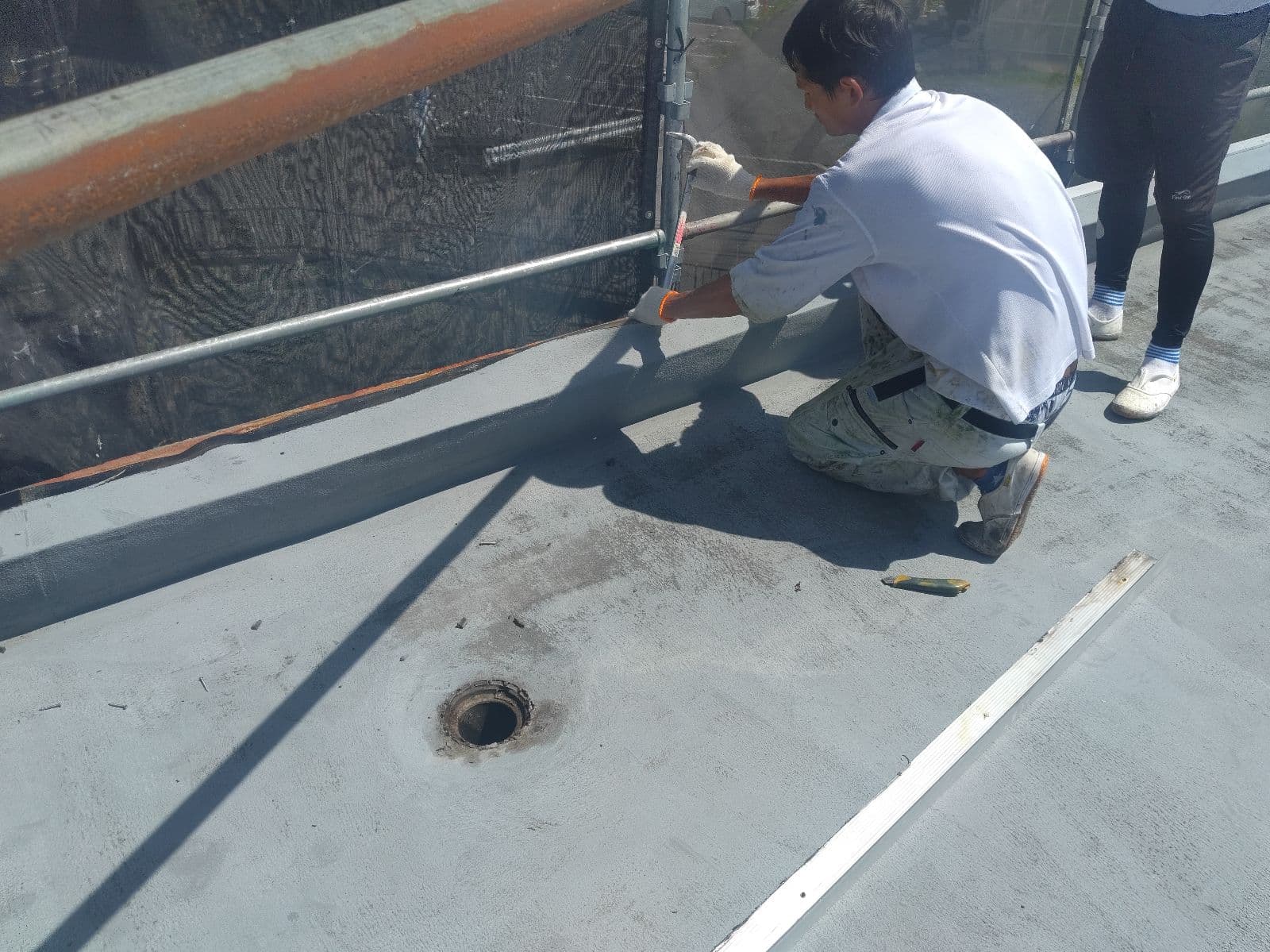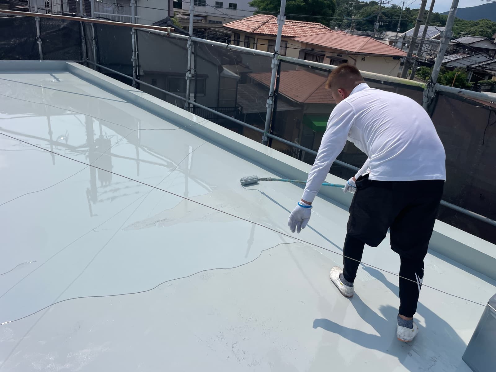 本日はウレタン防水2層目と軒天塗装をさせて頂いております。