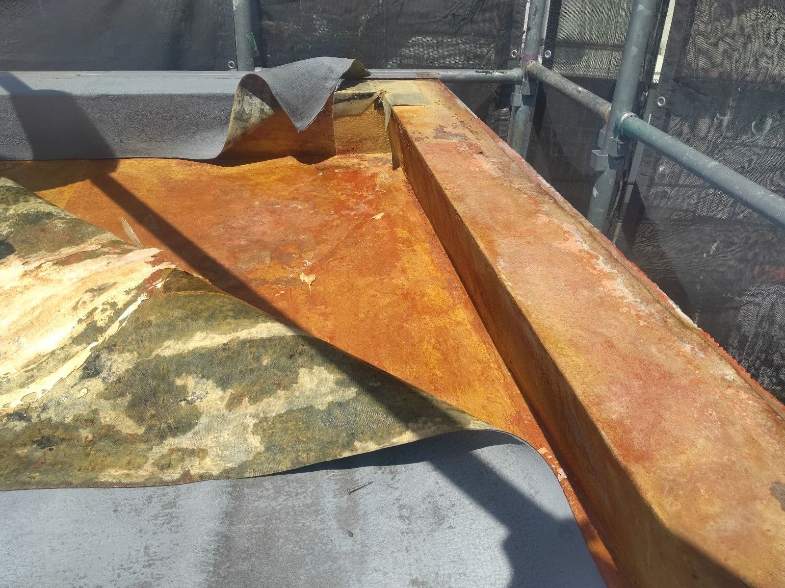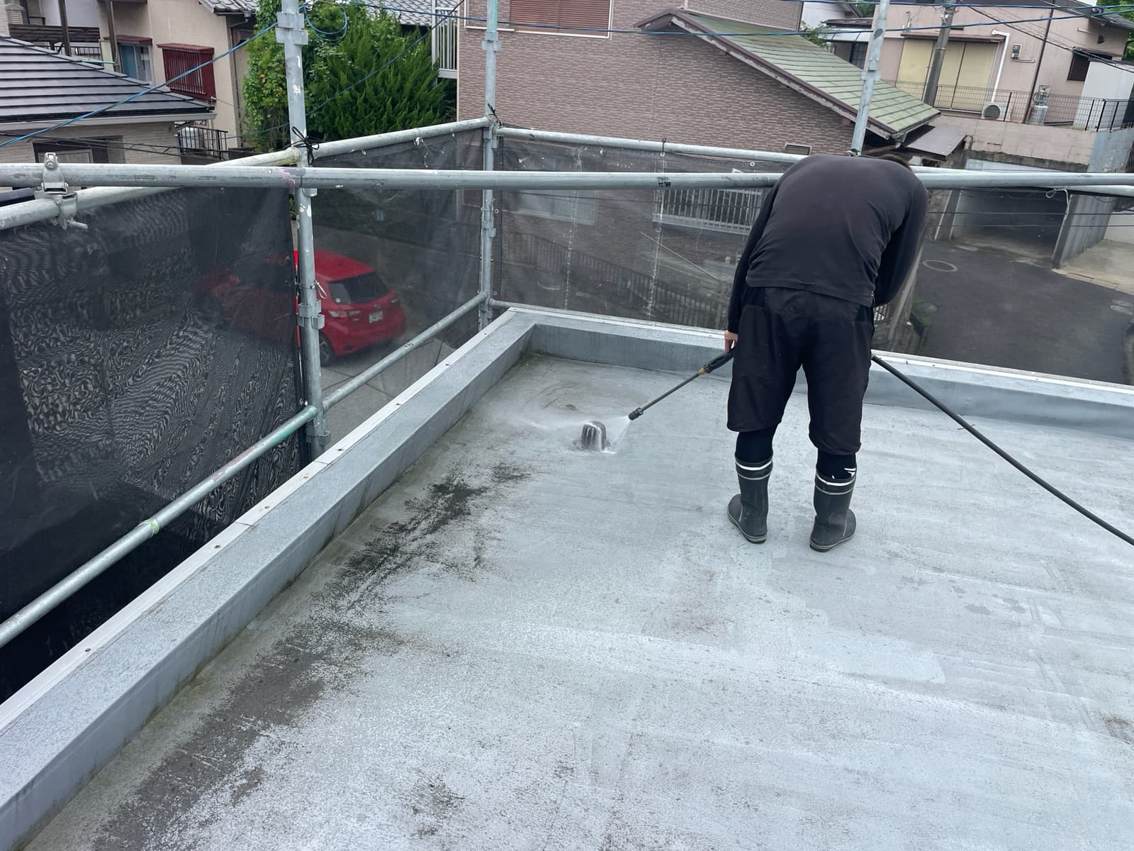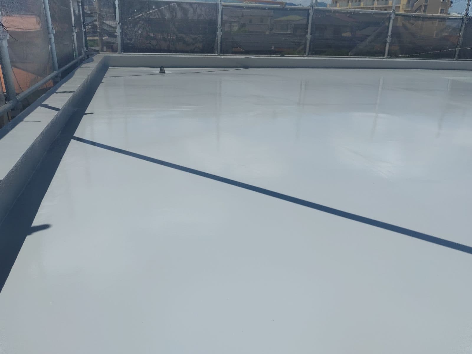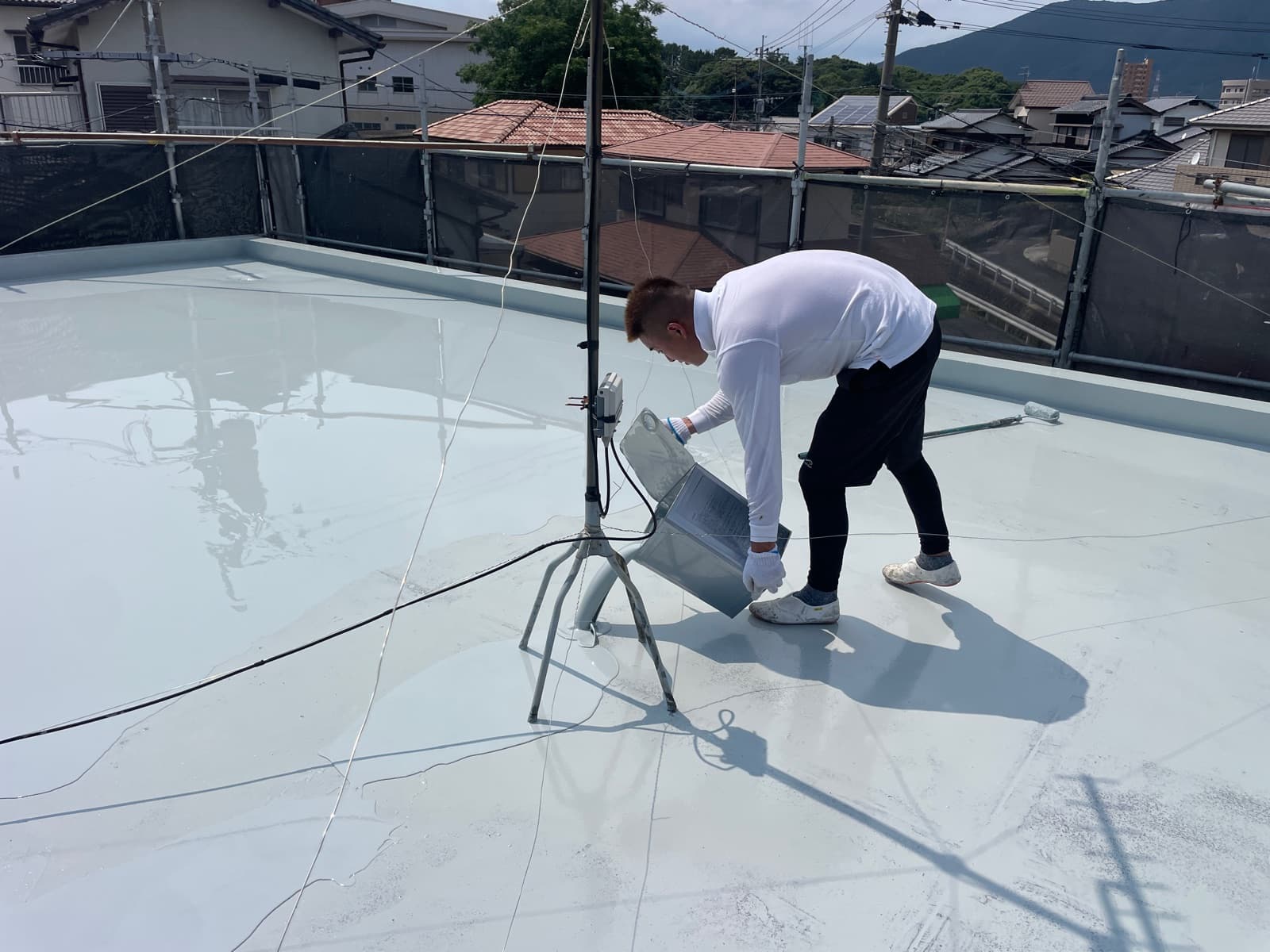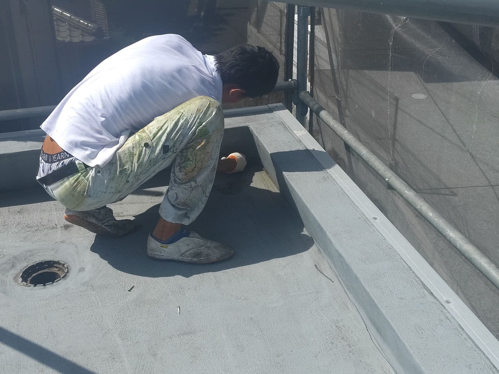 本日はウレタン防水2層目と軒天塗装をさせて頂いております。