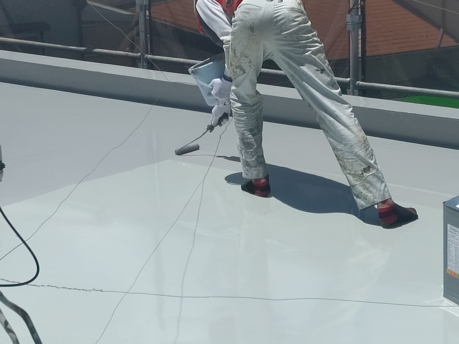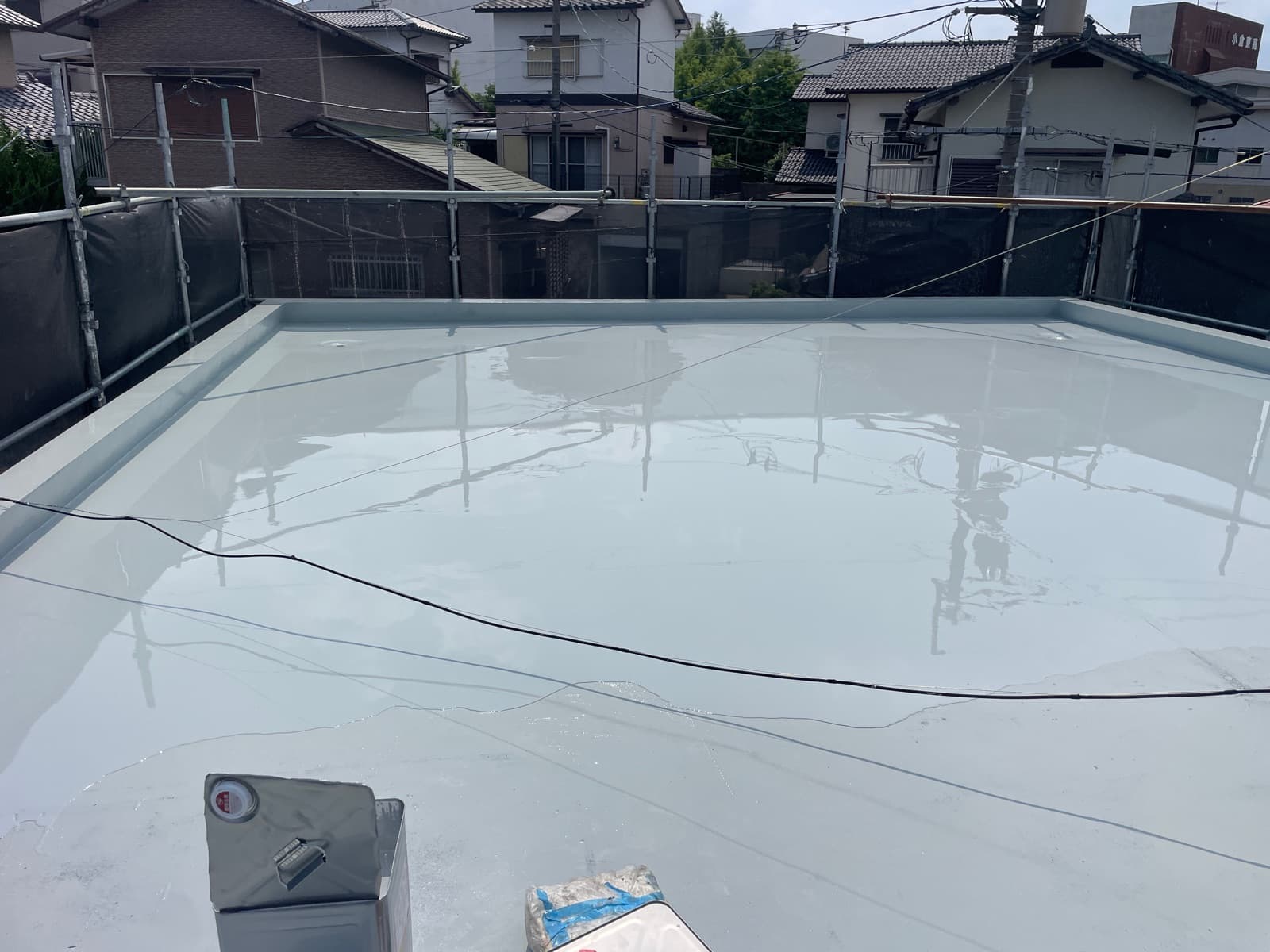 ウレタン防水の2層目をたっぷりと塗布しております!