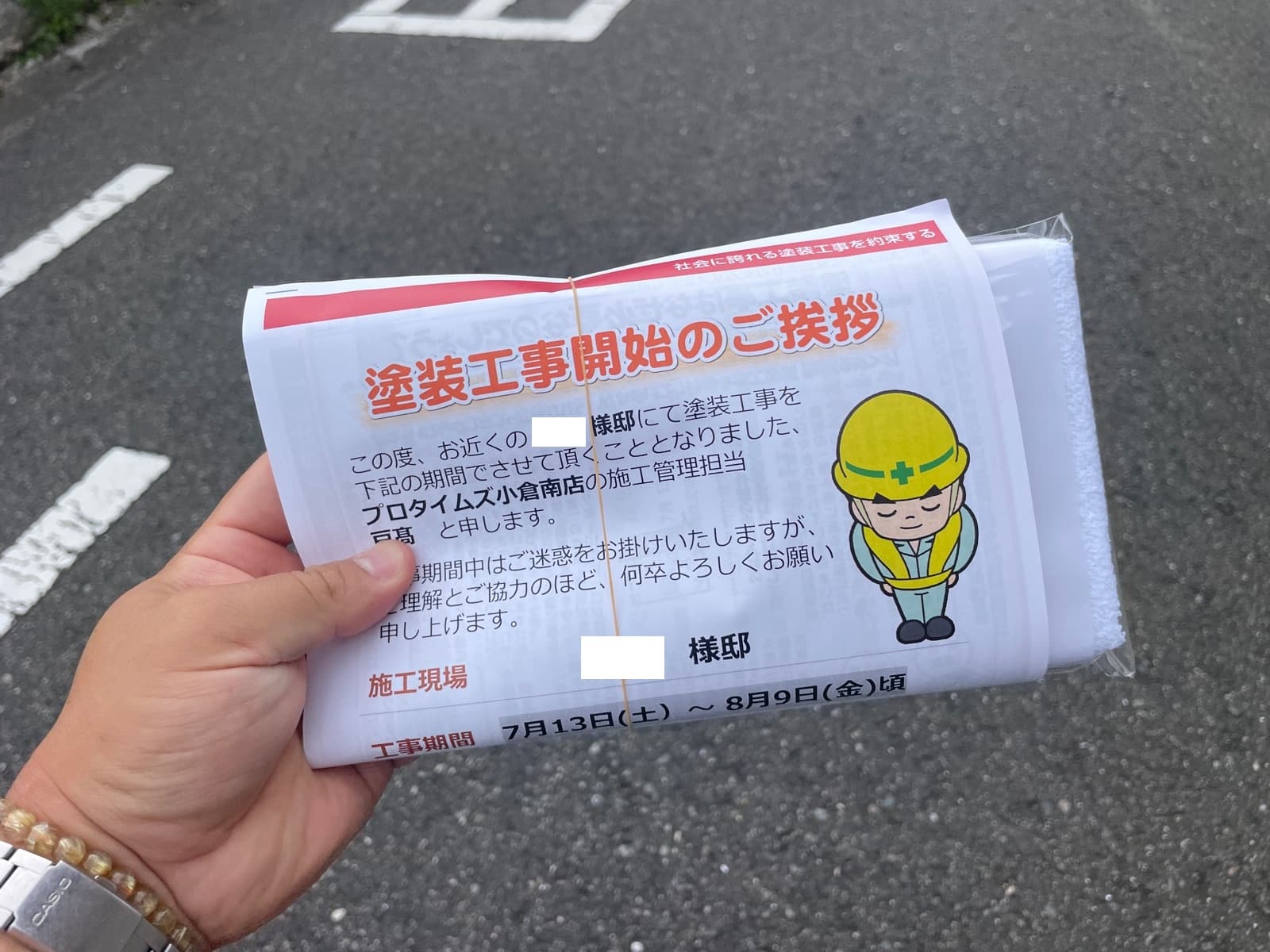 本日は近隣の方々へのご挨拶をさせて頂いております。