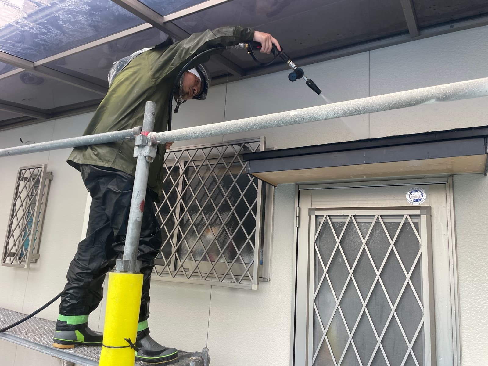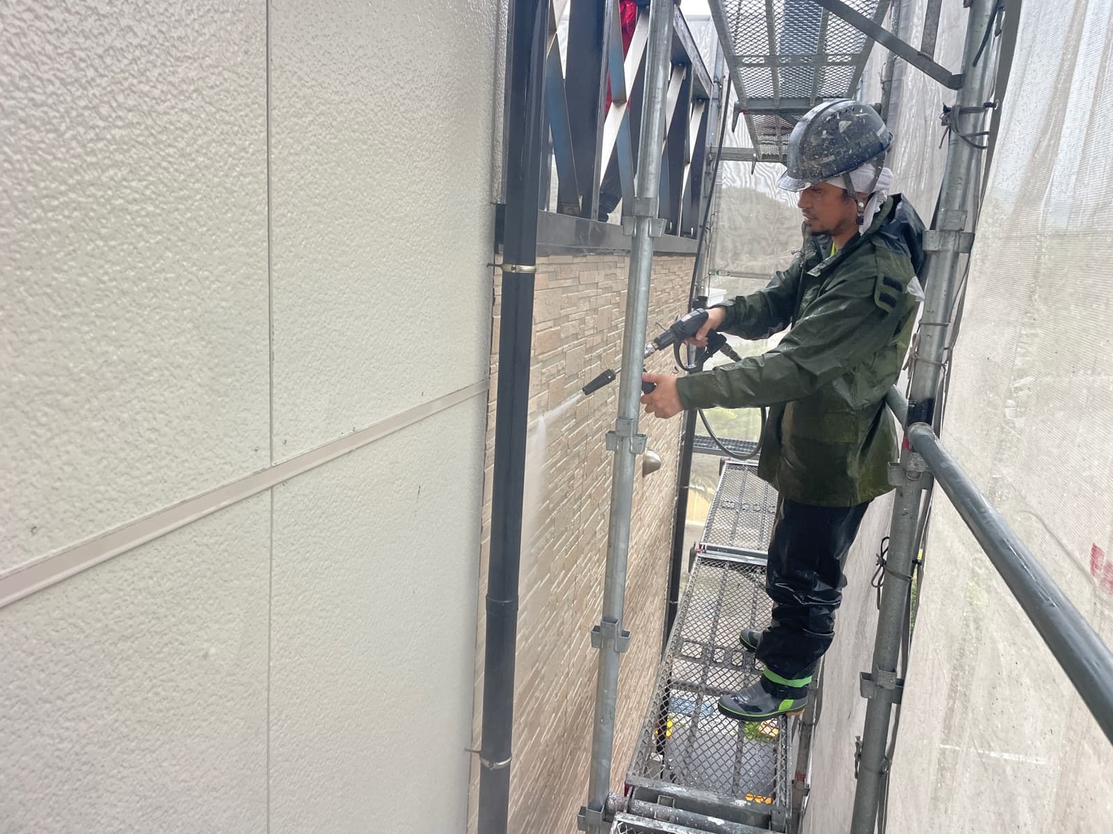 本日は外壁の下塗りを途中まで施工をさせて頂いております。