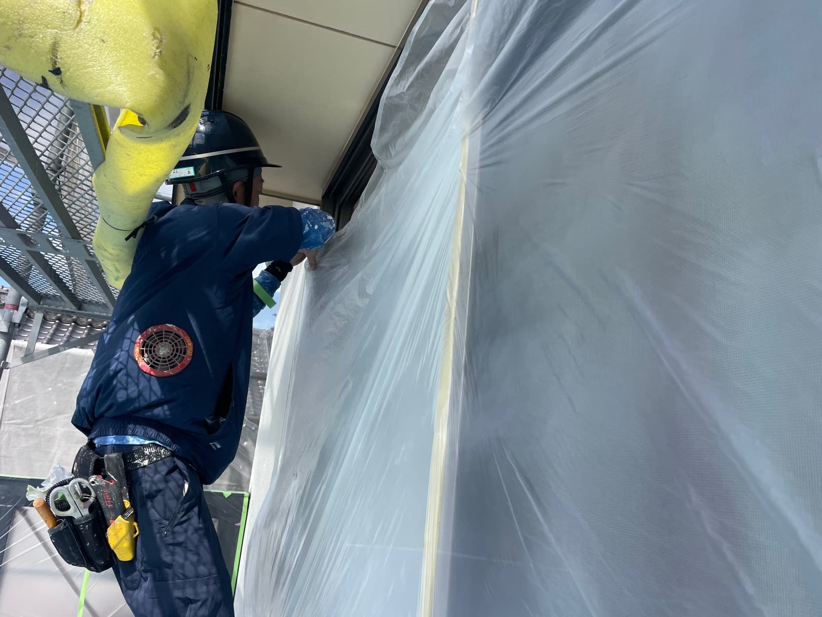 塗装の後半で施工する部位をビニールなどで覆う作業です!