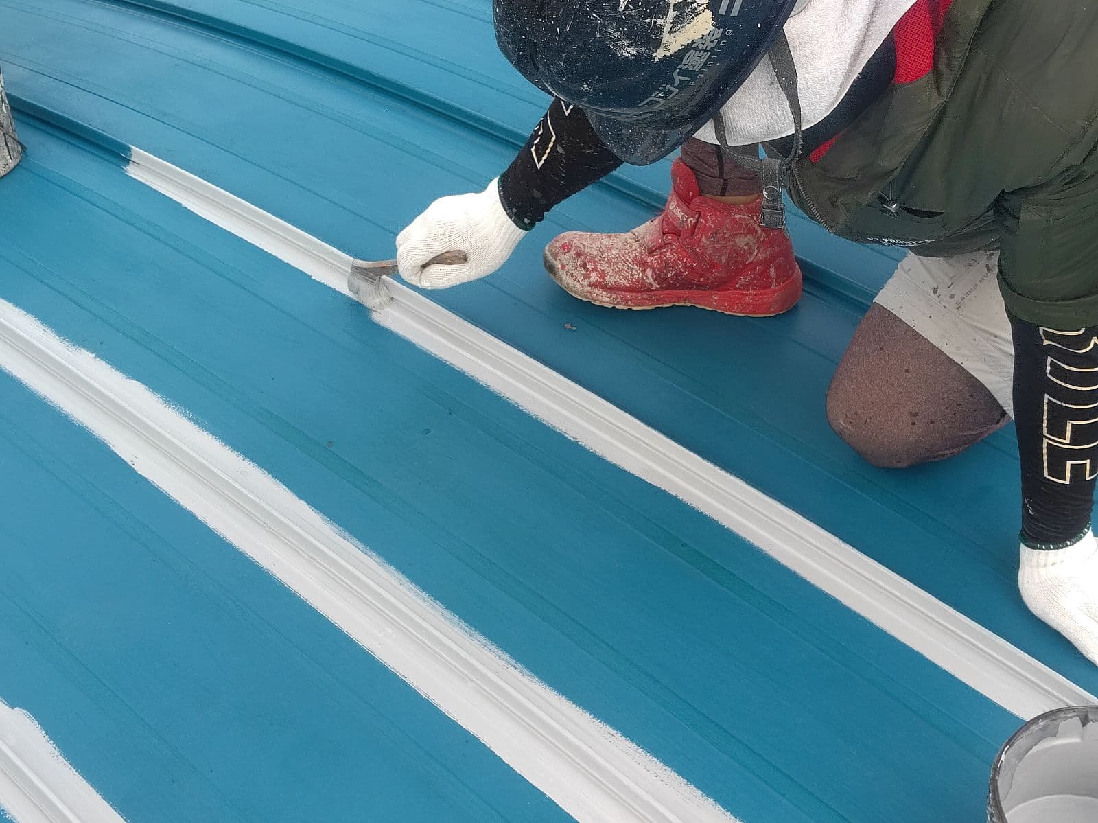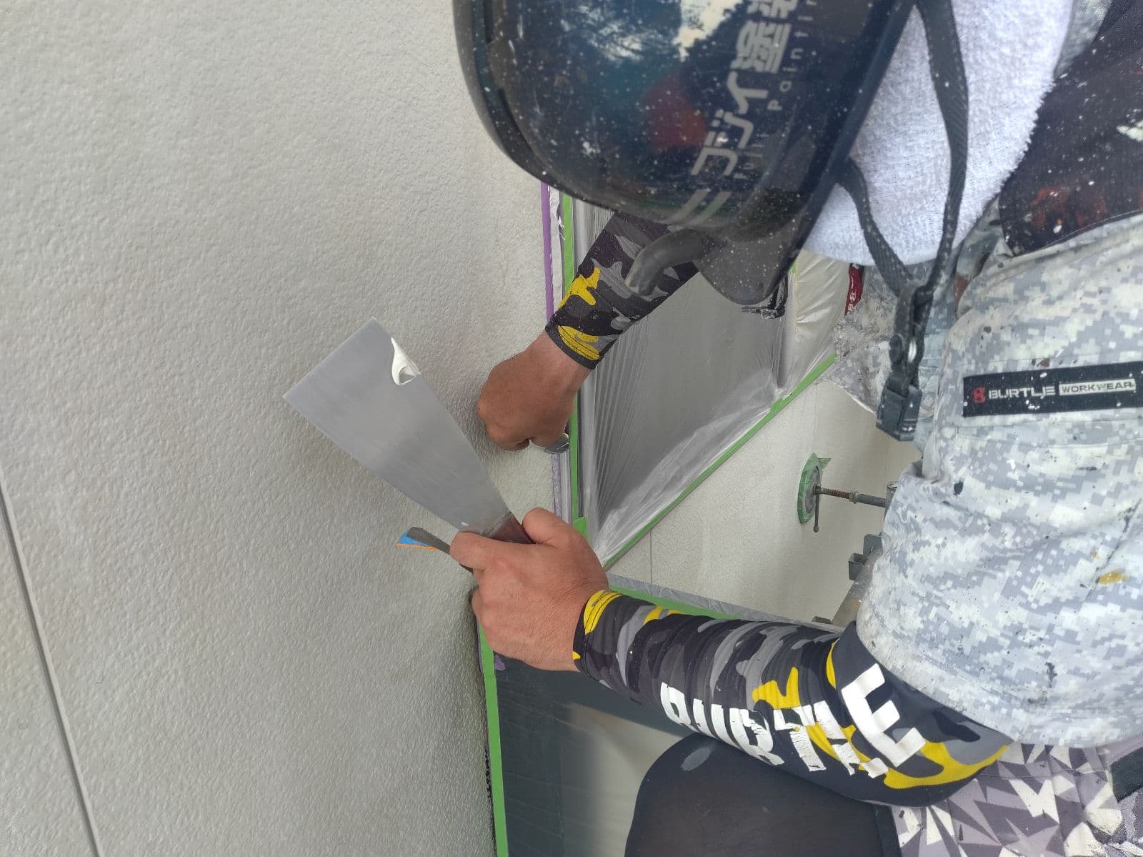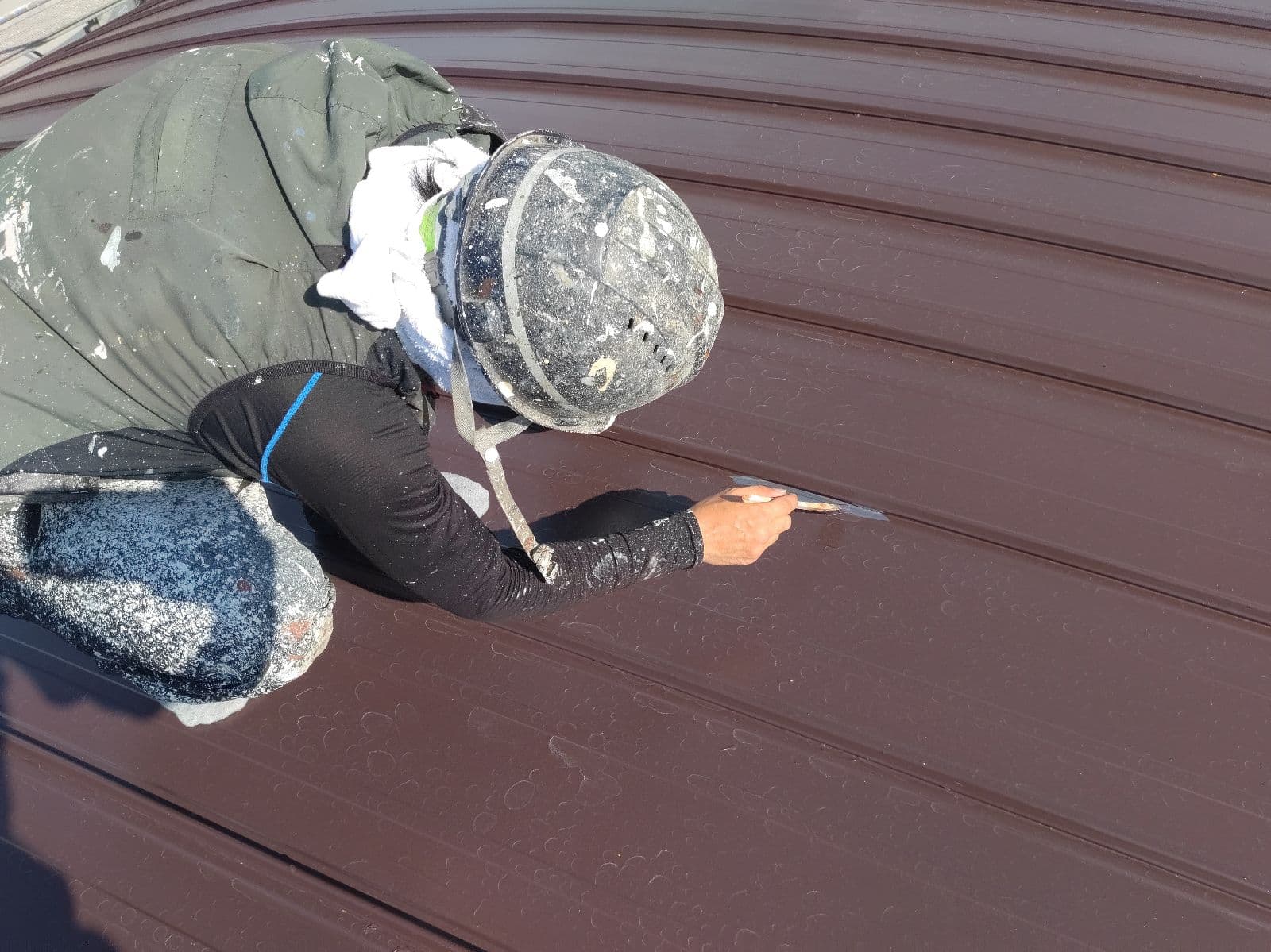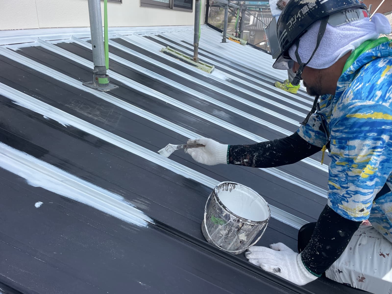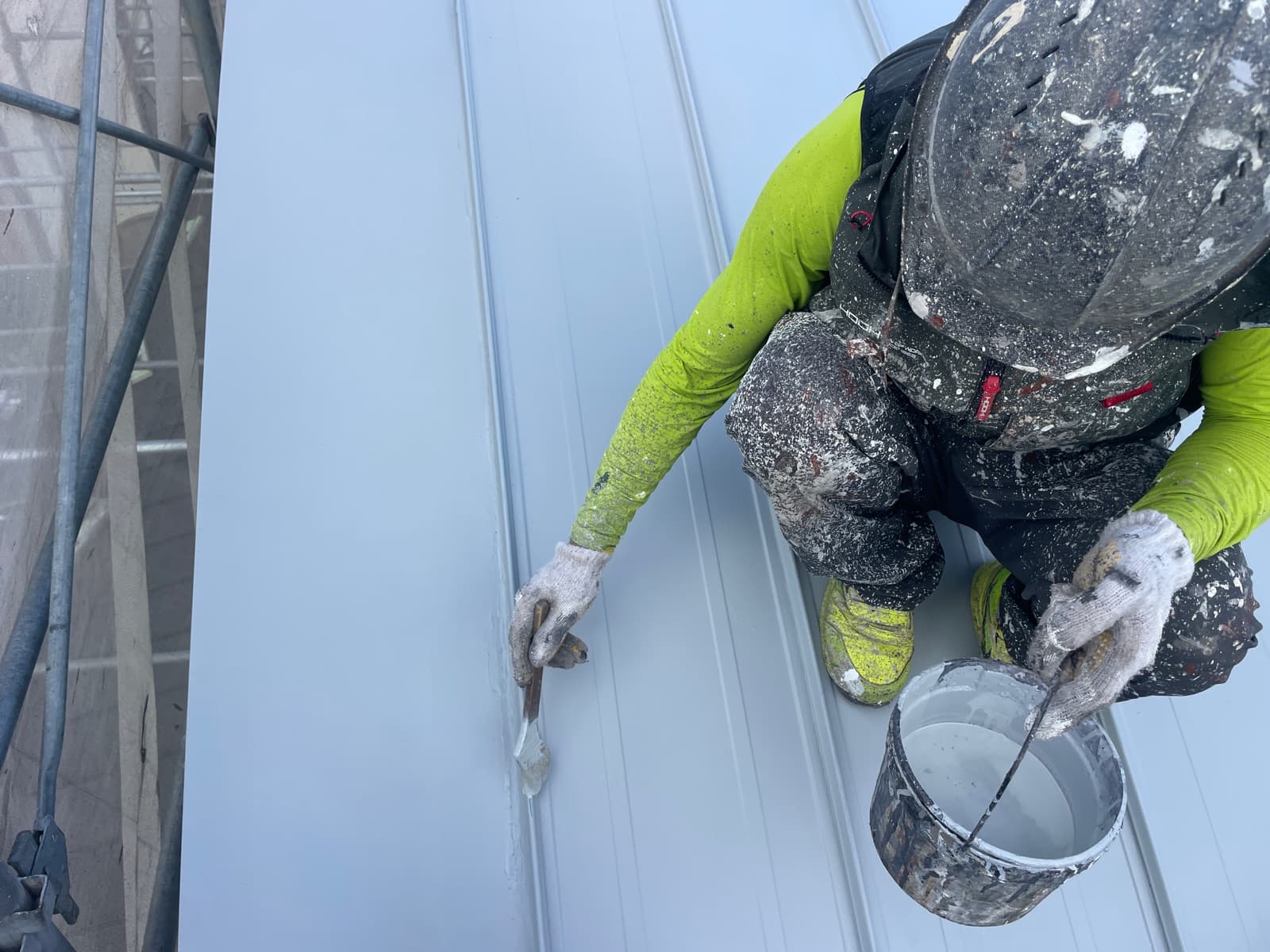 本日はシーリング作業、ケレン作業、屋根錆止めをさせて頂いております。