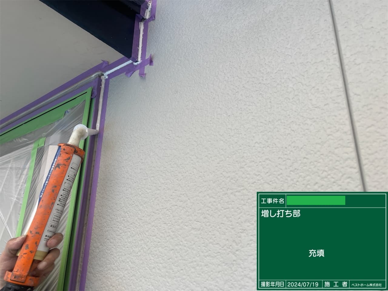 弊社では、ボードシーリングは打ち替え、サッシ廻りや壁と軒の取り合いなどは