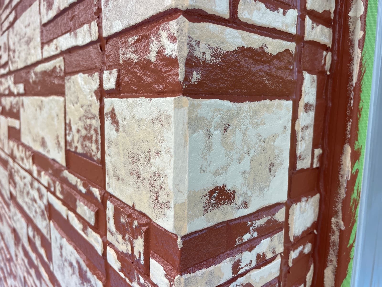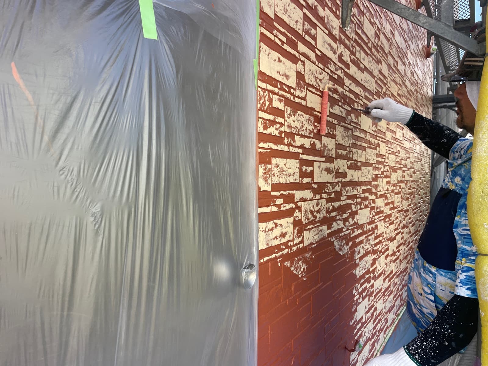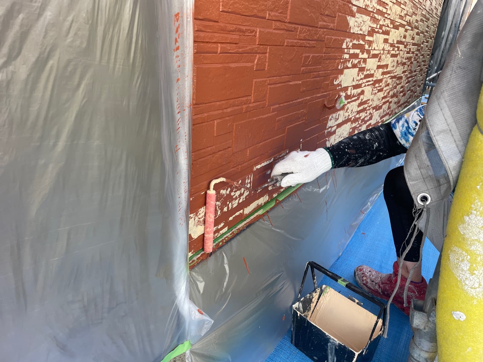 本日はアクセント部の塗装、付帯部の塗装、ベランダの塗装等をさせて頂いております。