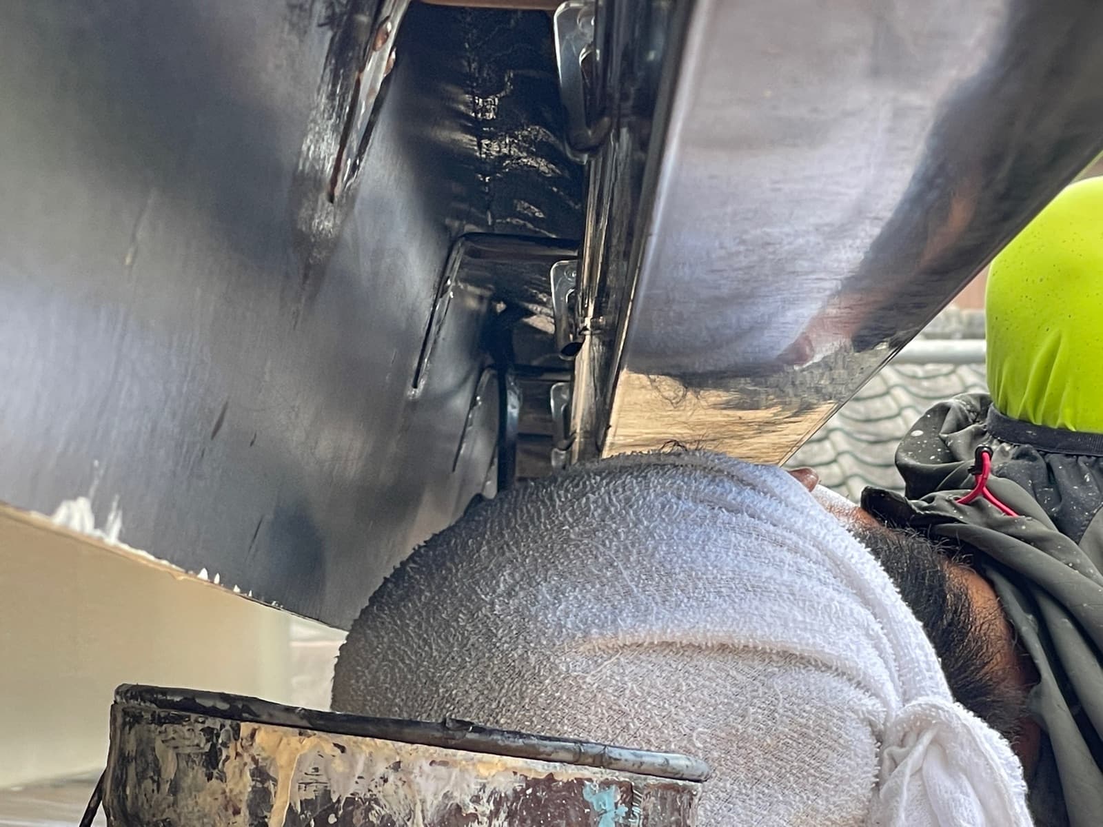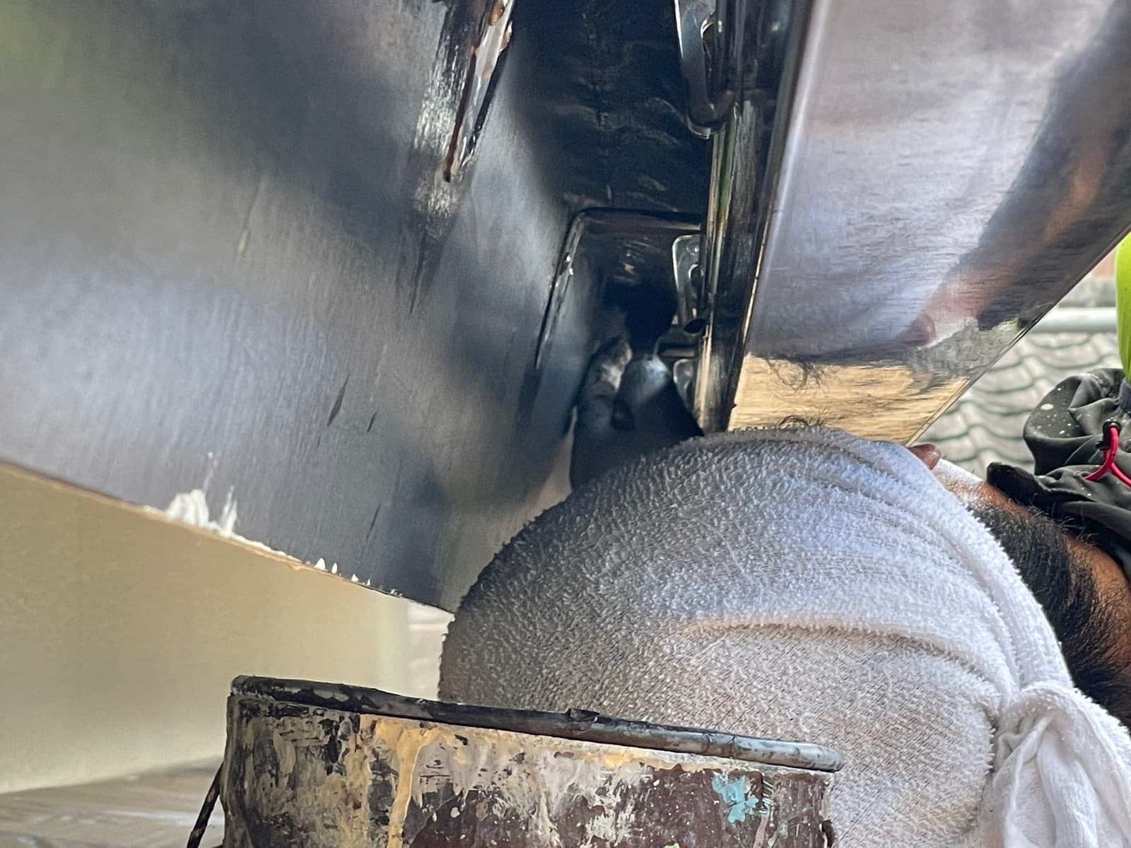 狭小部ですが、刷毛を使って細かく塗装を行っております!