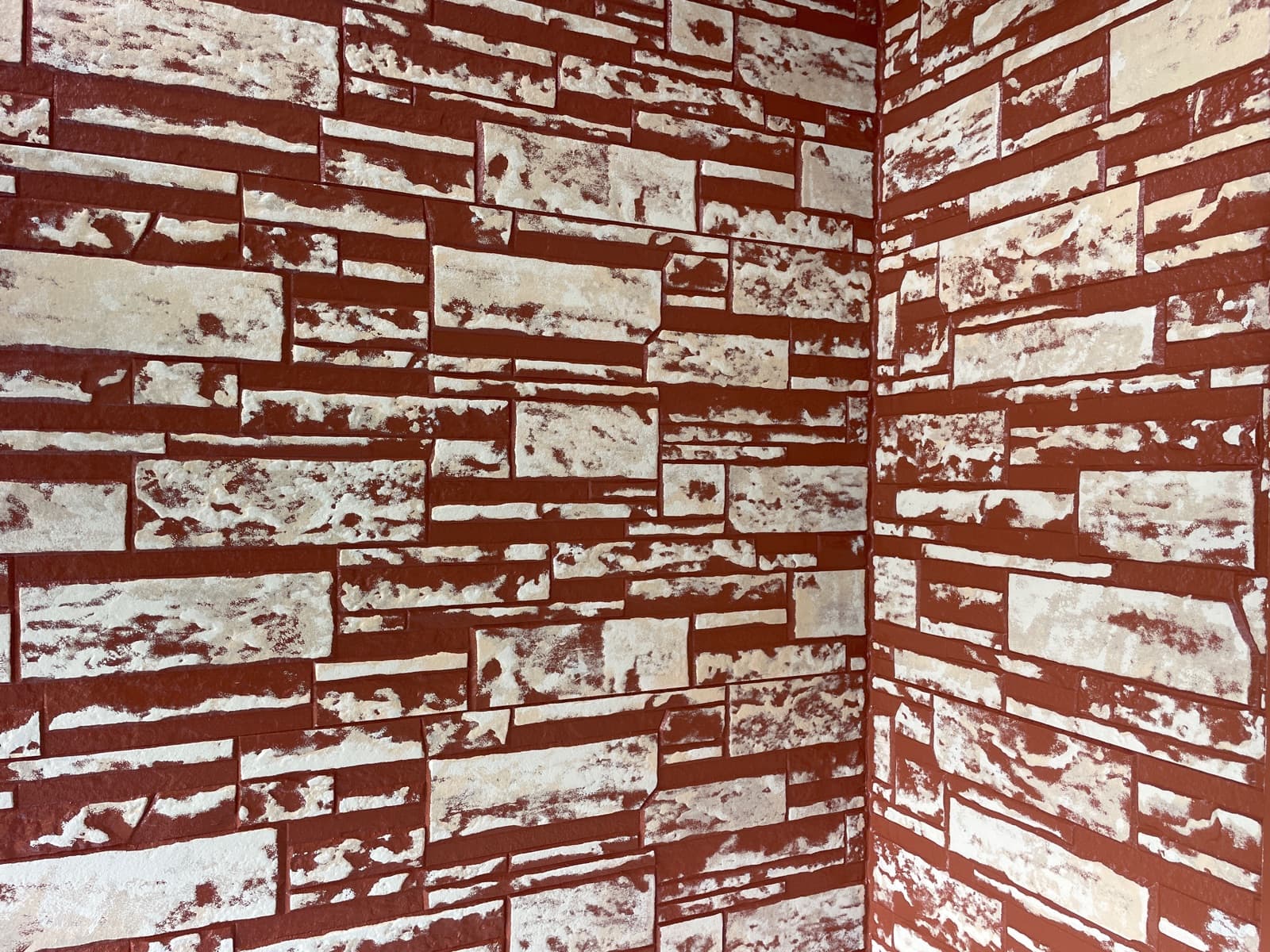 濃い赤茶色の上に、明るいベージュと柔らかいクリーム色の2層のアクセントを入れてます!