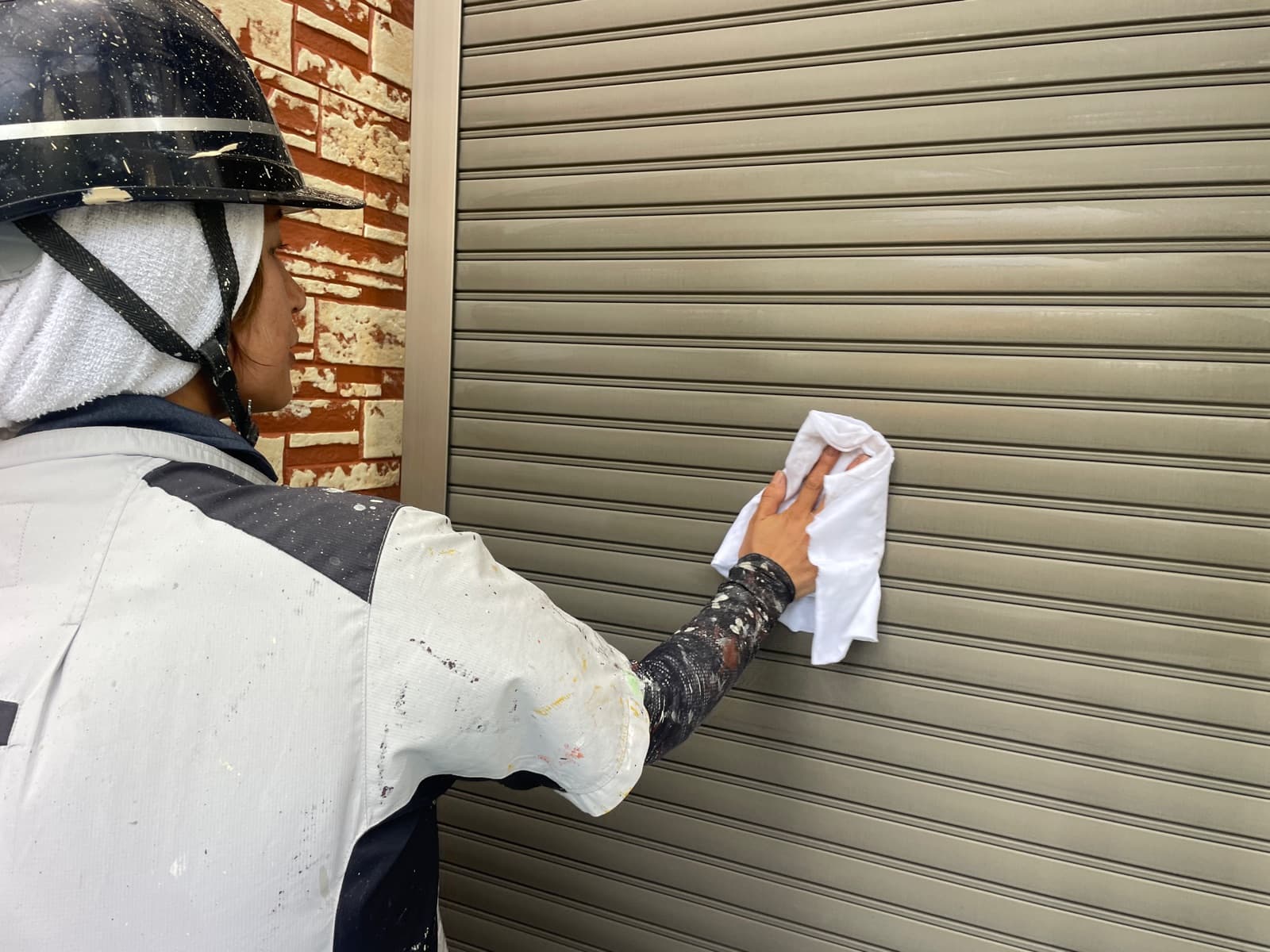 本日は、シャッター塗装、手直し・清掃、足場解体前検査をさせて頂いております。
