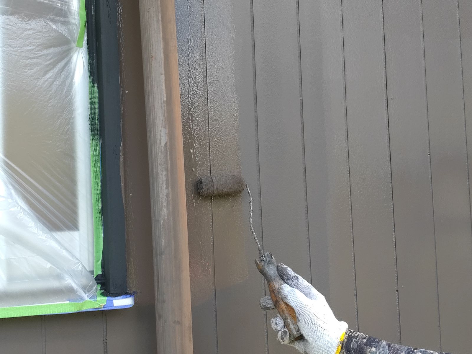 本日は外壁上塗り、クロス貼り替え工事をさせて頂いております。