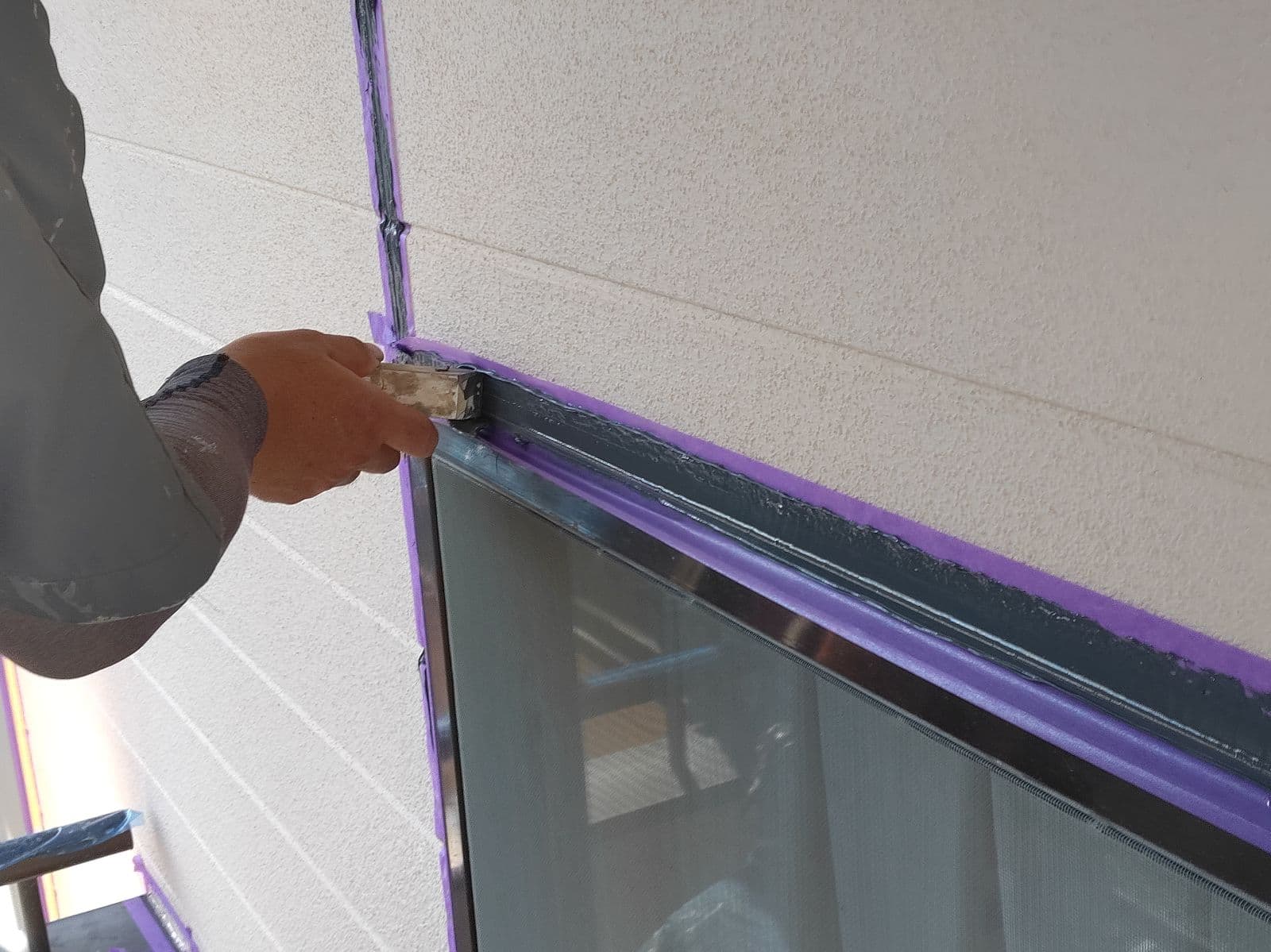 今回外壁の色が変わりますので、シーリングの色を白ではなくグレーを使用しております!