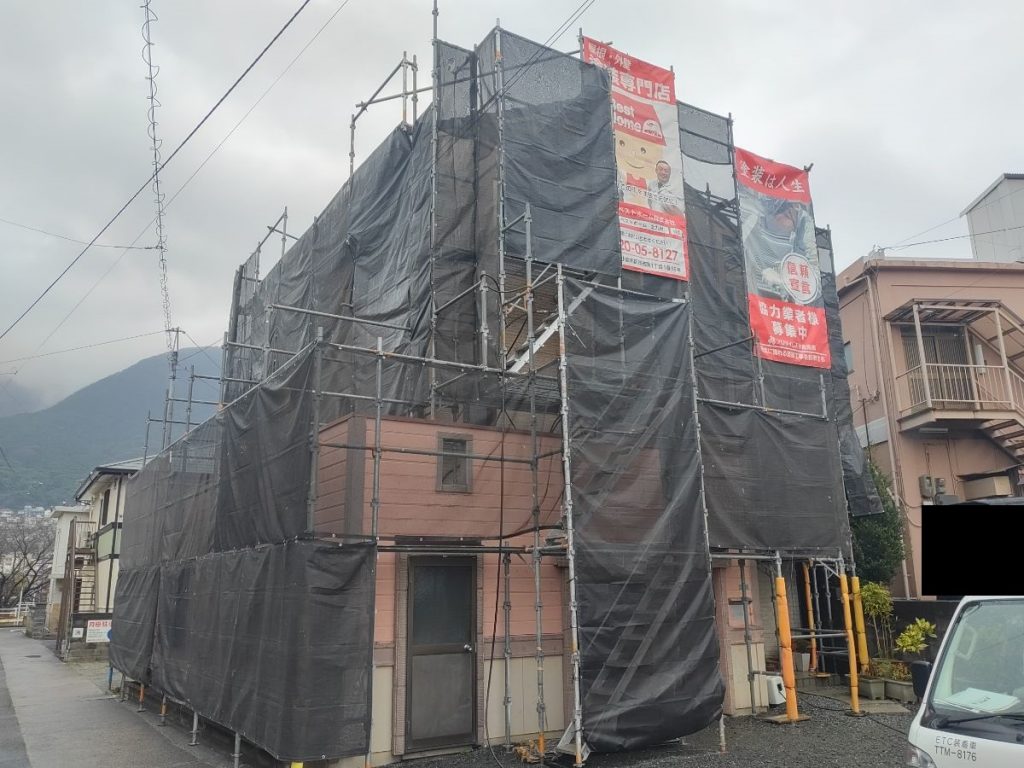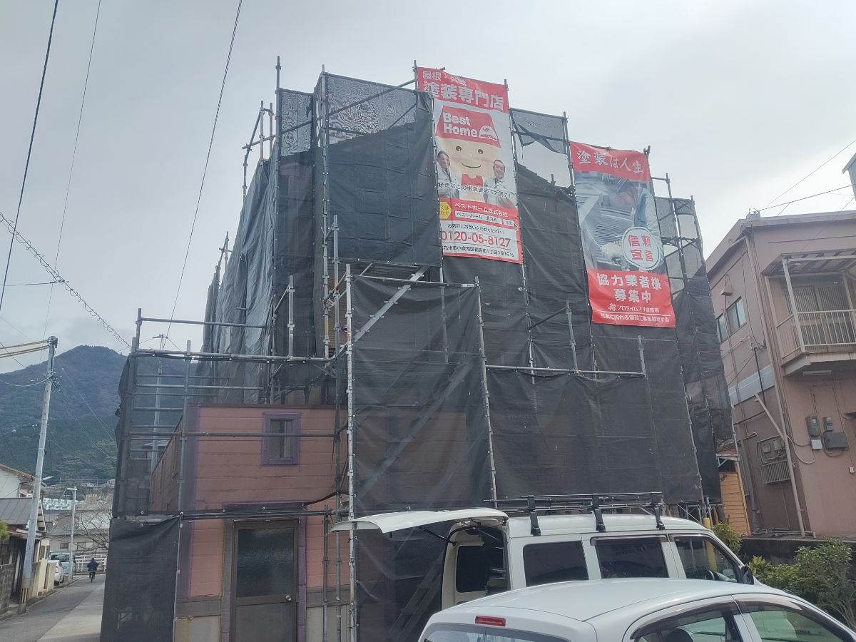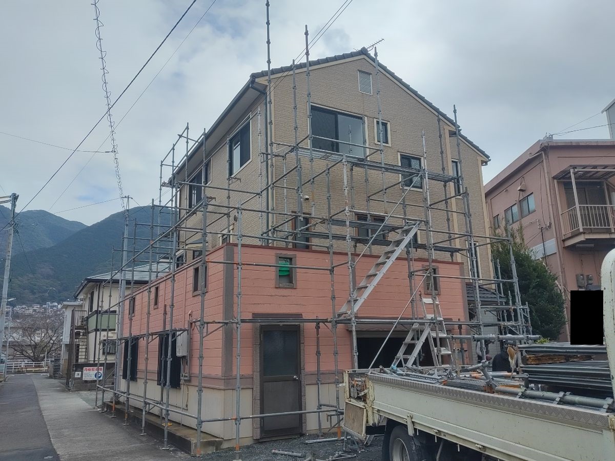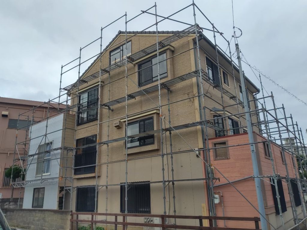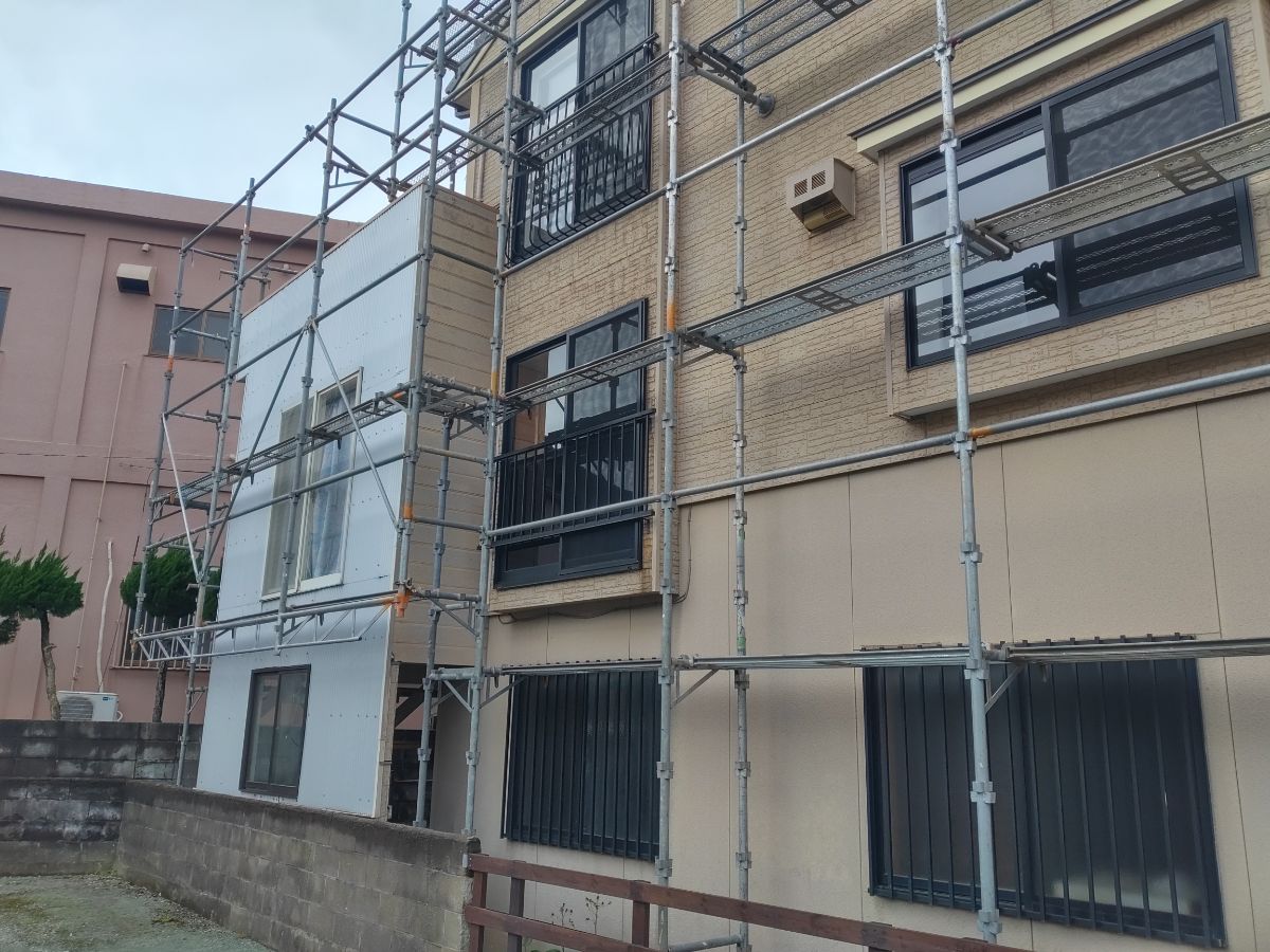 その要望にお応え頂きながら、塗装が安全にできる足場を組んで頂いております!