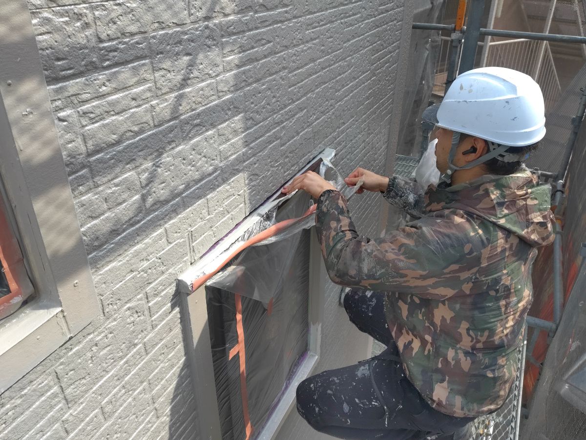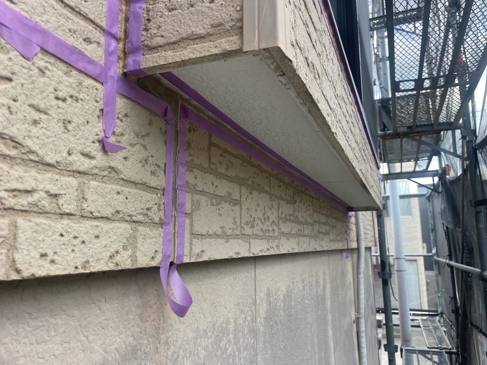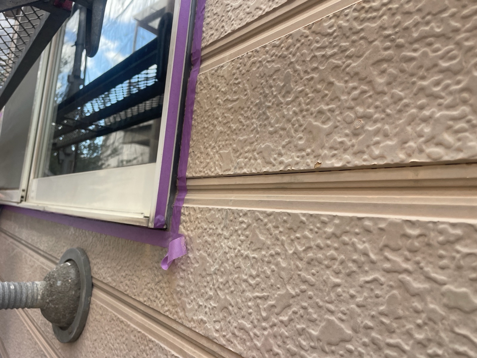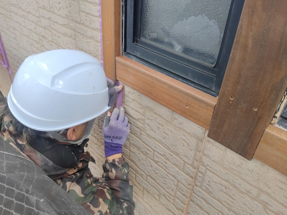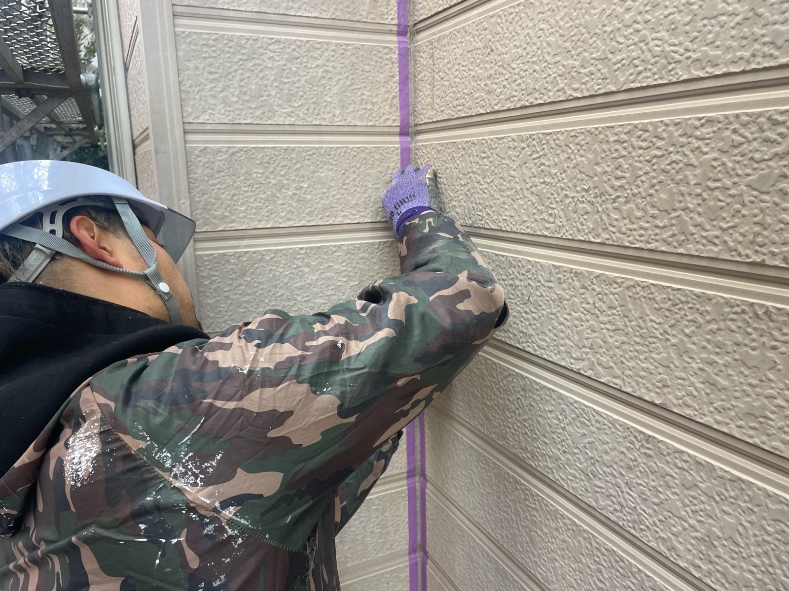 本日はシーリング箇所にテープを貼る養生を行っております!