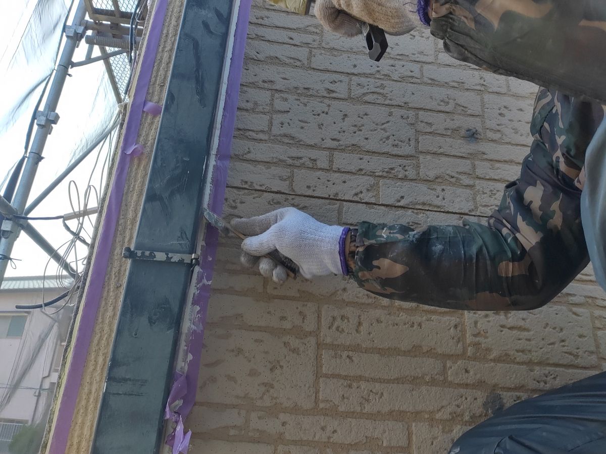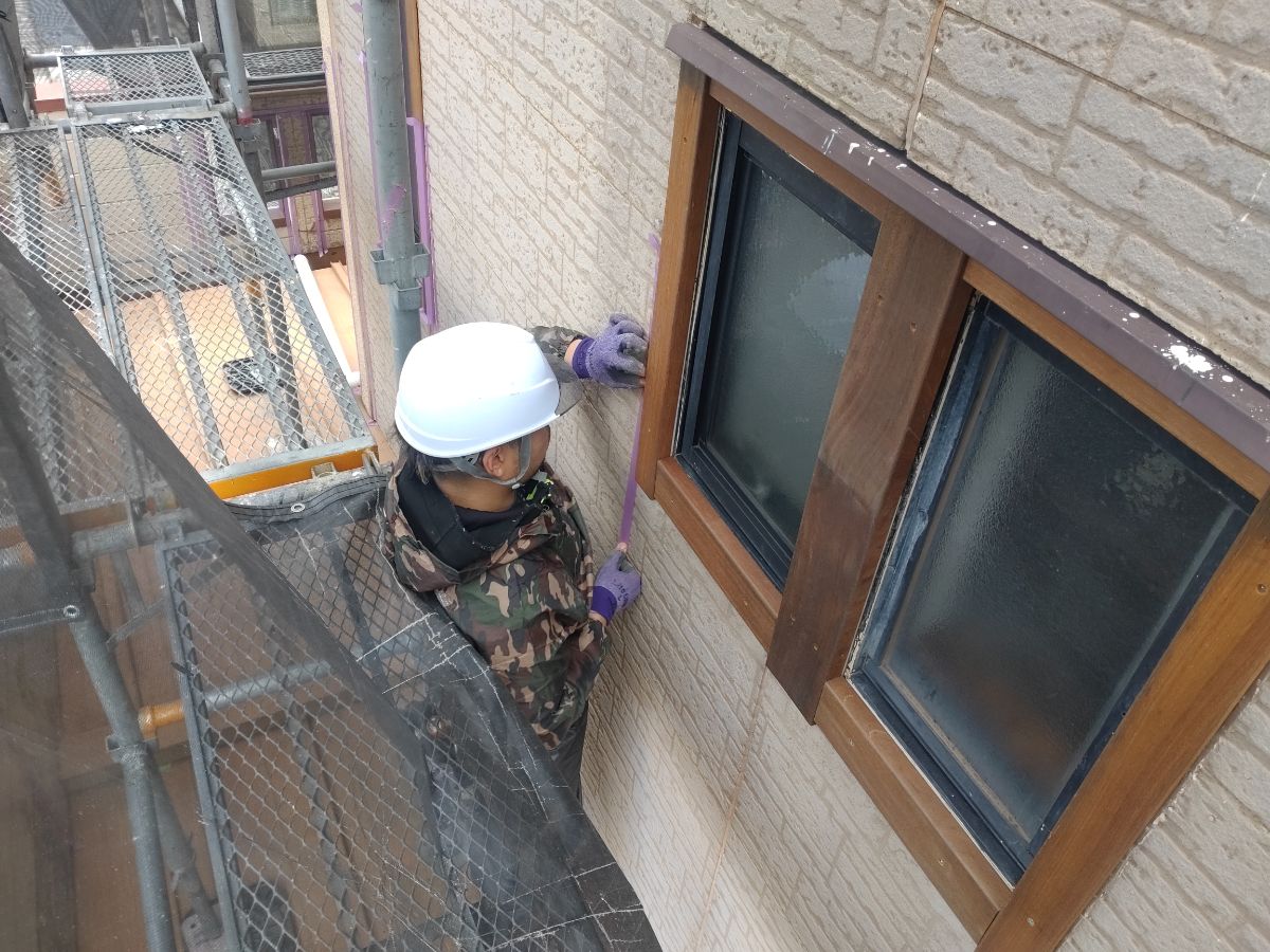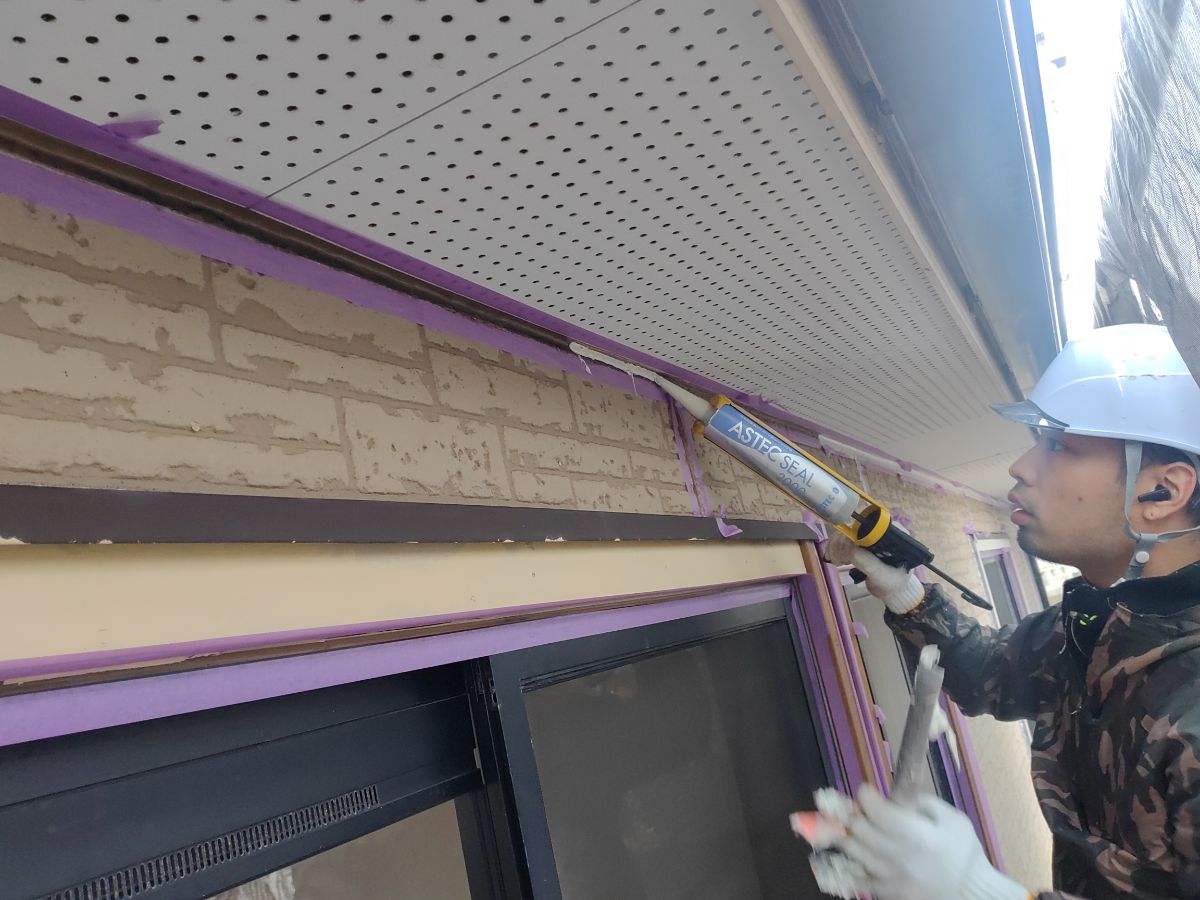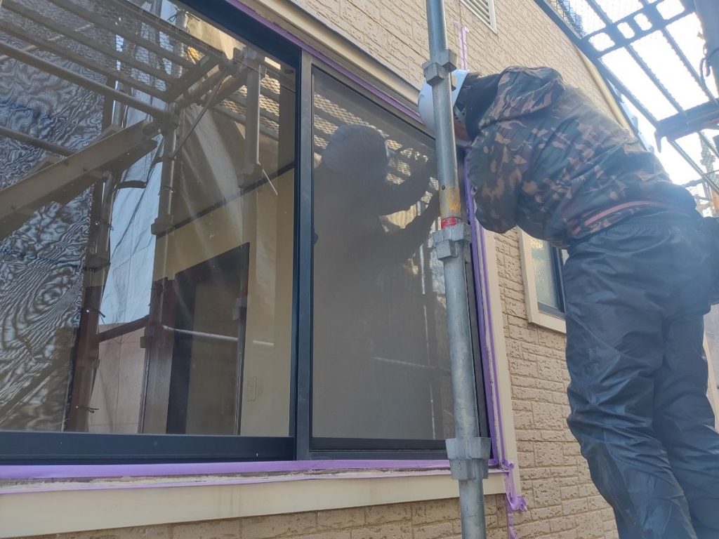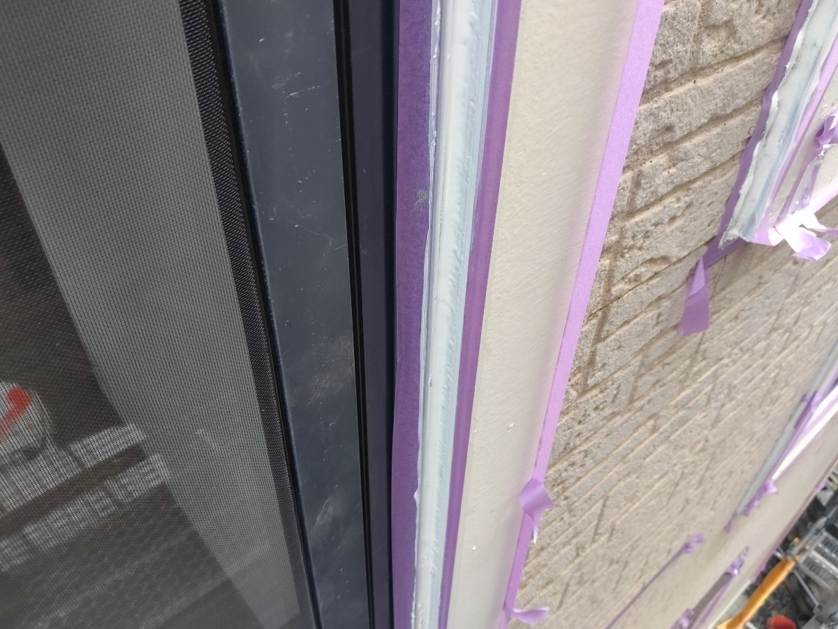 本日はシーリング箇所にテープを貼る養生を行っております!