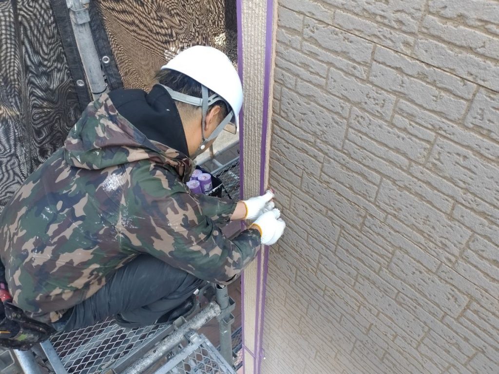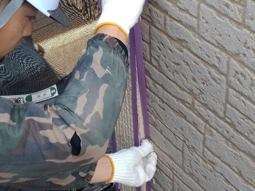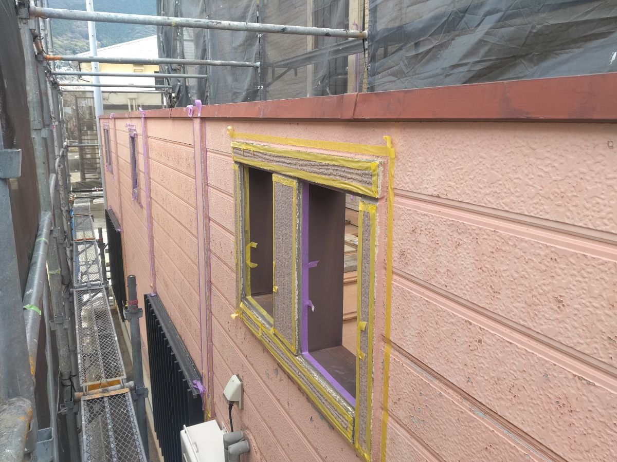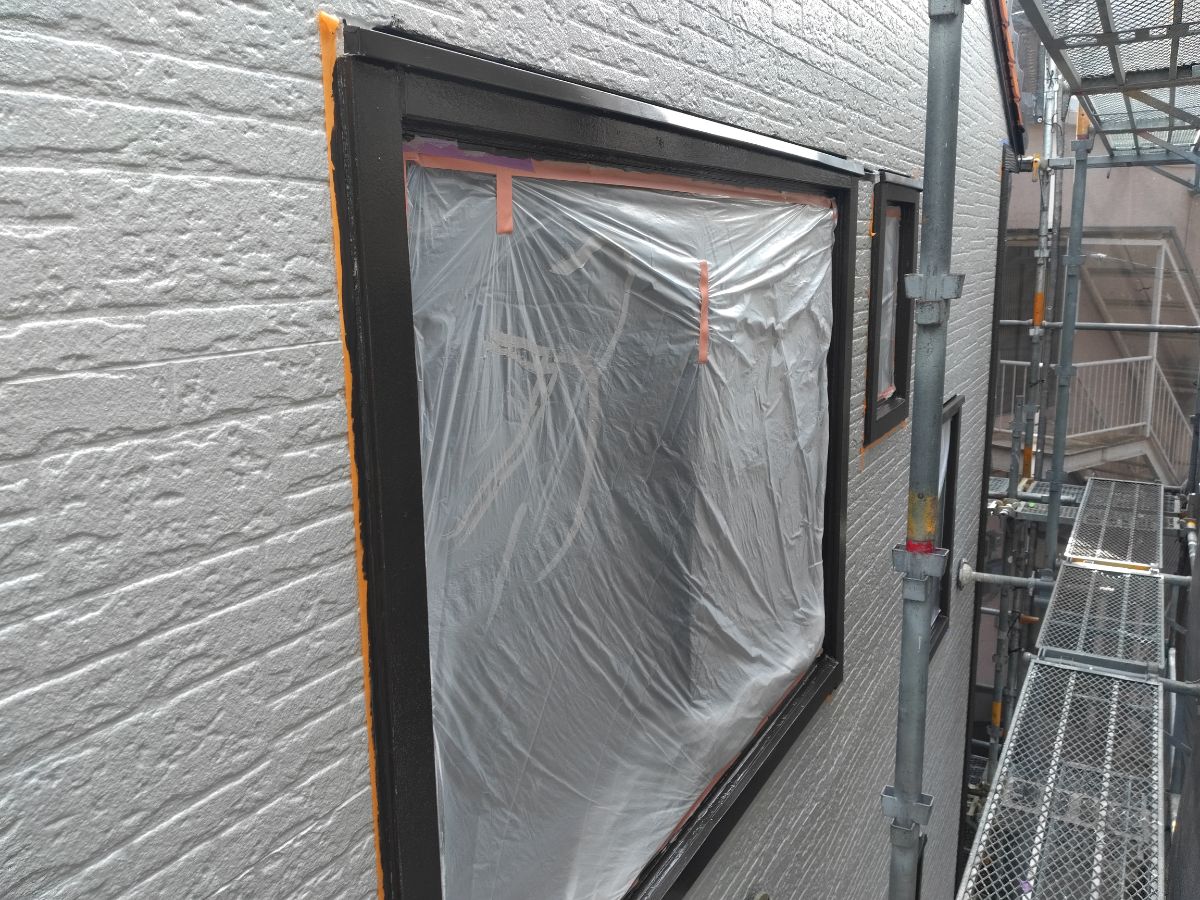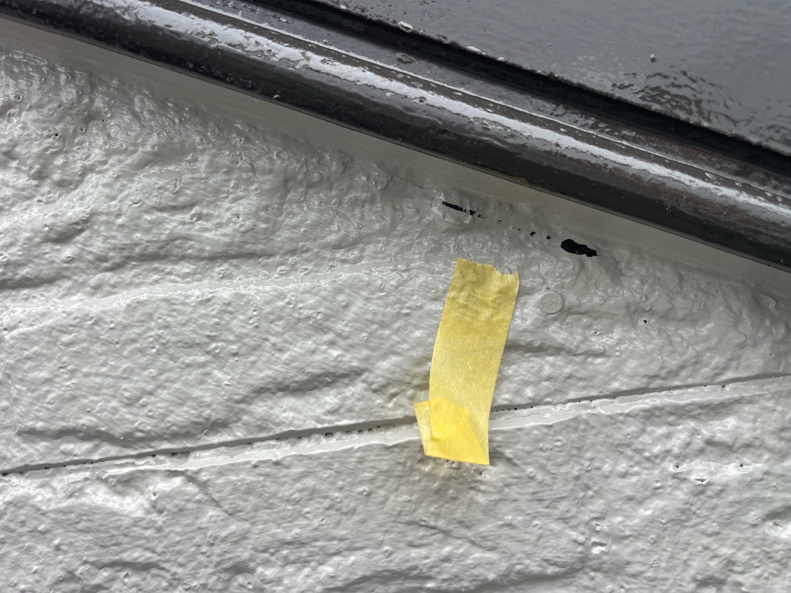 本日はシーリング箇所にテープを貼る養生を行っております!
