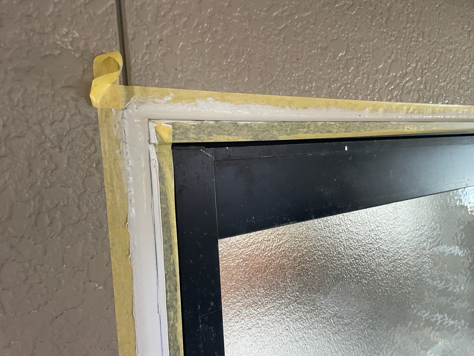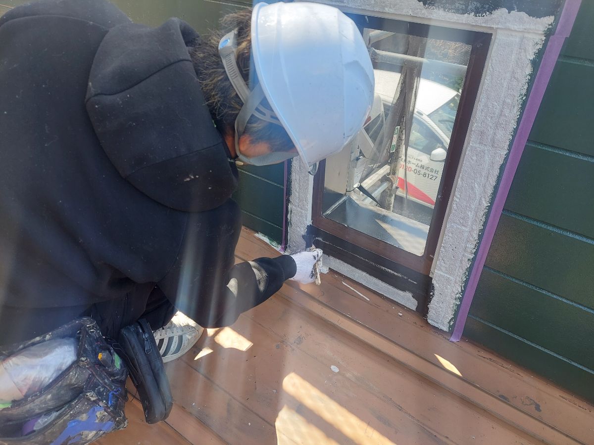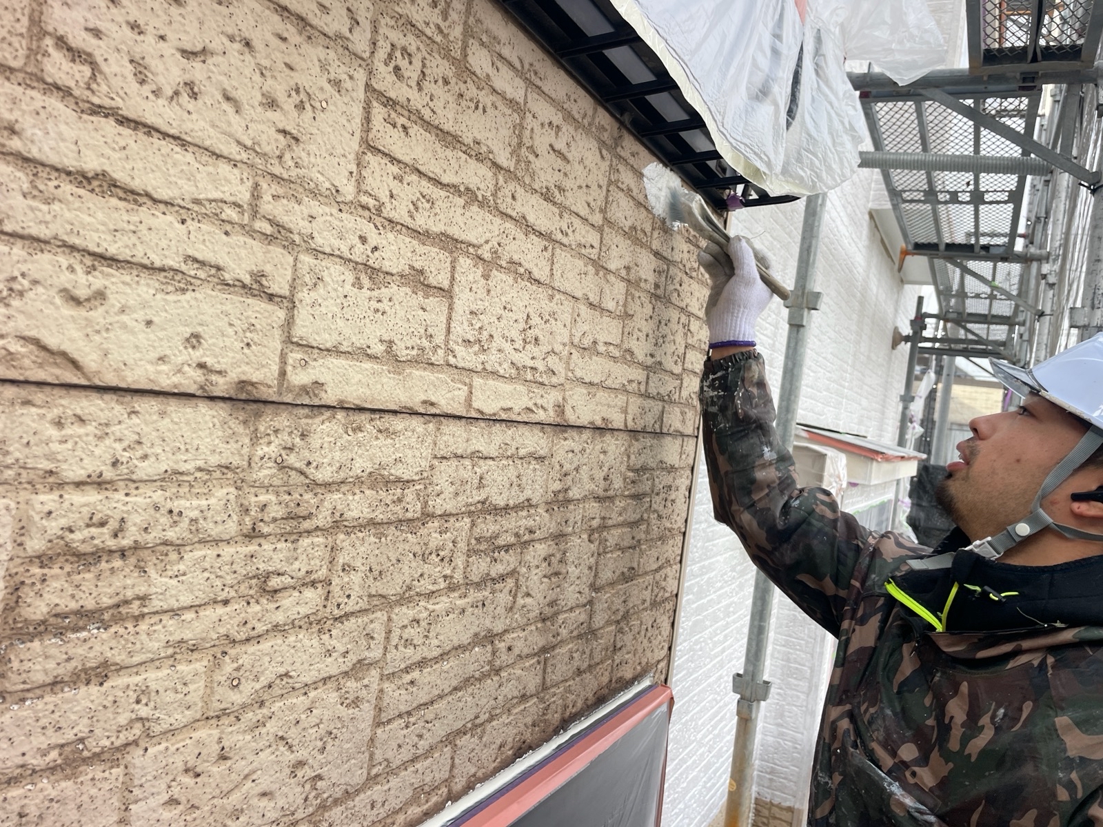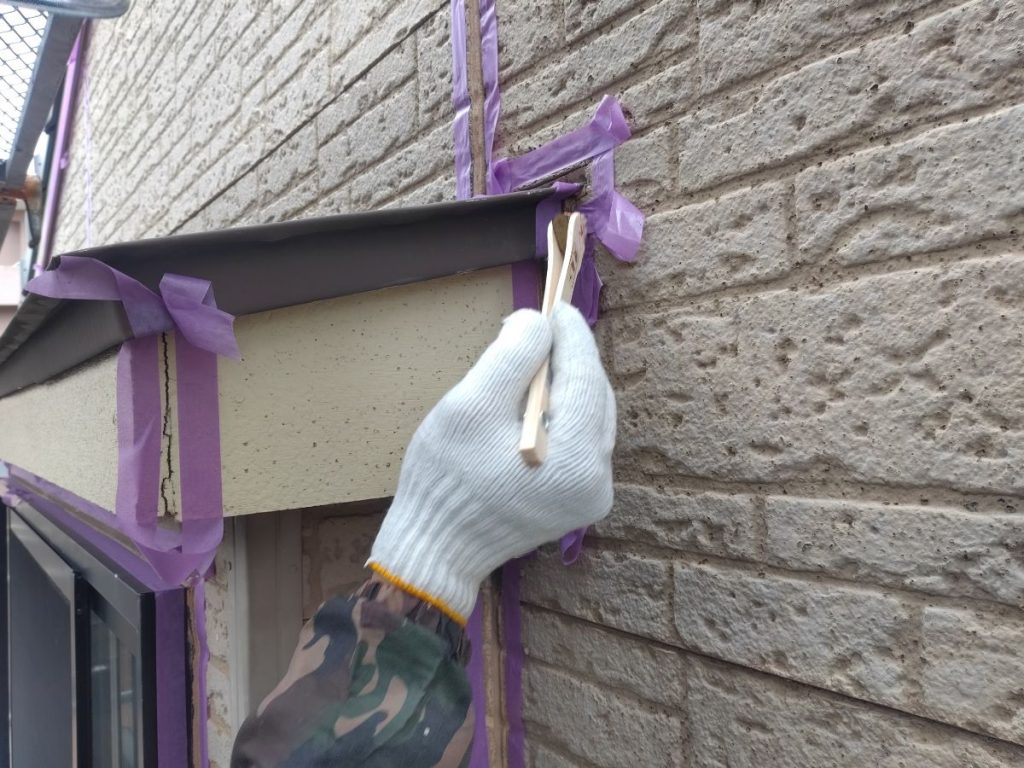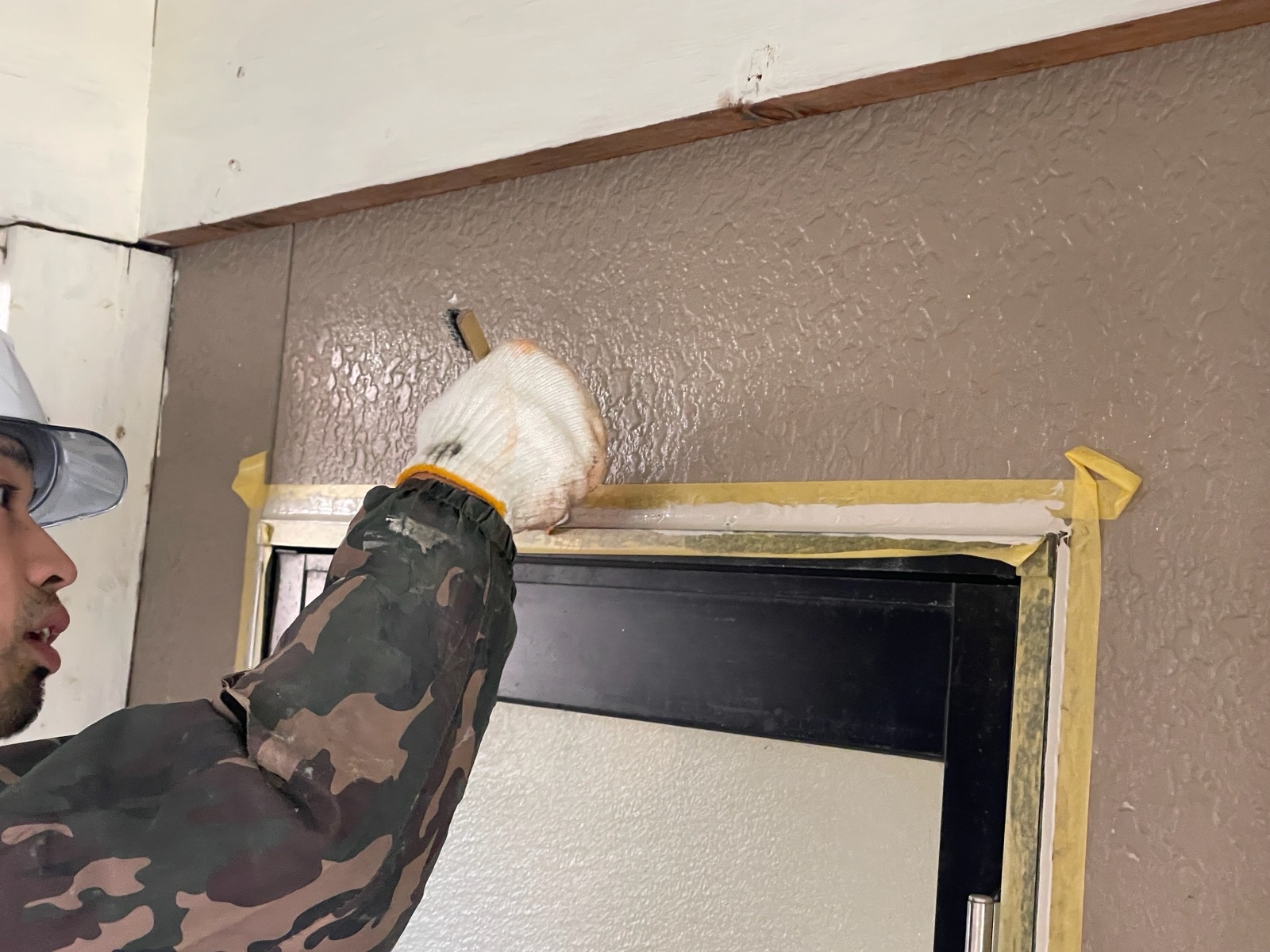 本日はシーリング箇所にテープを貼る養生を行っております!
