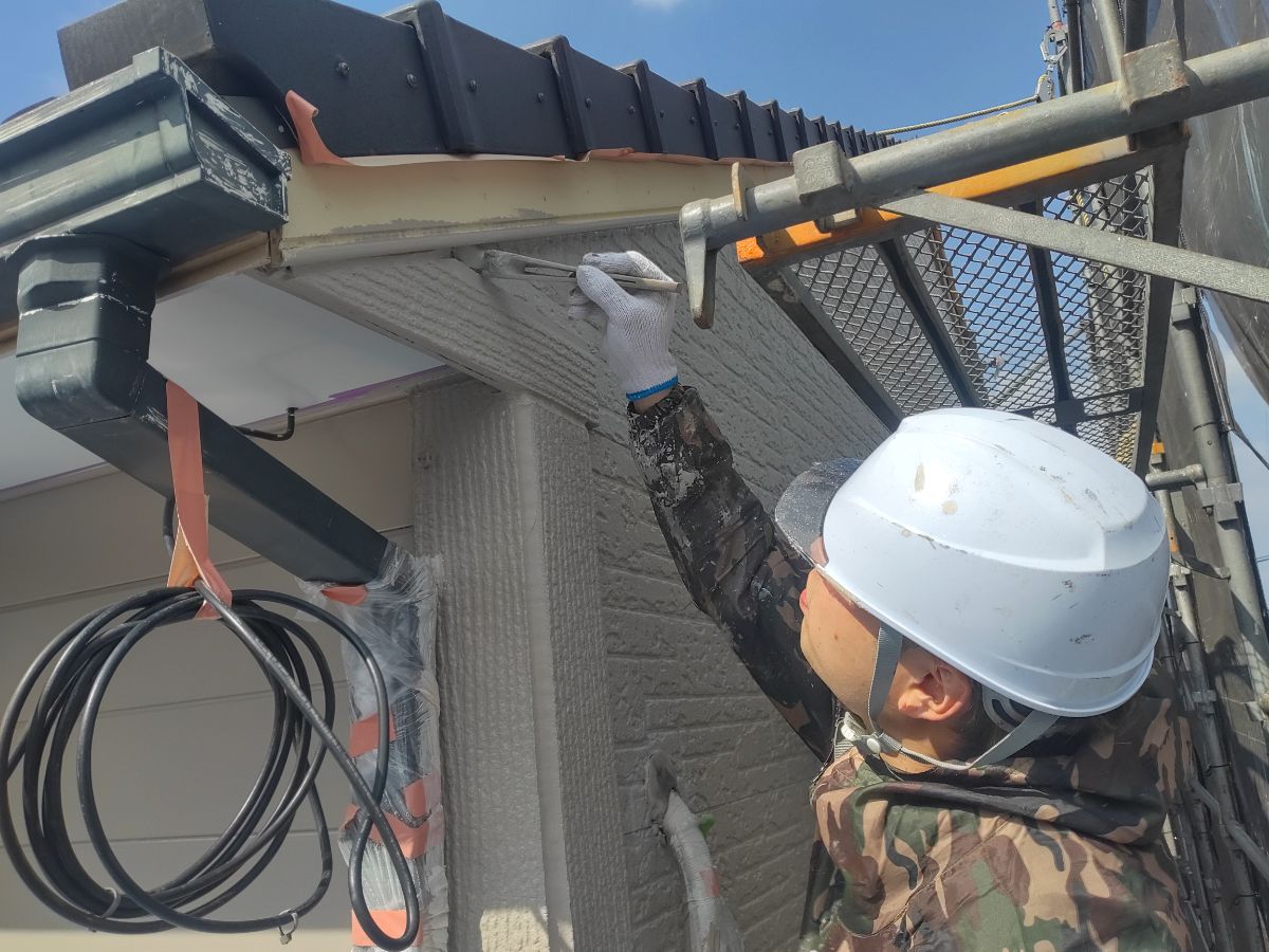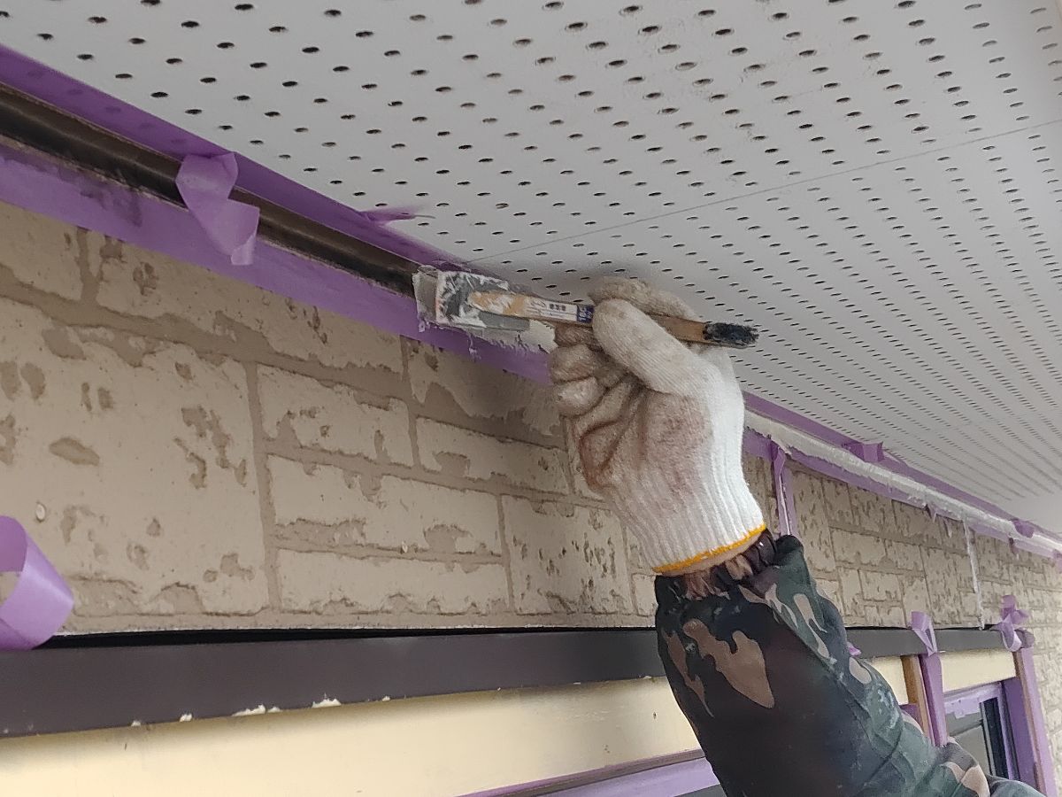 本日は、付帯部の塗装、鉄部錆止めをさせて頂いております。
